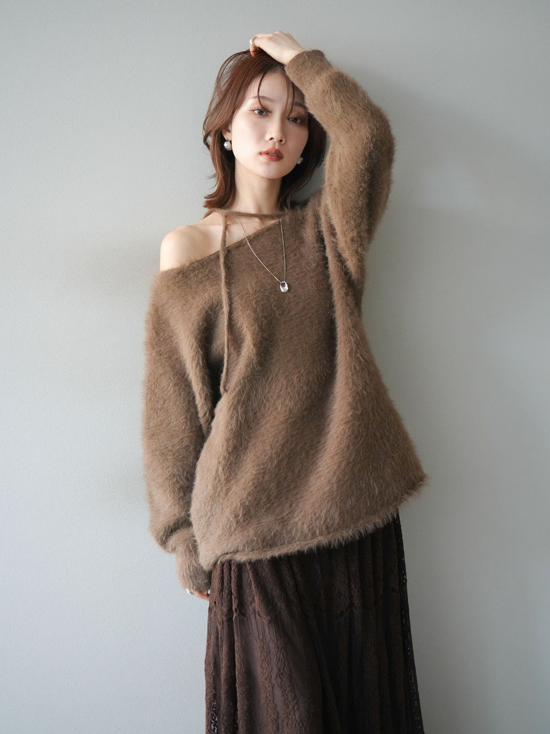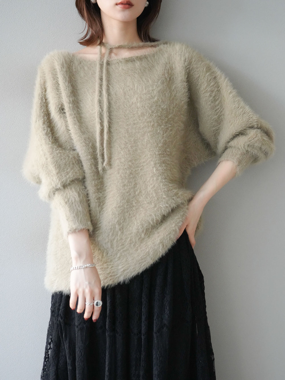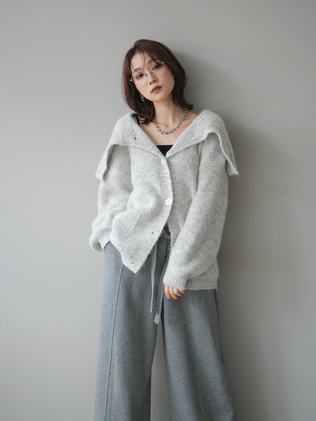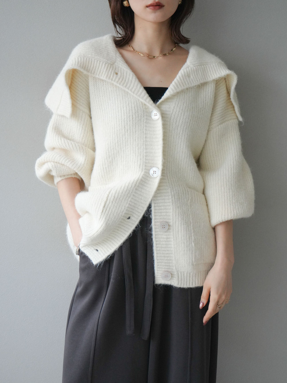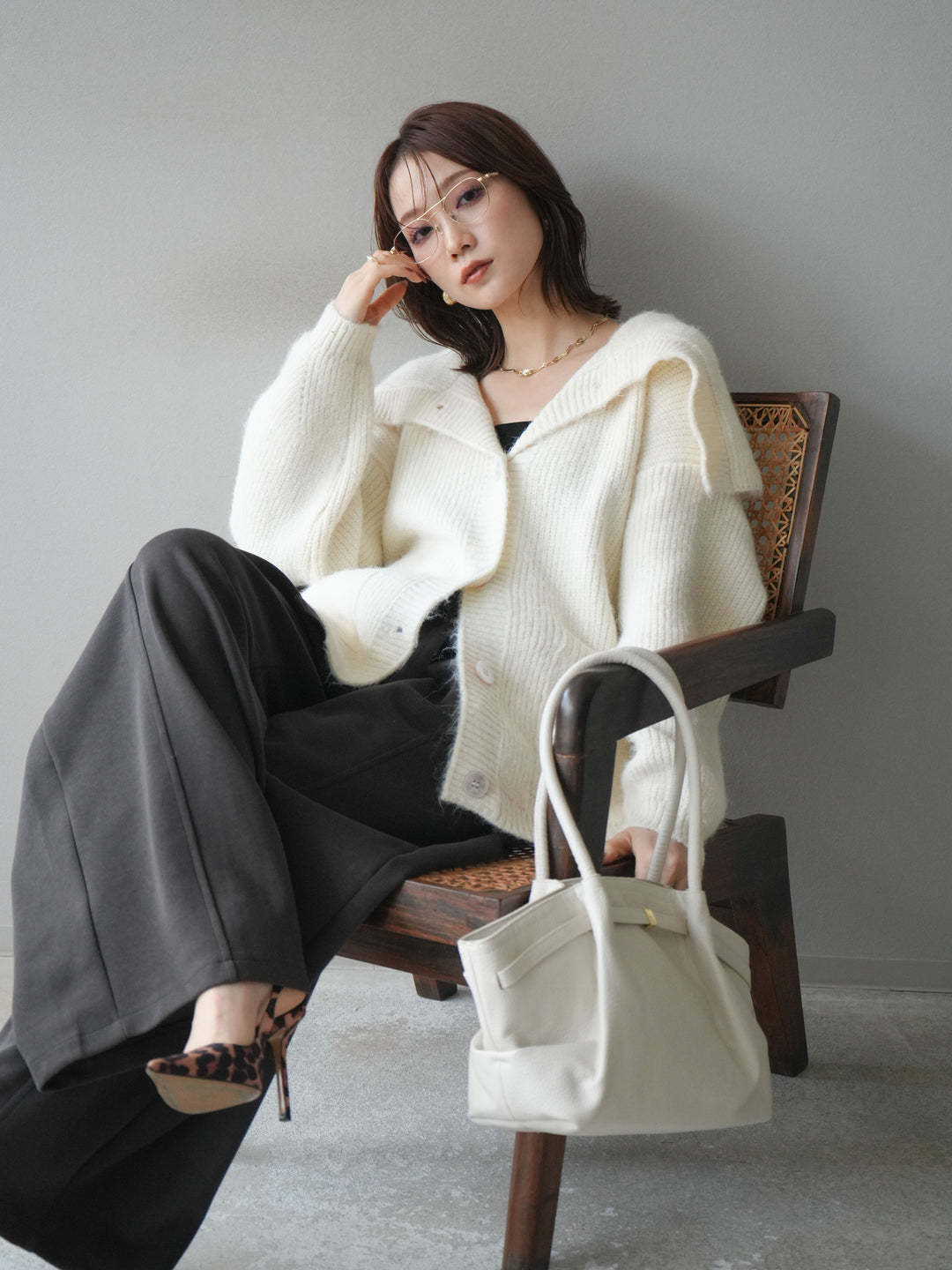 [予約]襟付きボタンオーバーニットカーディガン/ivory