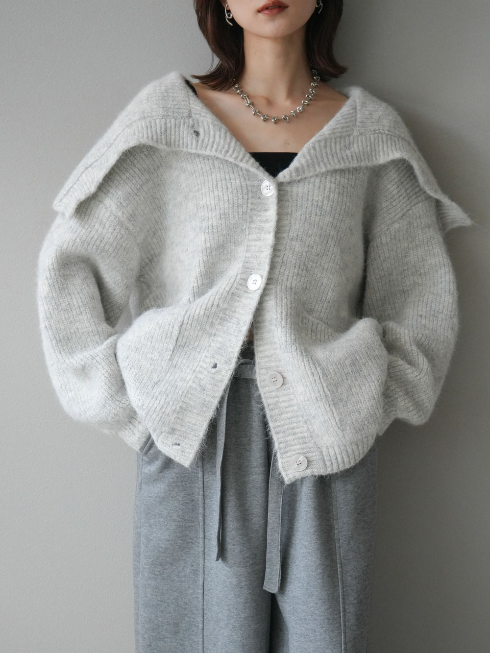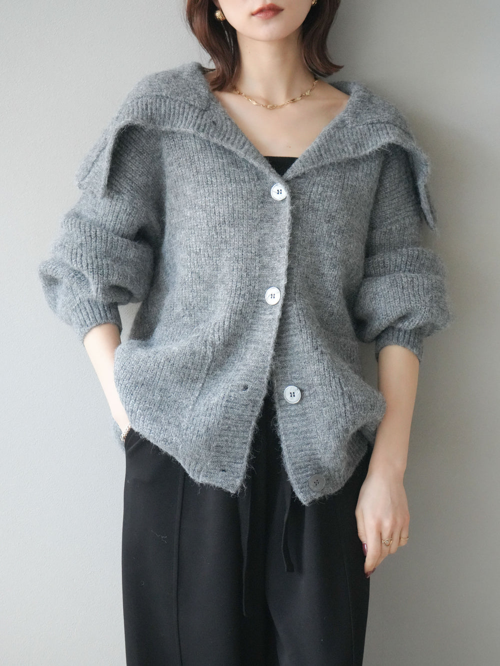 [予約]襟付きボタンオーバーニットカーディガン/gray