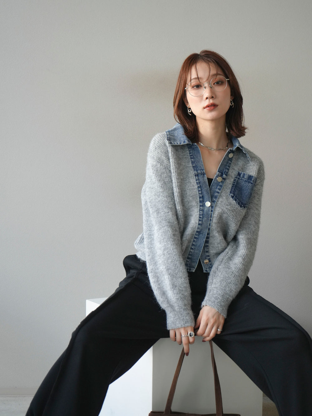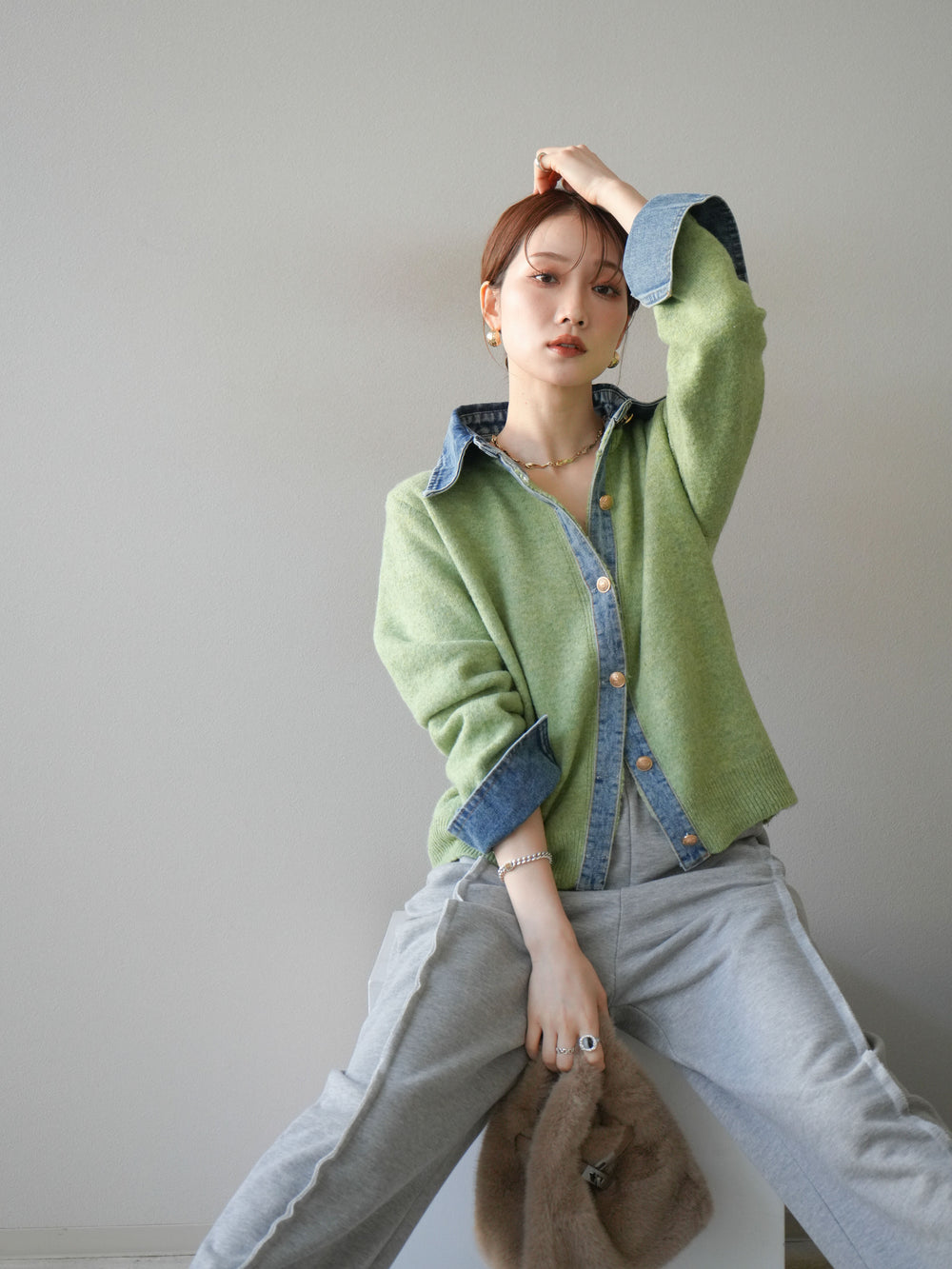 [予約]デニム襟ボタンニットカーディガン/pistachio