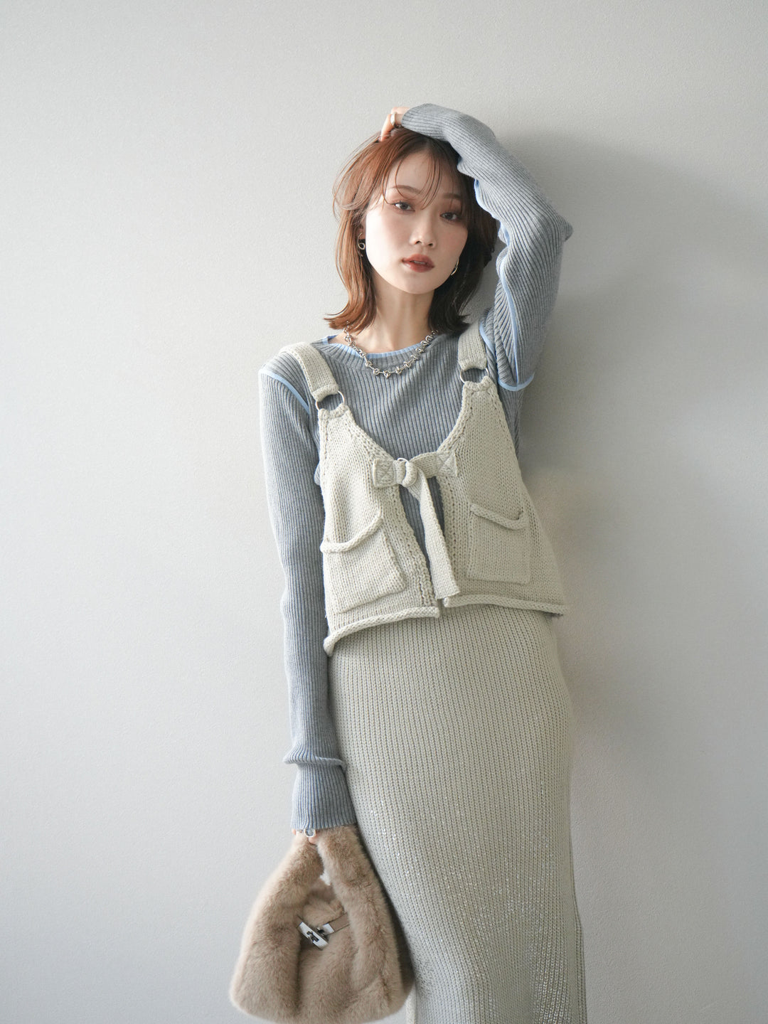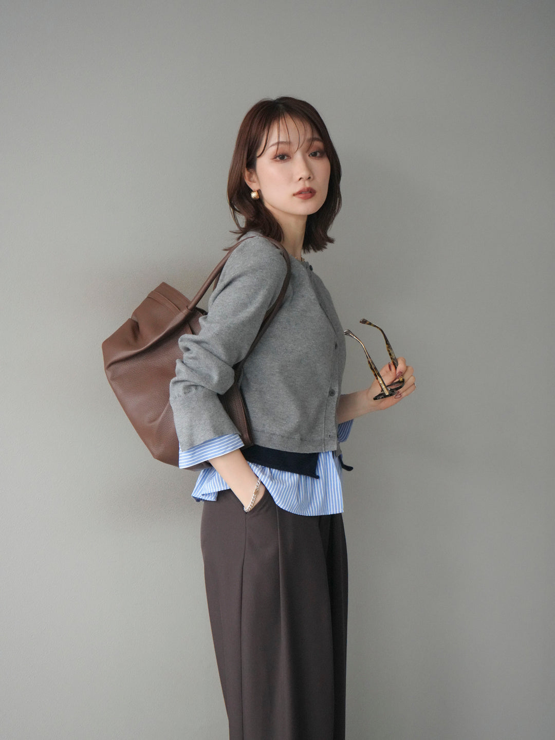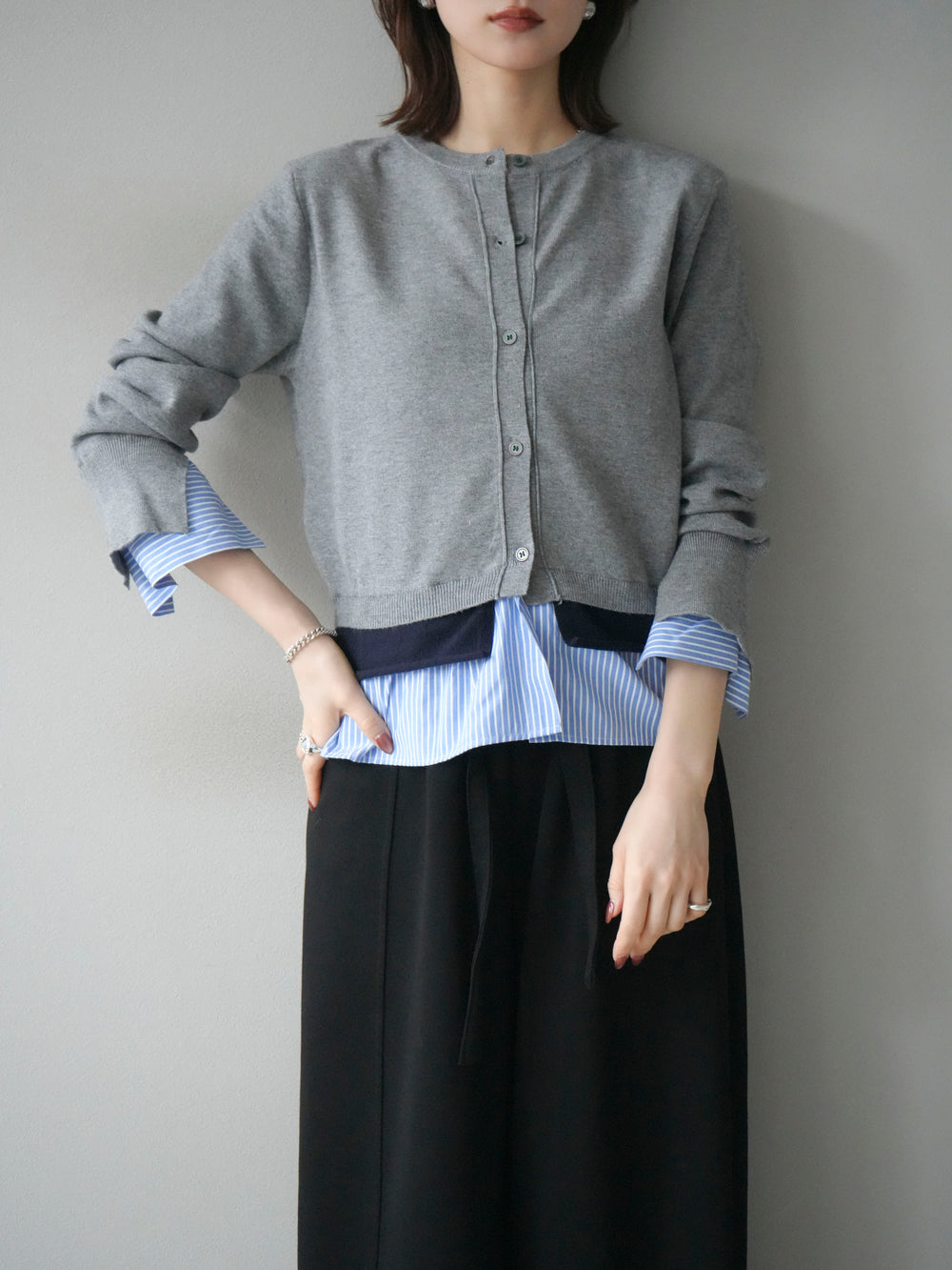 [予約]シャツ襟レイヤードニットカーディガン/gray