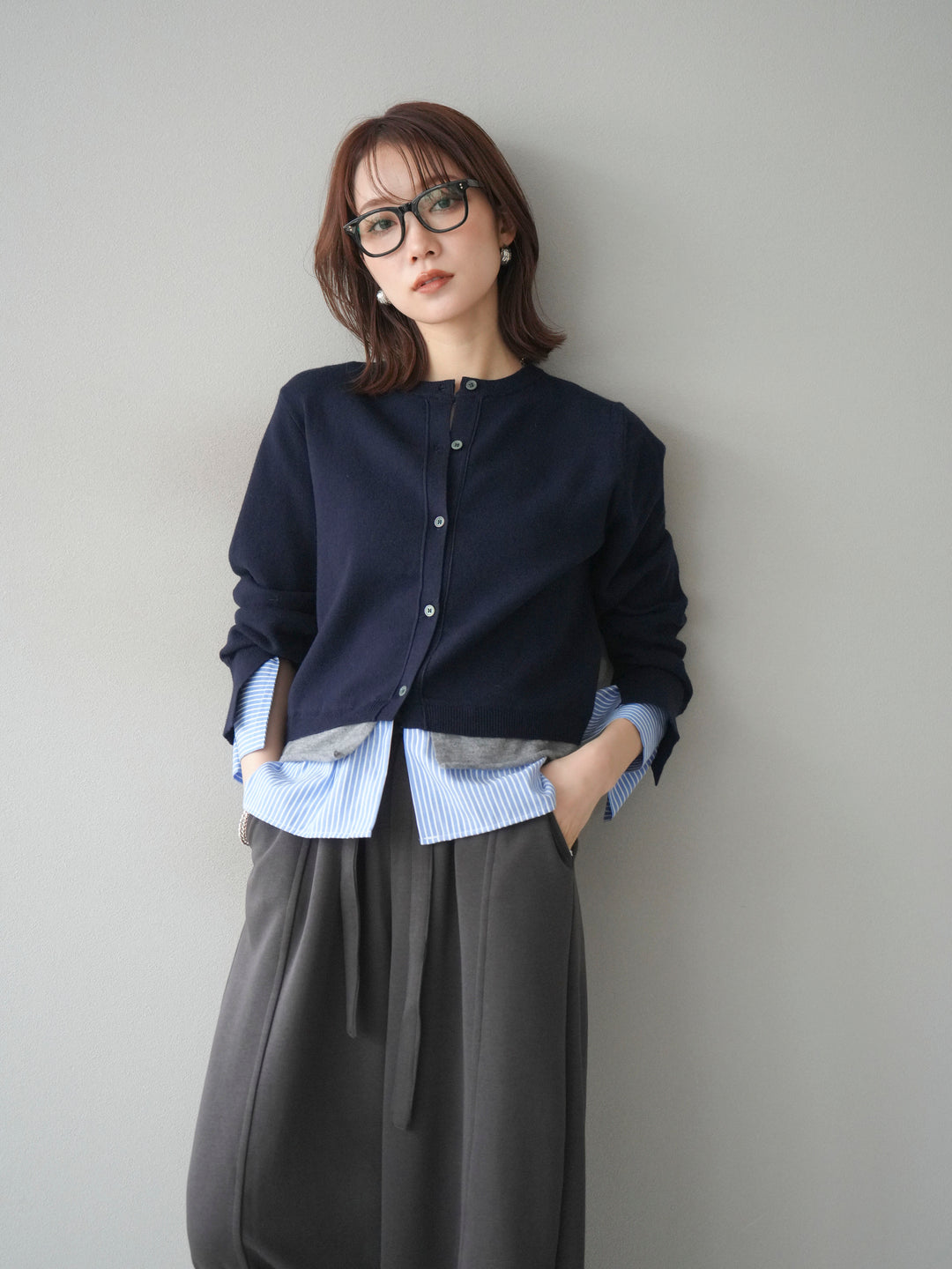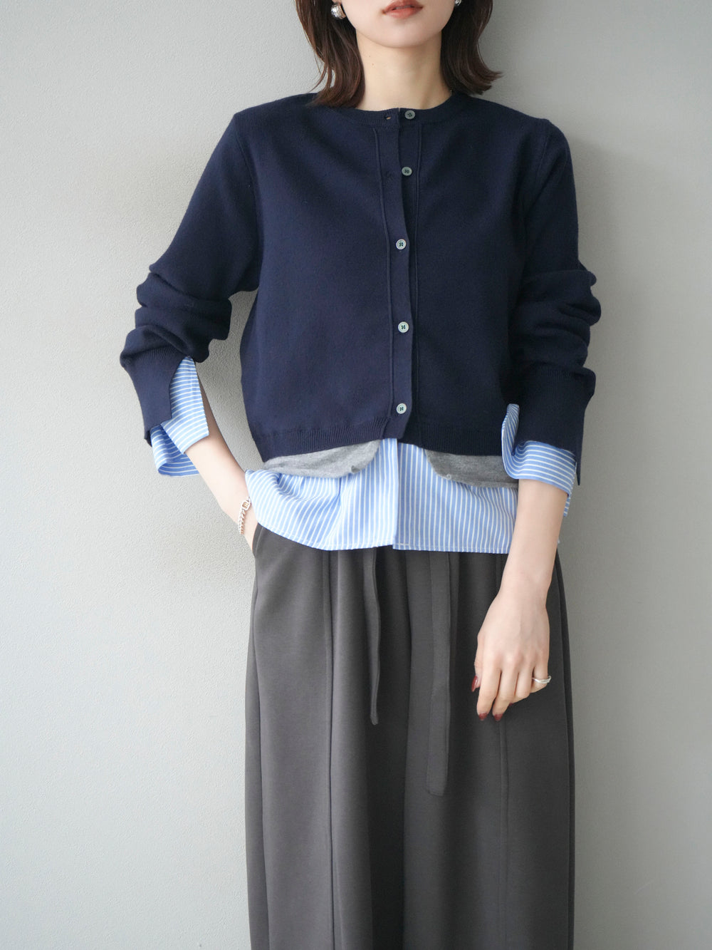 [予約]シャツ襟レイヤードニットカーディガン/navy