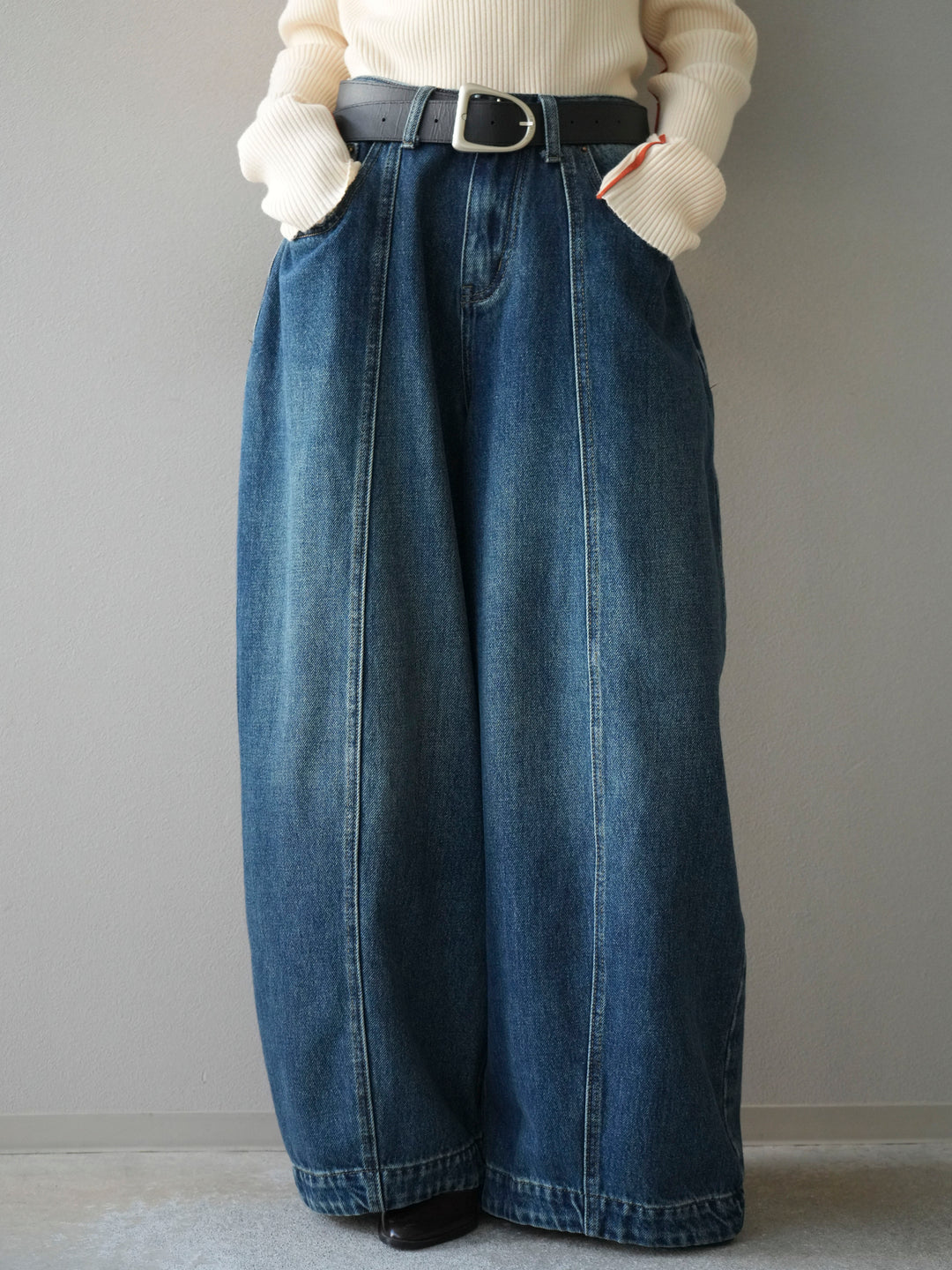 [予約]ベルト付スウェットワイドパンツ/charcoal