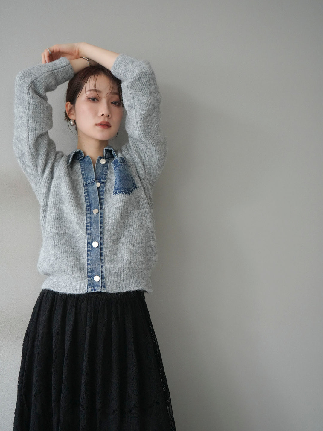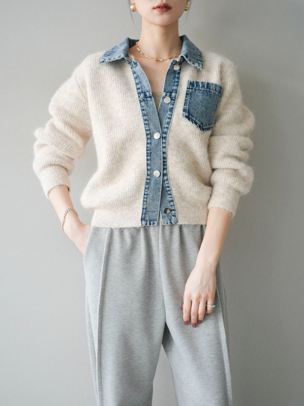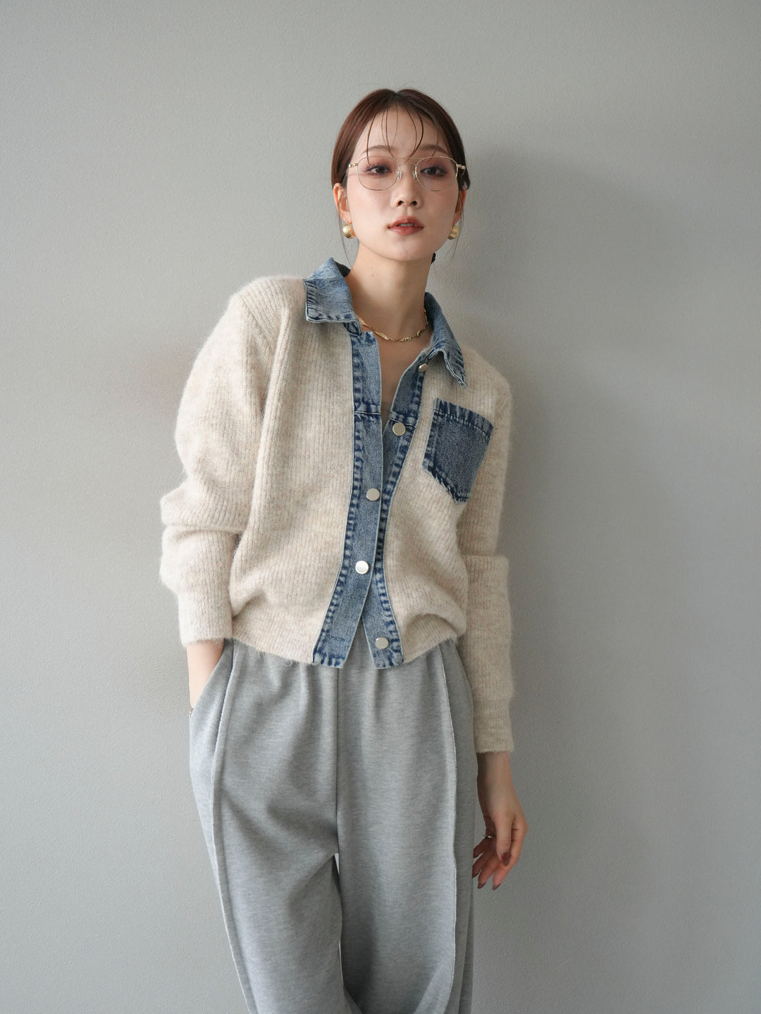 [予約]デニム襟ポケットニットカーディガン/ivory