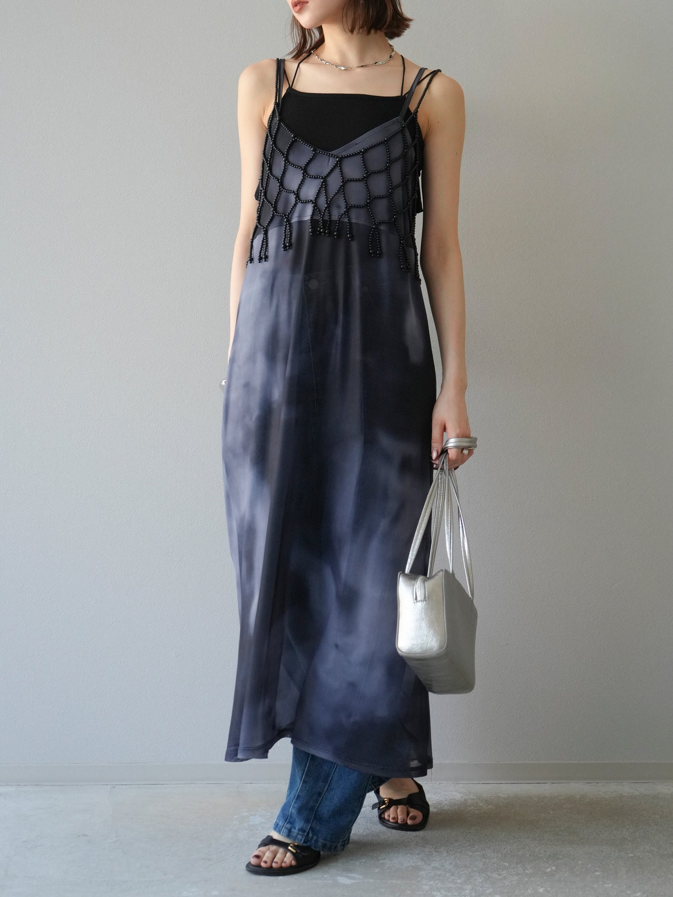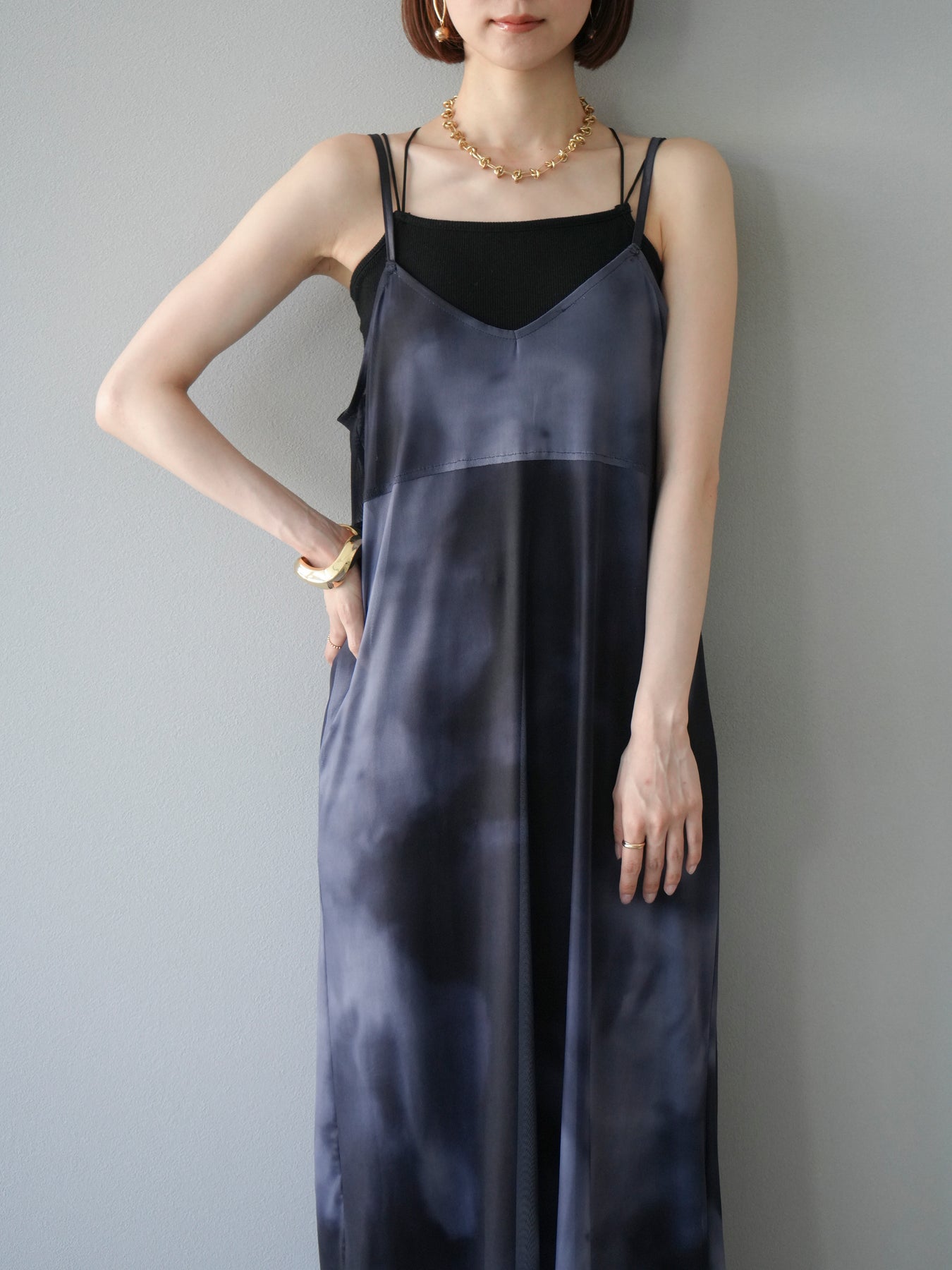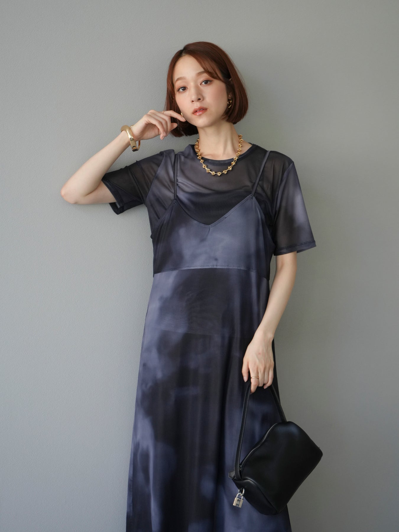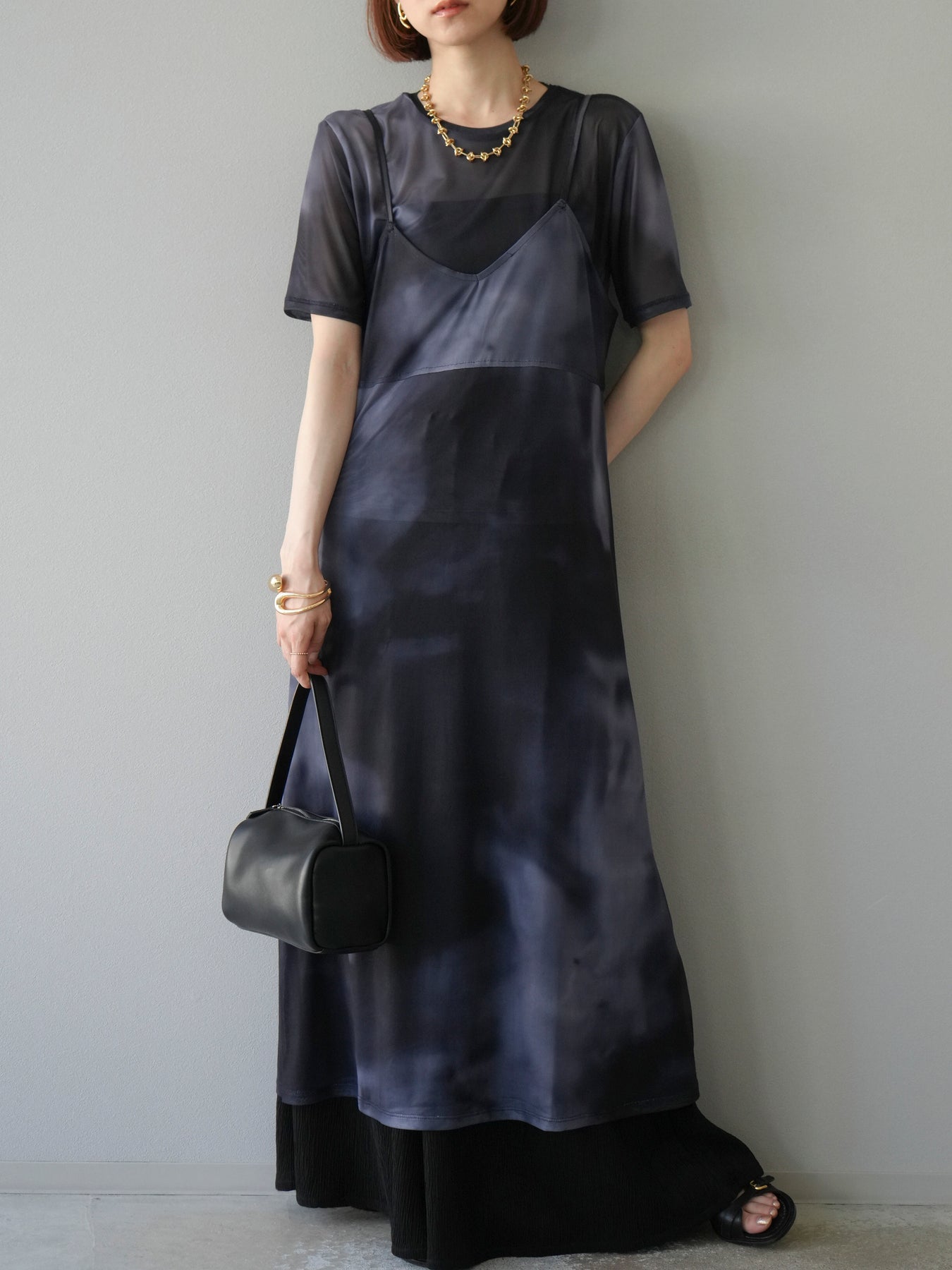 [予約タイダイ柄シアーキャミワンピース/モノトーン