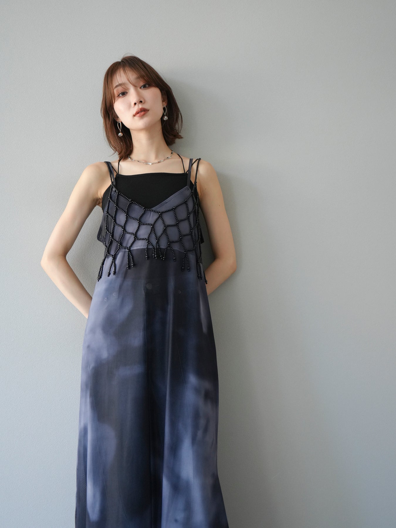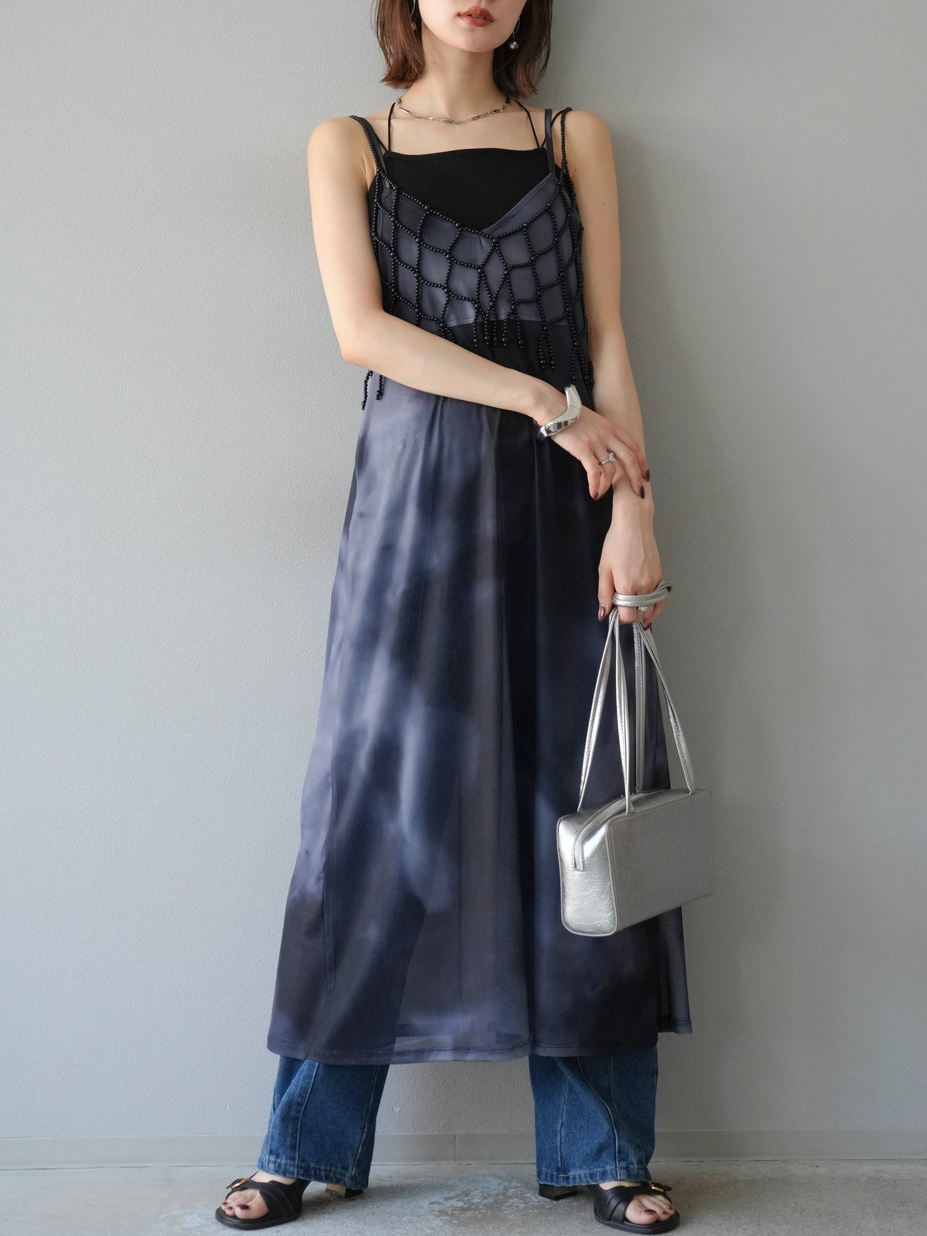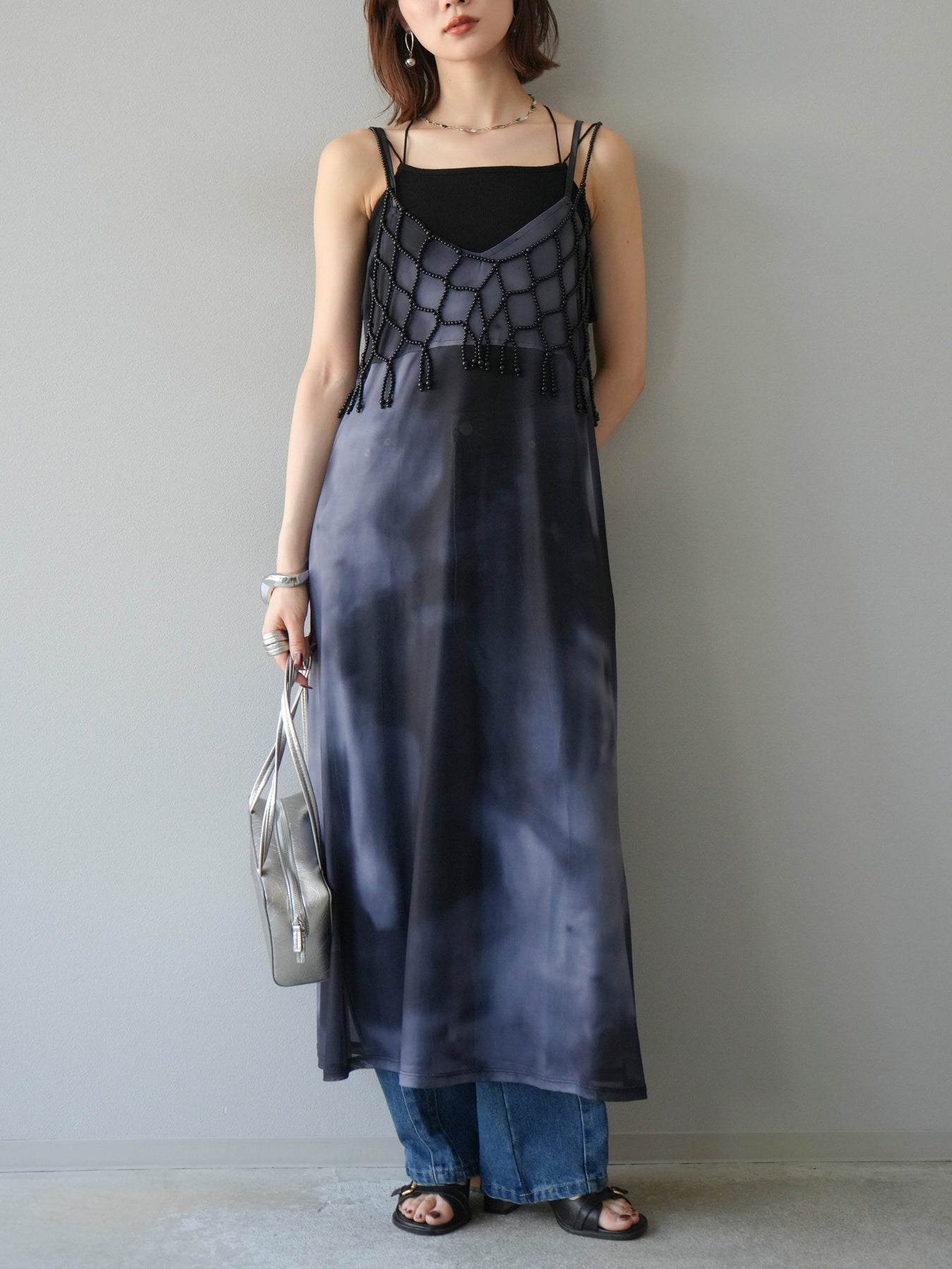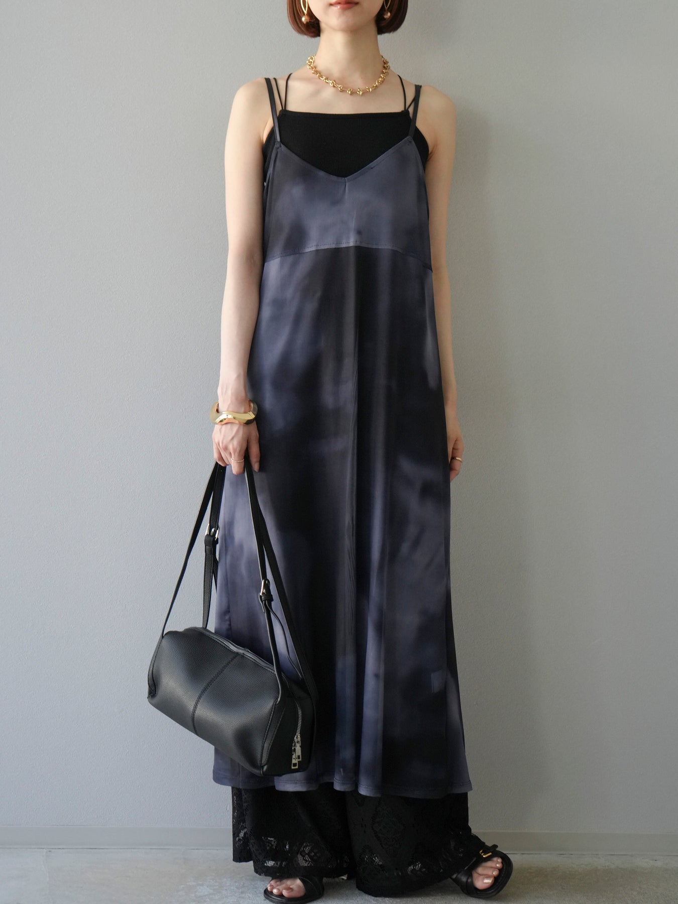 [予約タイダイ柄シアーキャミワンピース/モノトーン