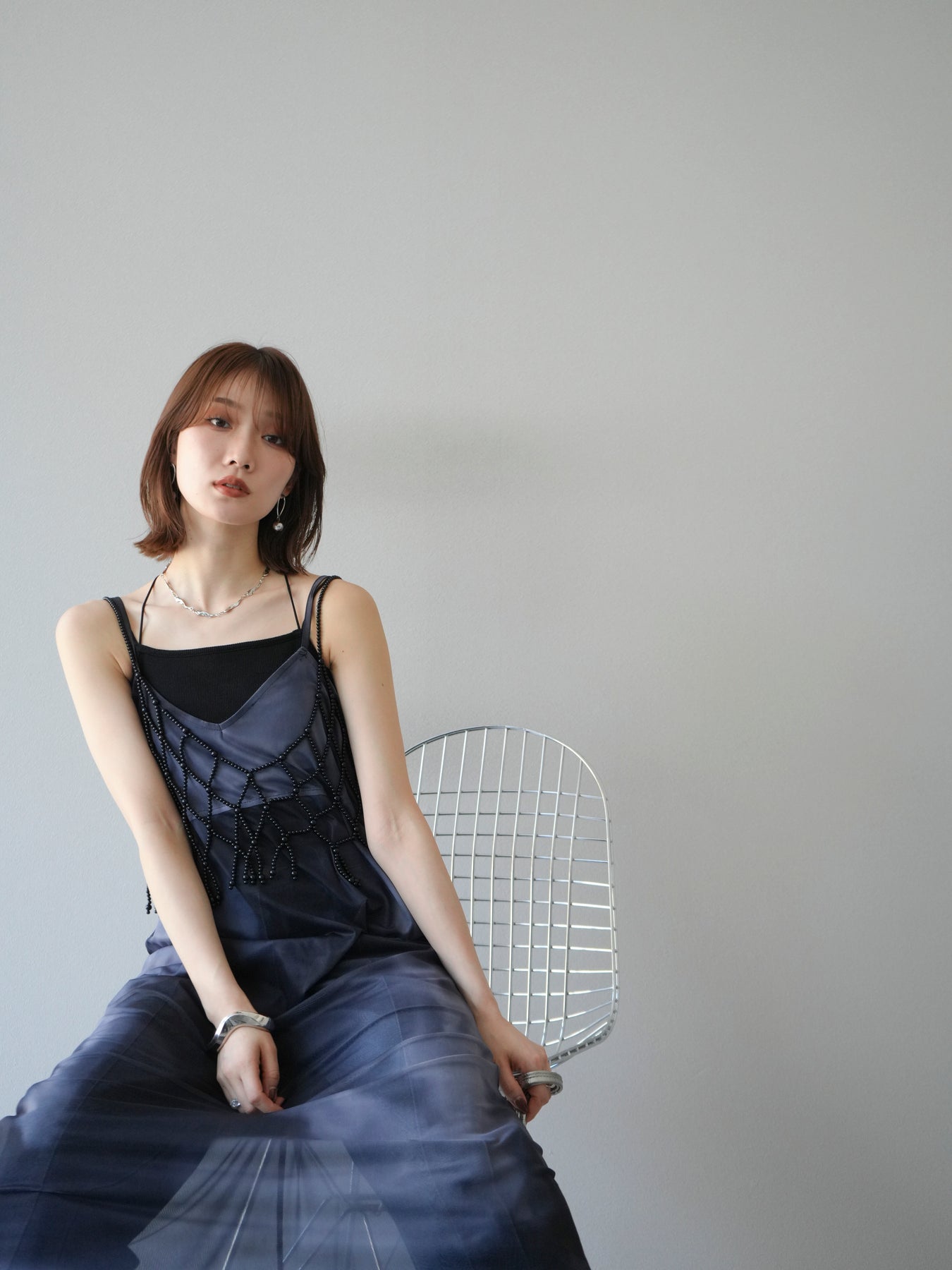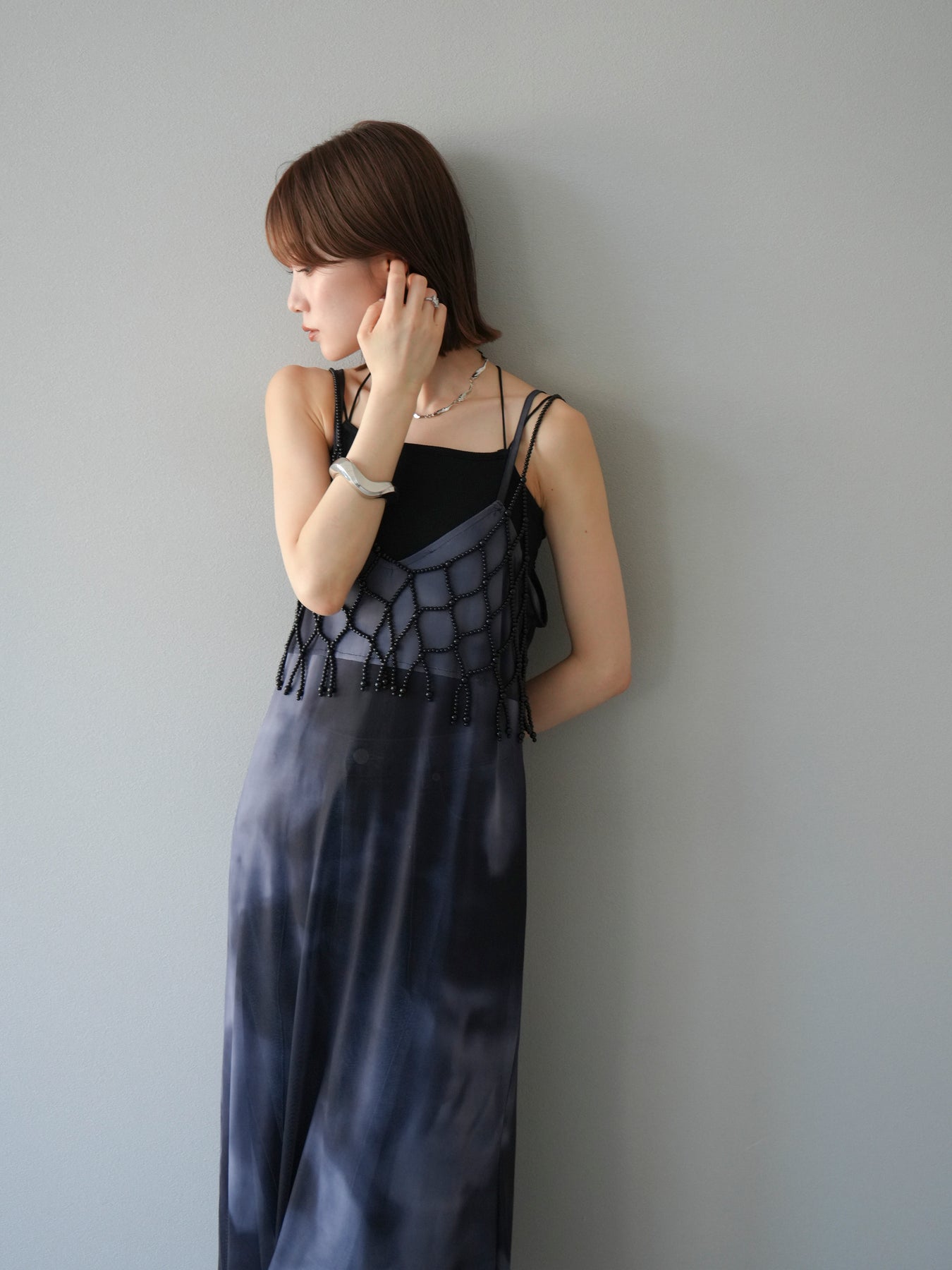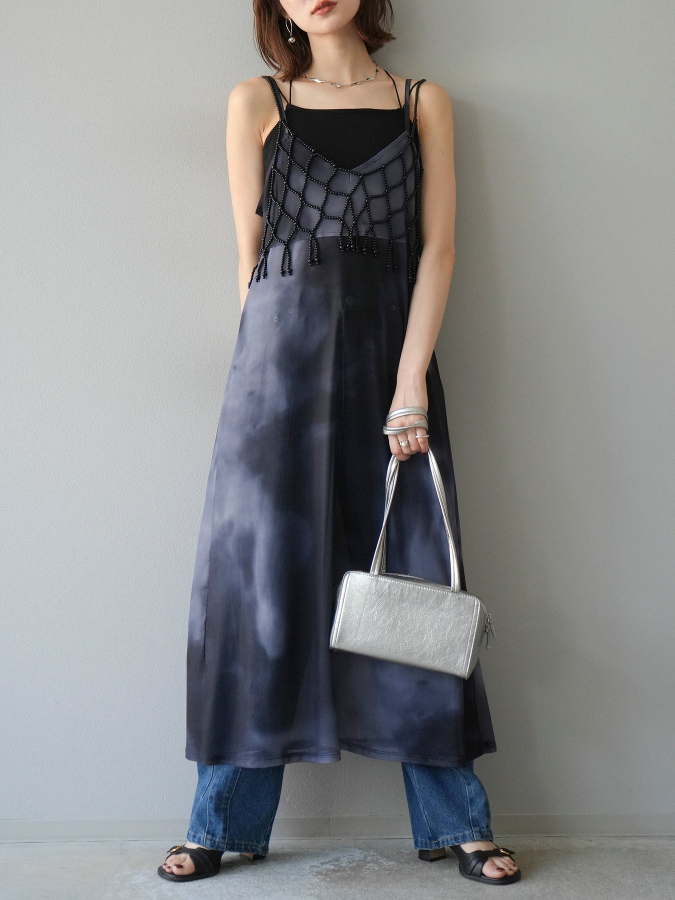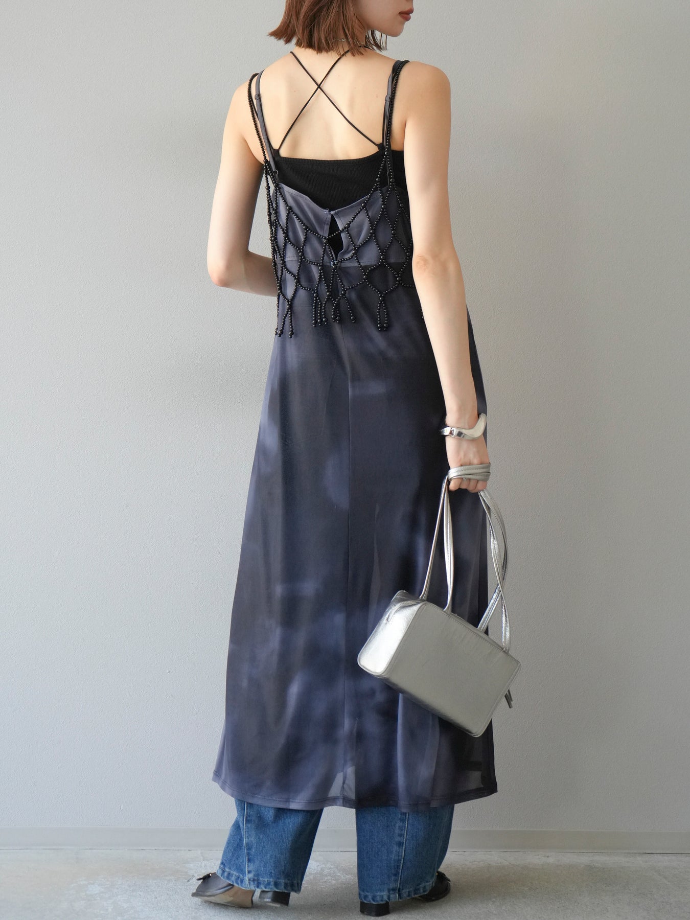 [予約タイダイ柄シアーキャミワンピース/モノトーン