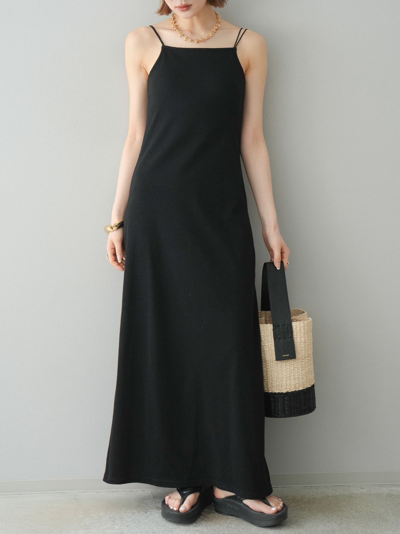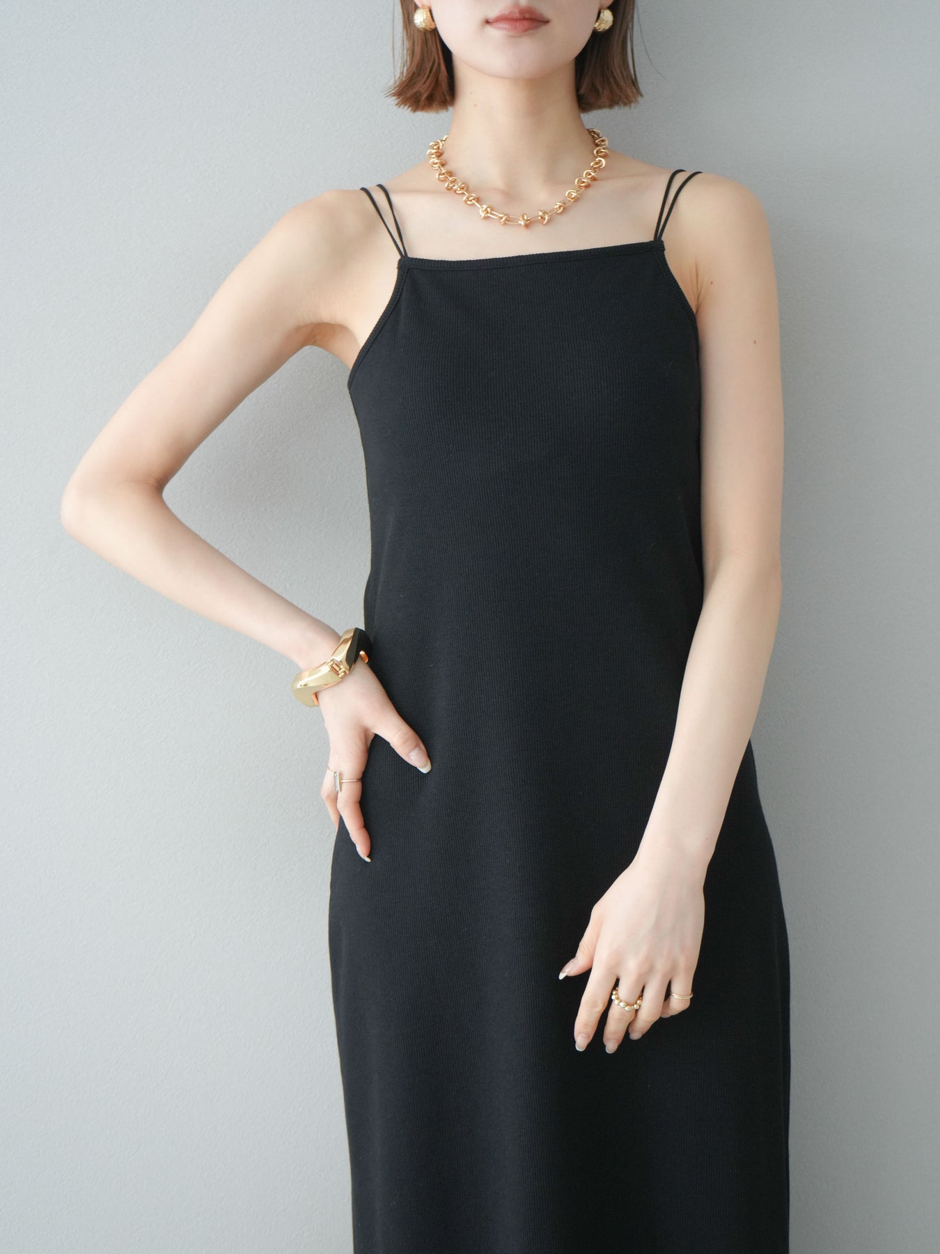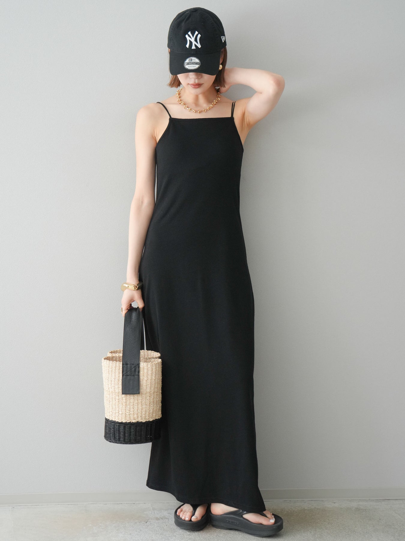 這款吊帶背心洋裝採用時下流行的羅紋布料製成。附罩杯,方便單穿,穿著舒適。細肩帶設計使肩部顯得纖細,乾淨俐落的I字輪廓營造出成熟休閒的氛圍。它非常適合疊穿,只需搭配開襟衫或襯衫即可輕鬆變換造型,是一款百搭單品。 ※除下裝、吊帶背心(內衣)以外的商品均為標準品,不含內衣。