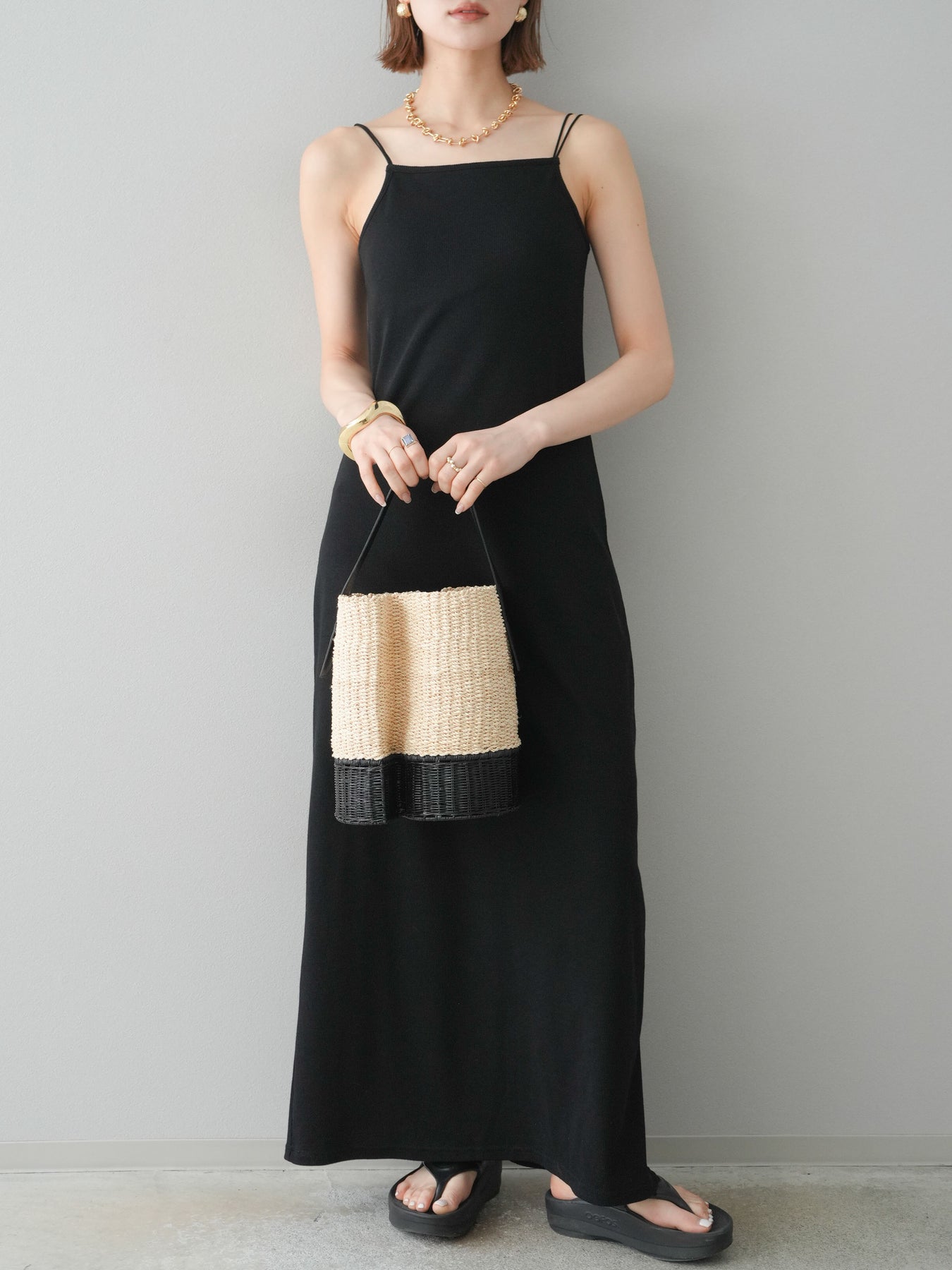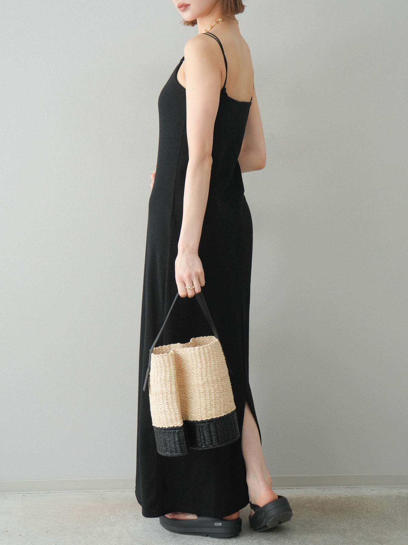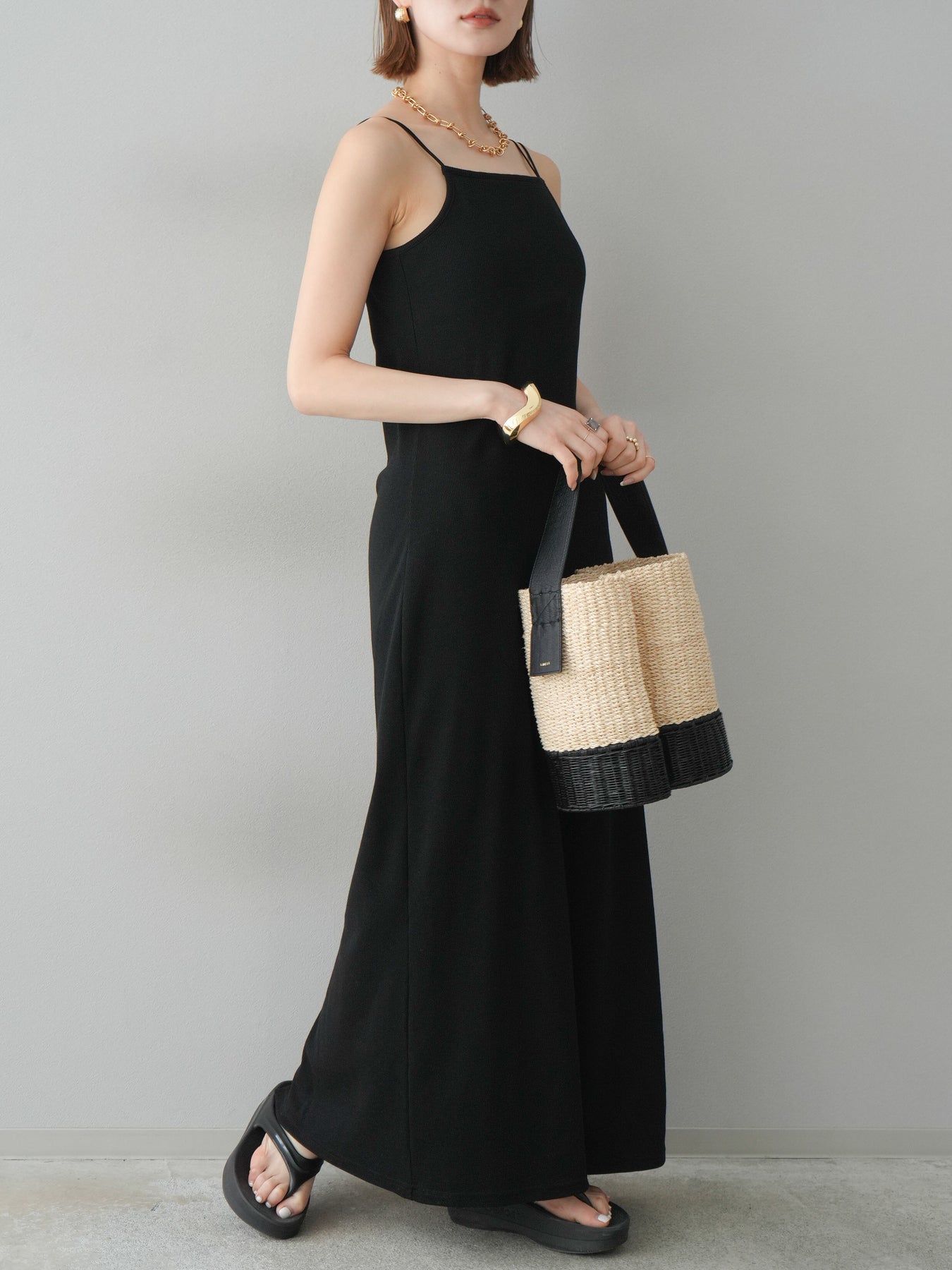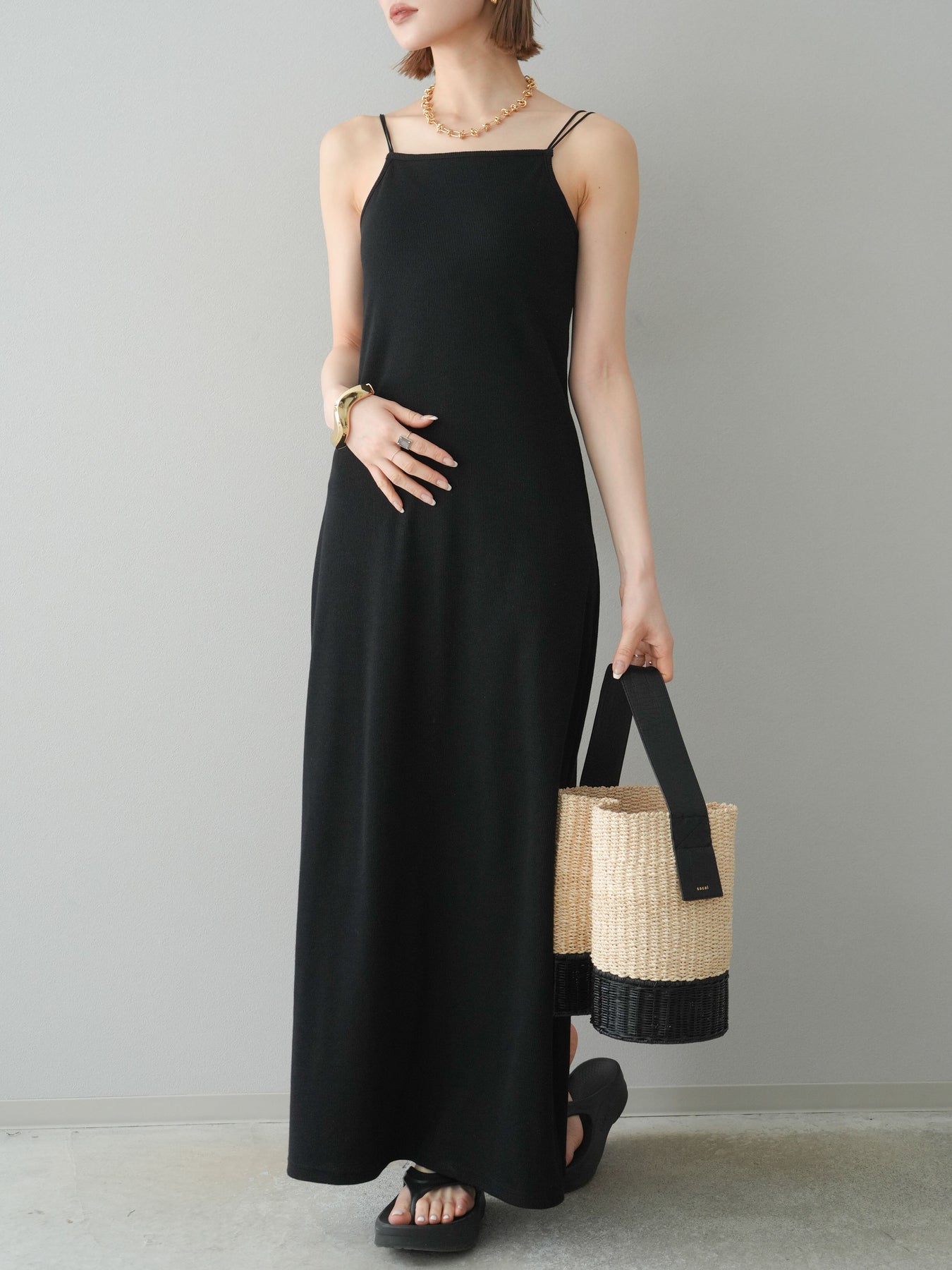 這款吊帶背心洋裝採用時下流行的羅紋布料製成。附罩杯,方便單穿,穿著舒適。細肩帶設計使肩部顯得纖細,乾淨俐落的I字輪廓營造出成熟休閒的氛圍。它非常適合疊穿,只需搭配開襟衫或襯衫即可輕鬆變換造型,是一款百搭單品。 ※除下裝、吊帶背心(內衣)以外的商品均為標準品,不含內衣。