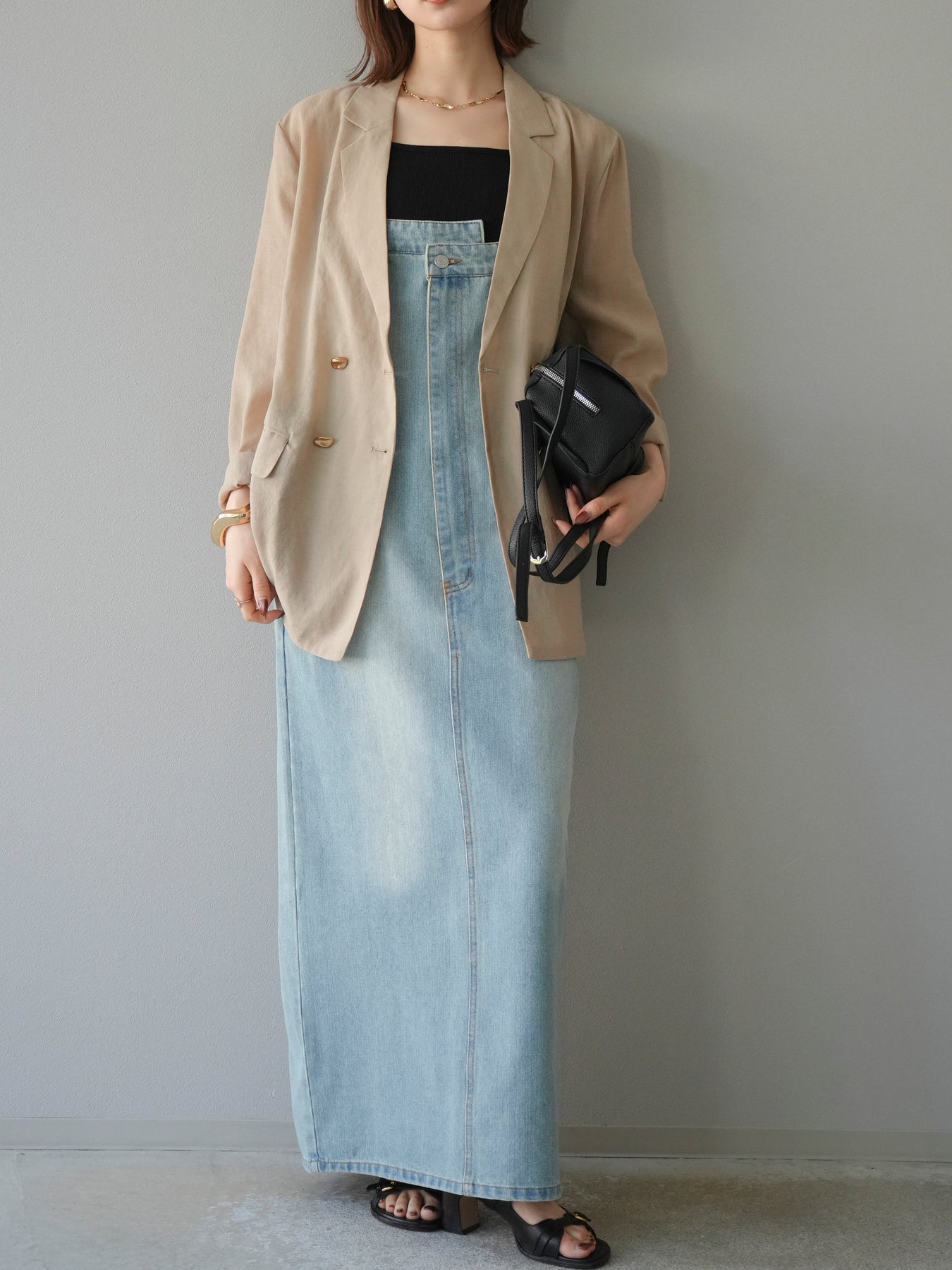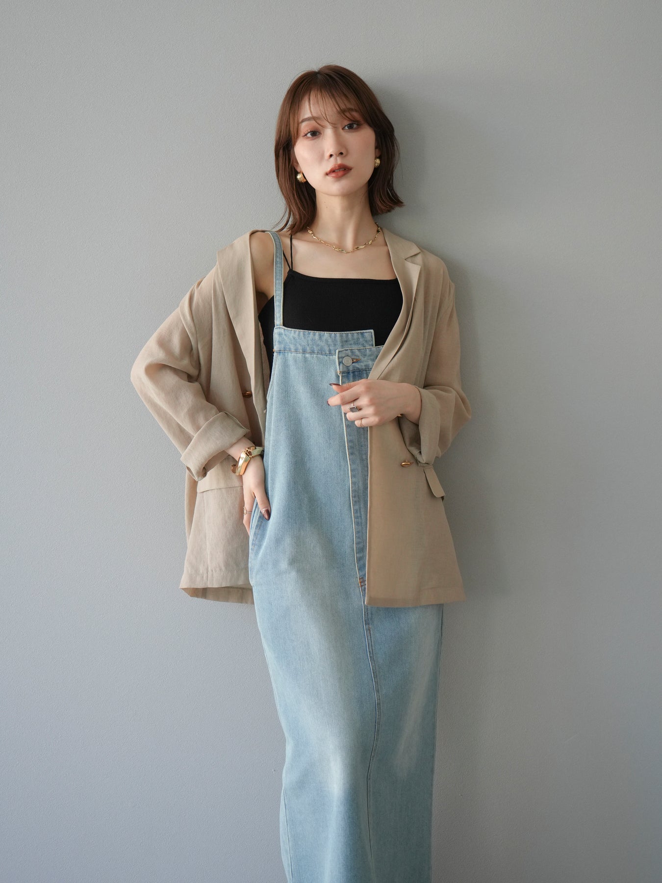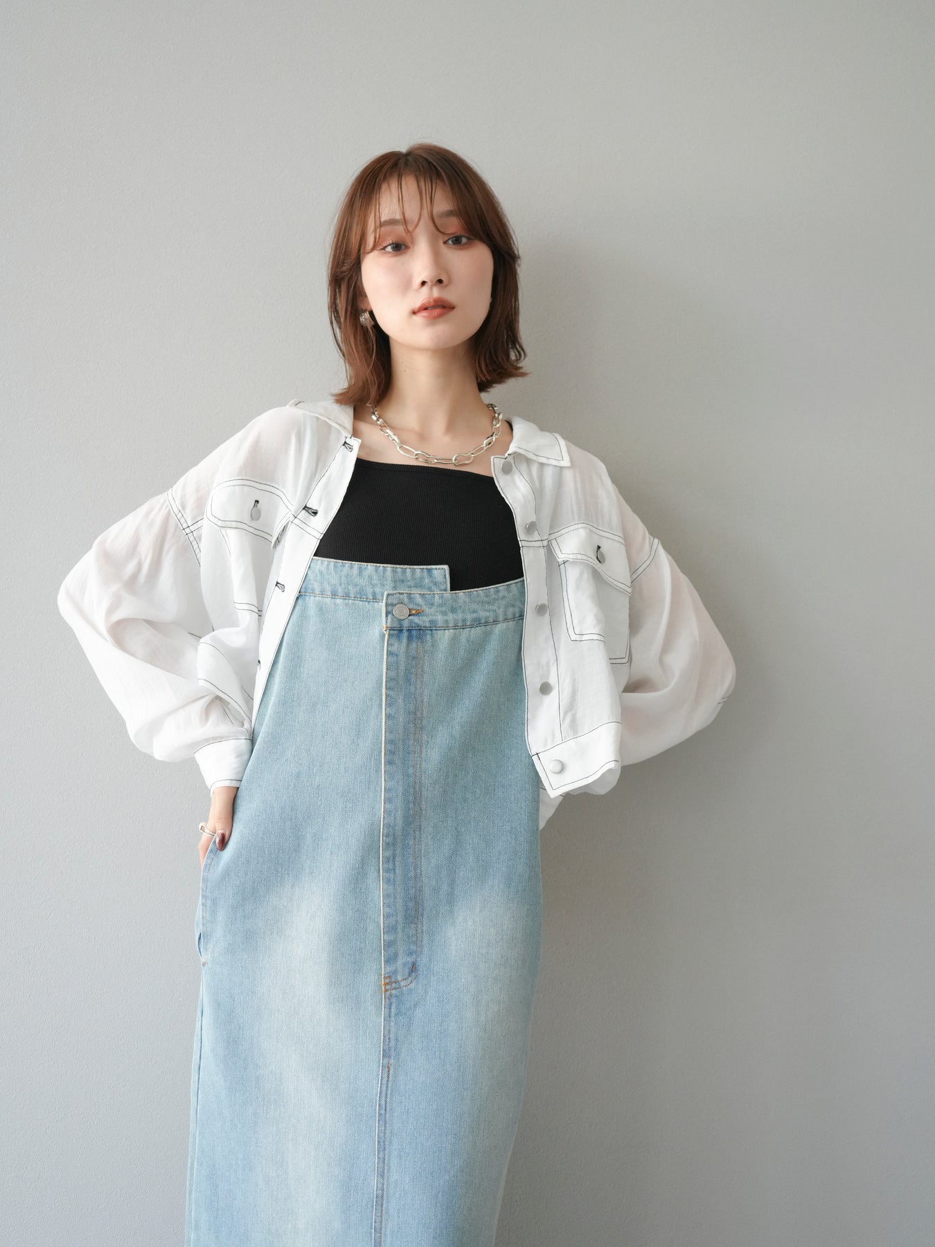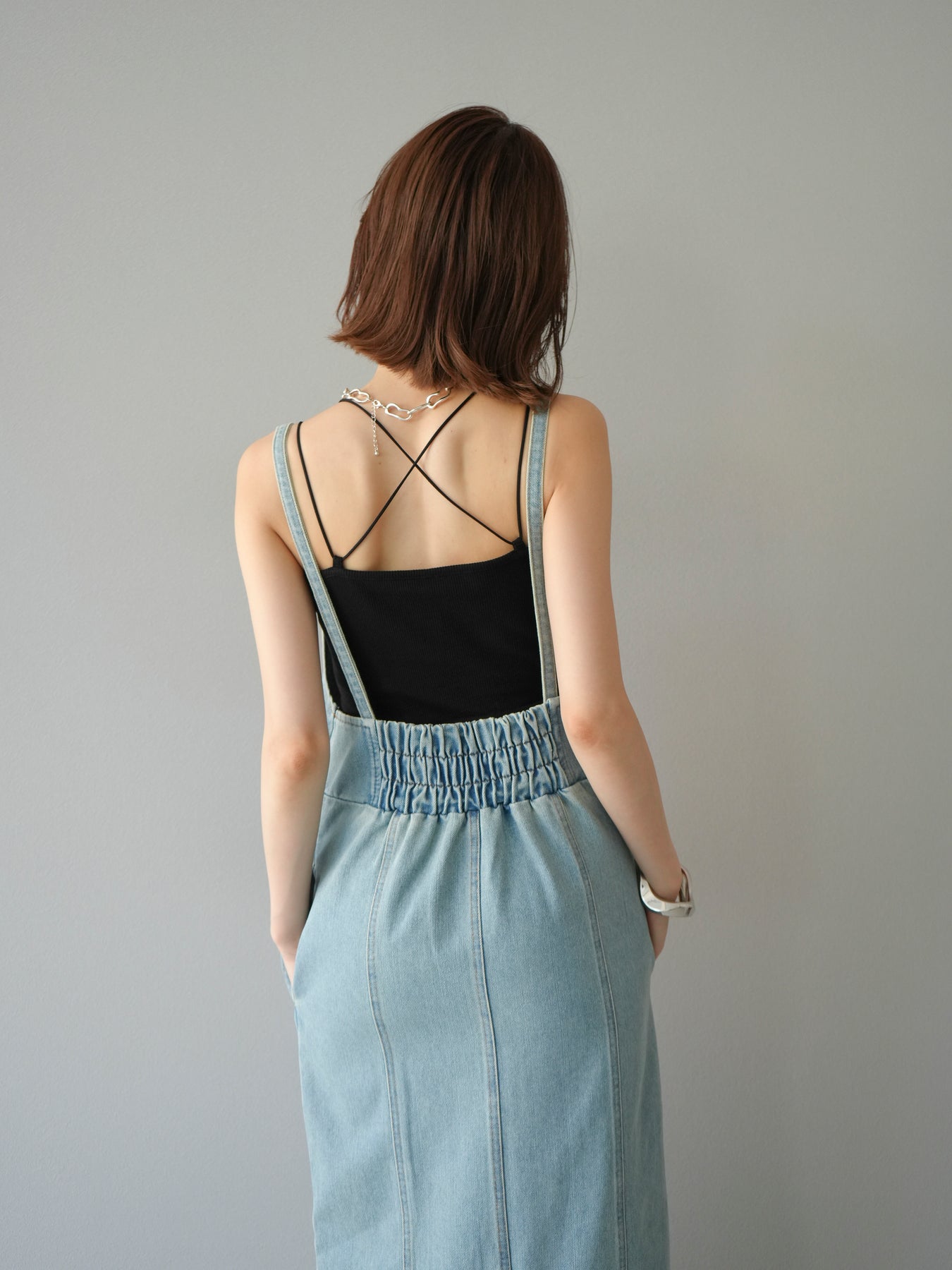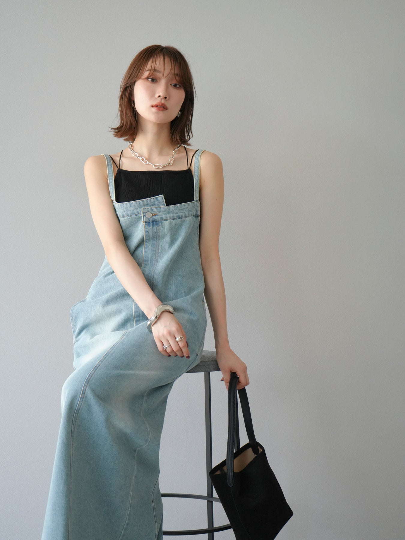 這款牛仔連身裙散發著精緻的氣息,肩帶和前襟處巧妙地融入了不對稱設計。直筒I字輪廓更顯修長。休閒的牛仔布料是其一大亮點,其設計營造出女性化、輕鬆隨興的造型。根據搭配的內搭,例如T卹、背心或透視上衣,它四季皆宜。它完美契合精緻休閒的造型,讓您一穿上便成為眾人矚目的焦點。 ※除下裝、吊帶背心(內衣)以外的商品均為標準品,不含內衣。