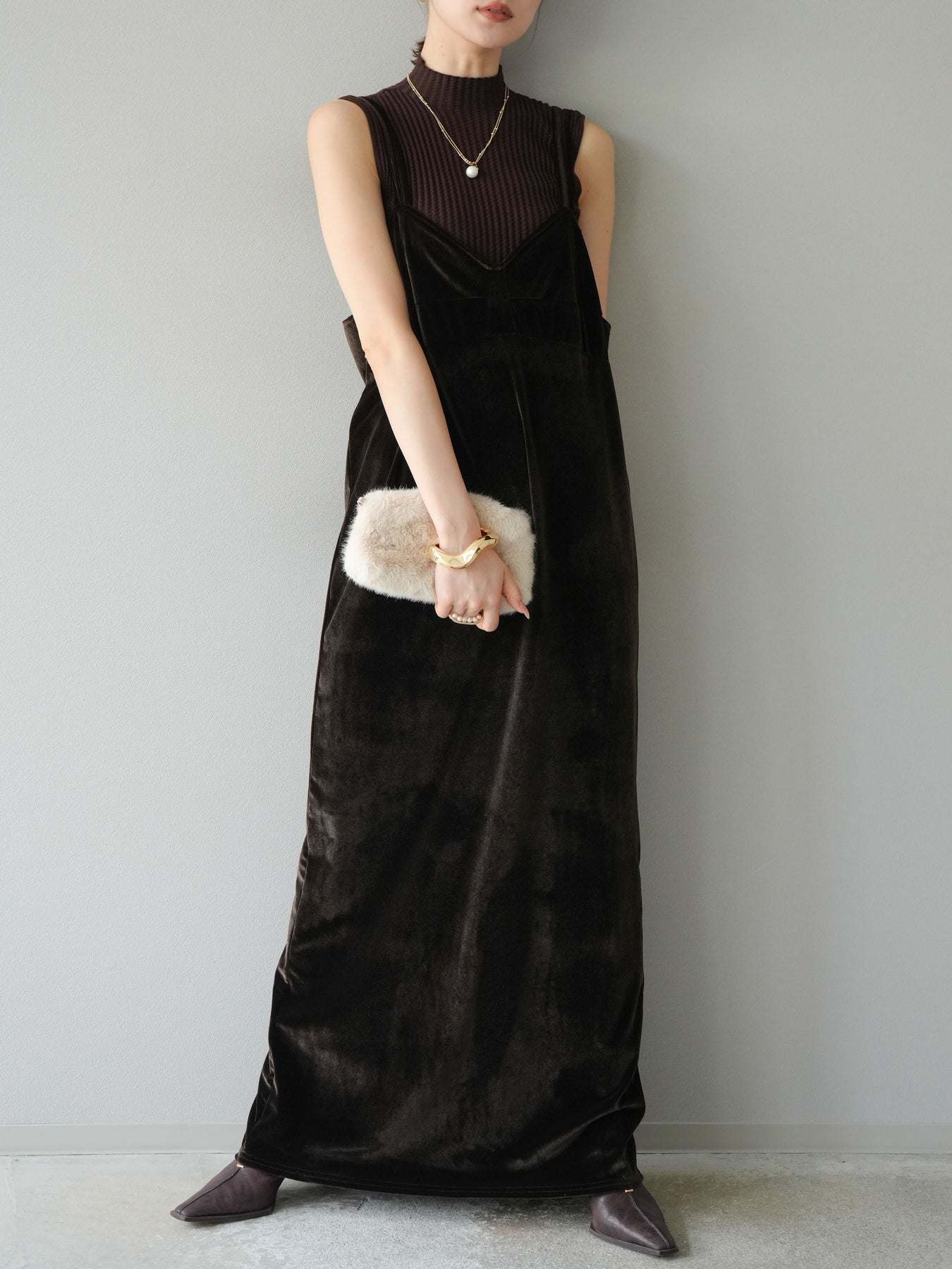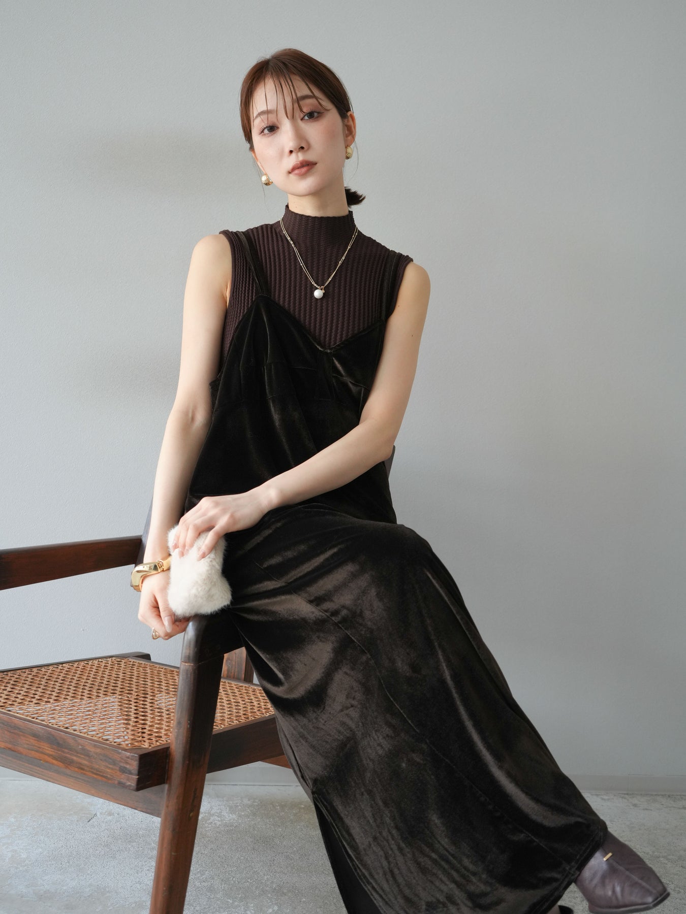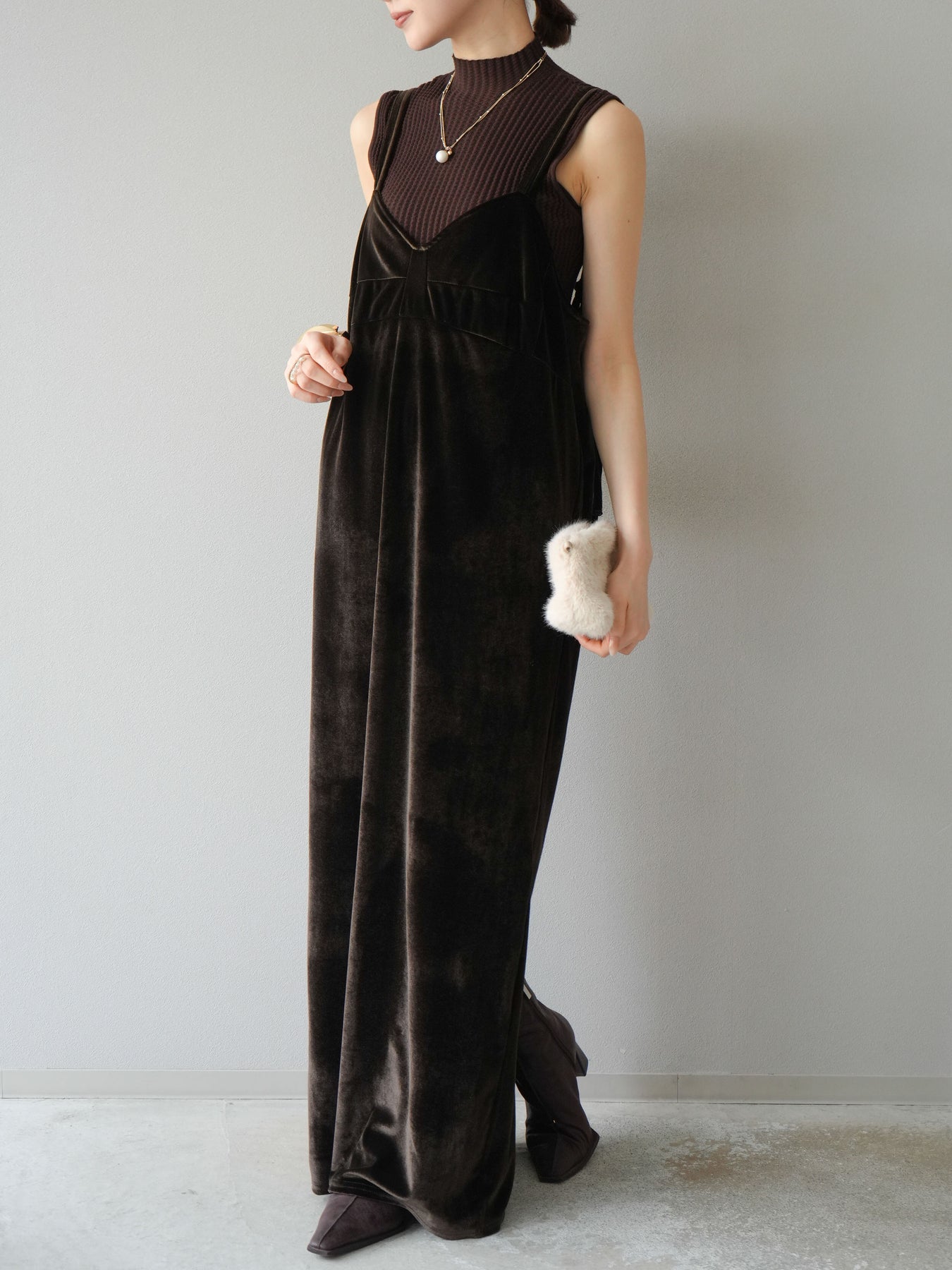[予約]ベロアビスチェキャミワンピース/ブラウン
