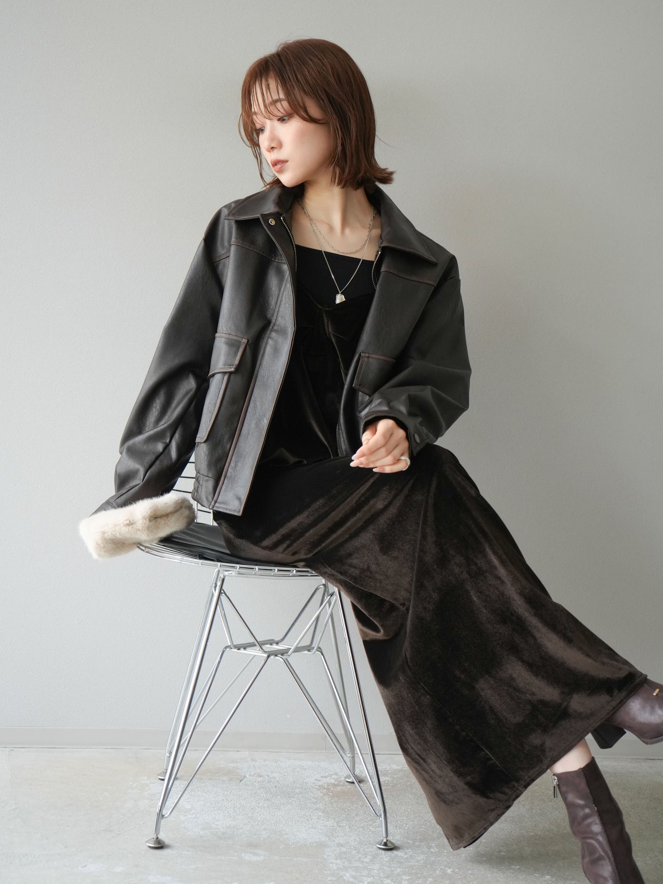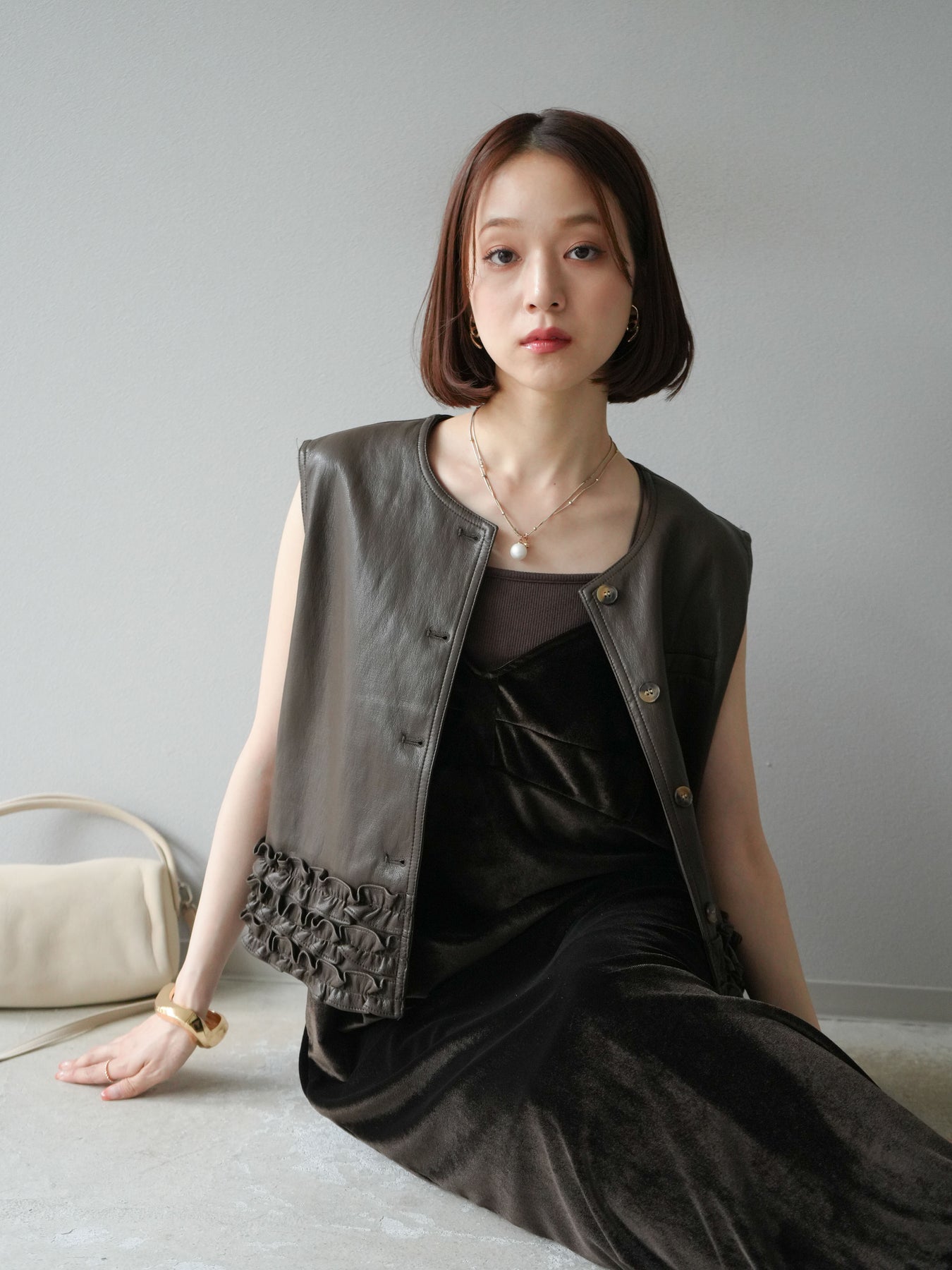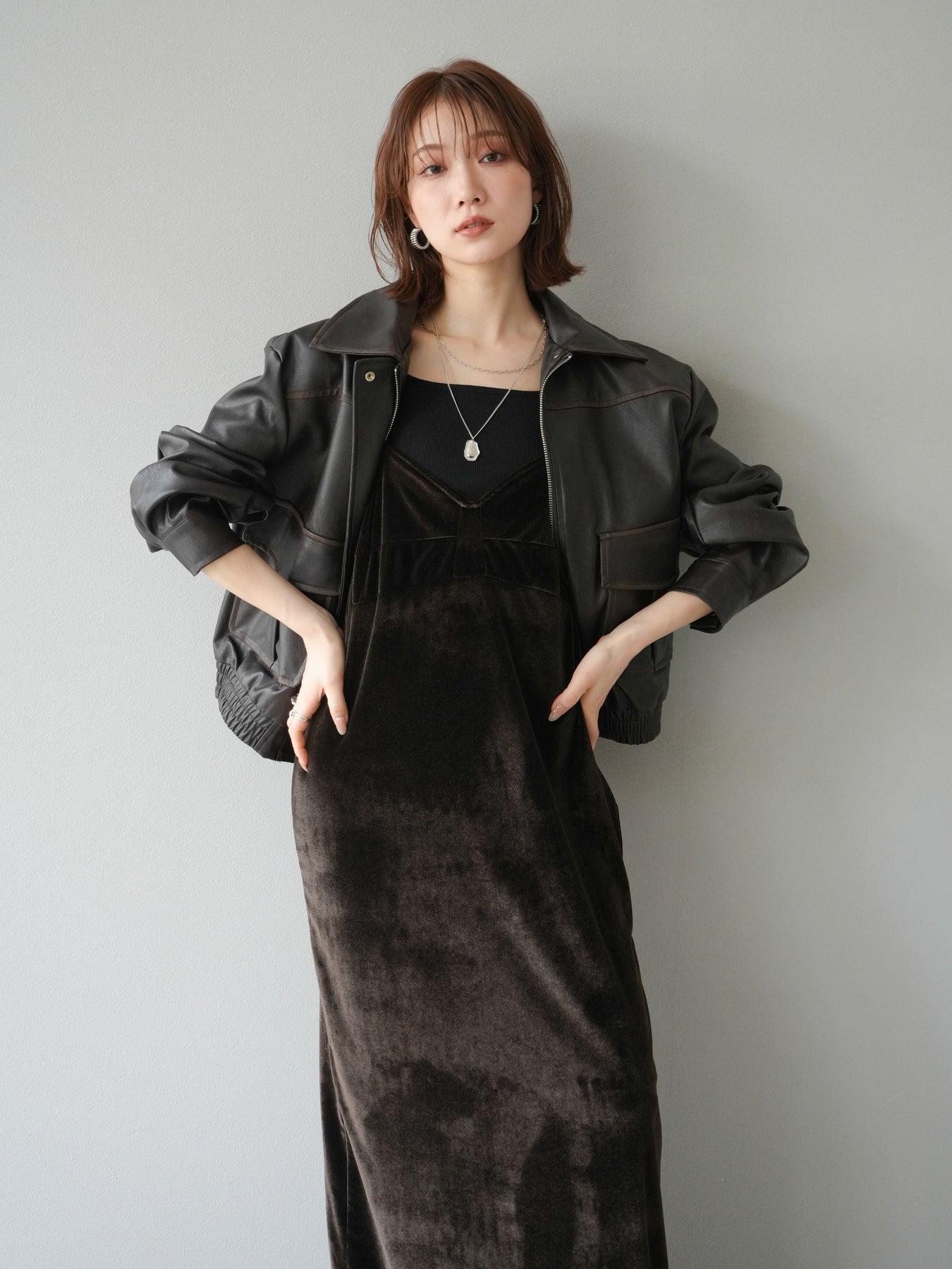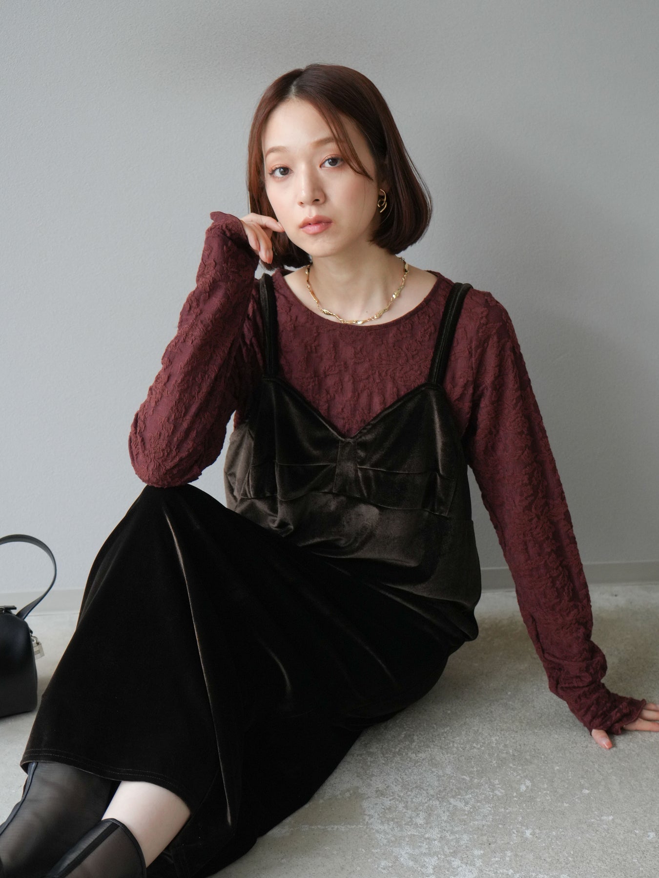 [予約]ベロアビスチェキャミワンピース/ブラウン