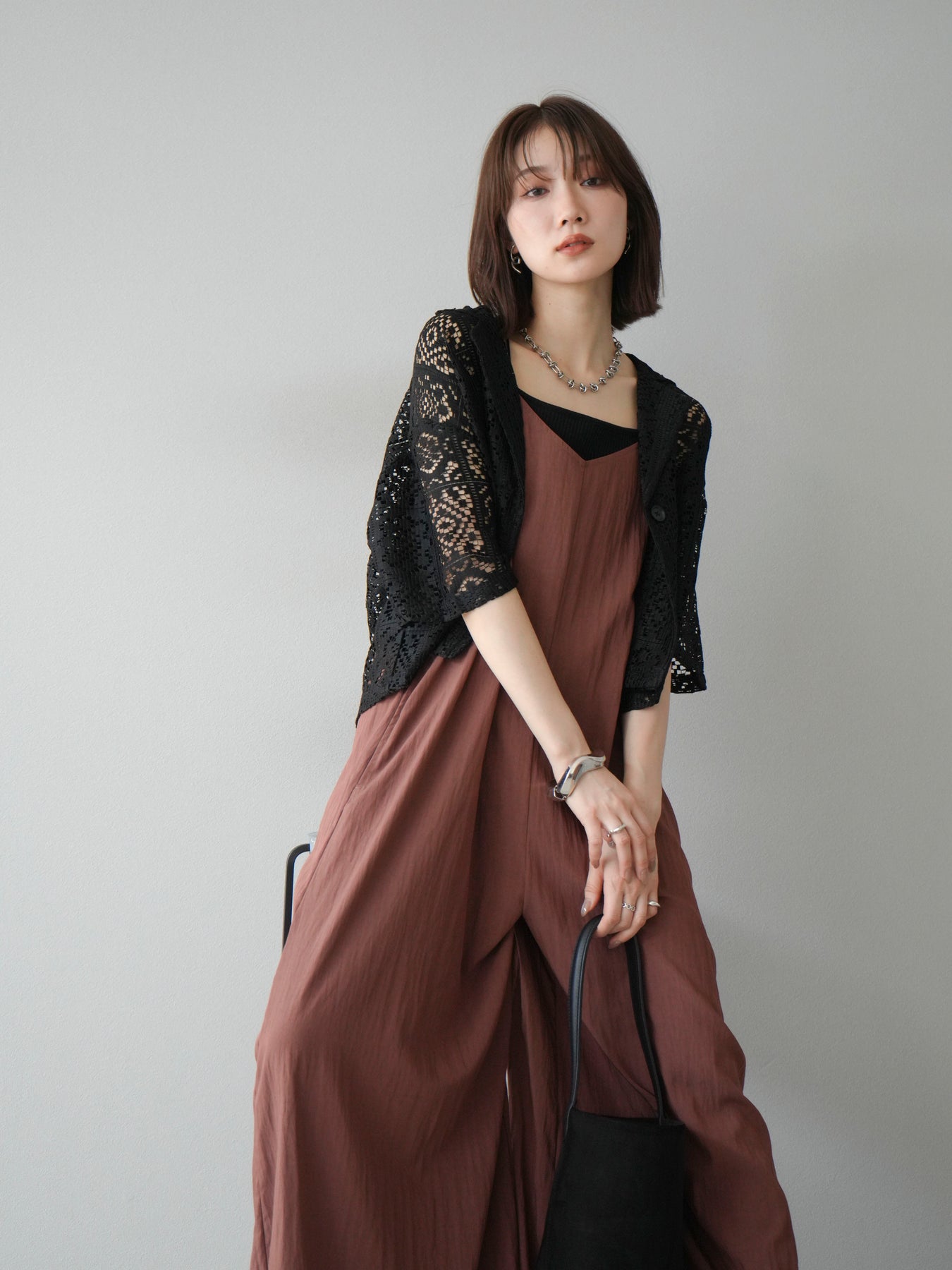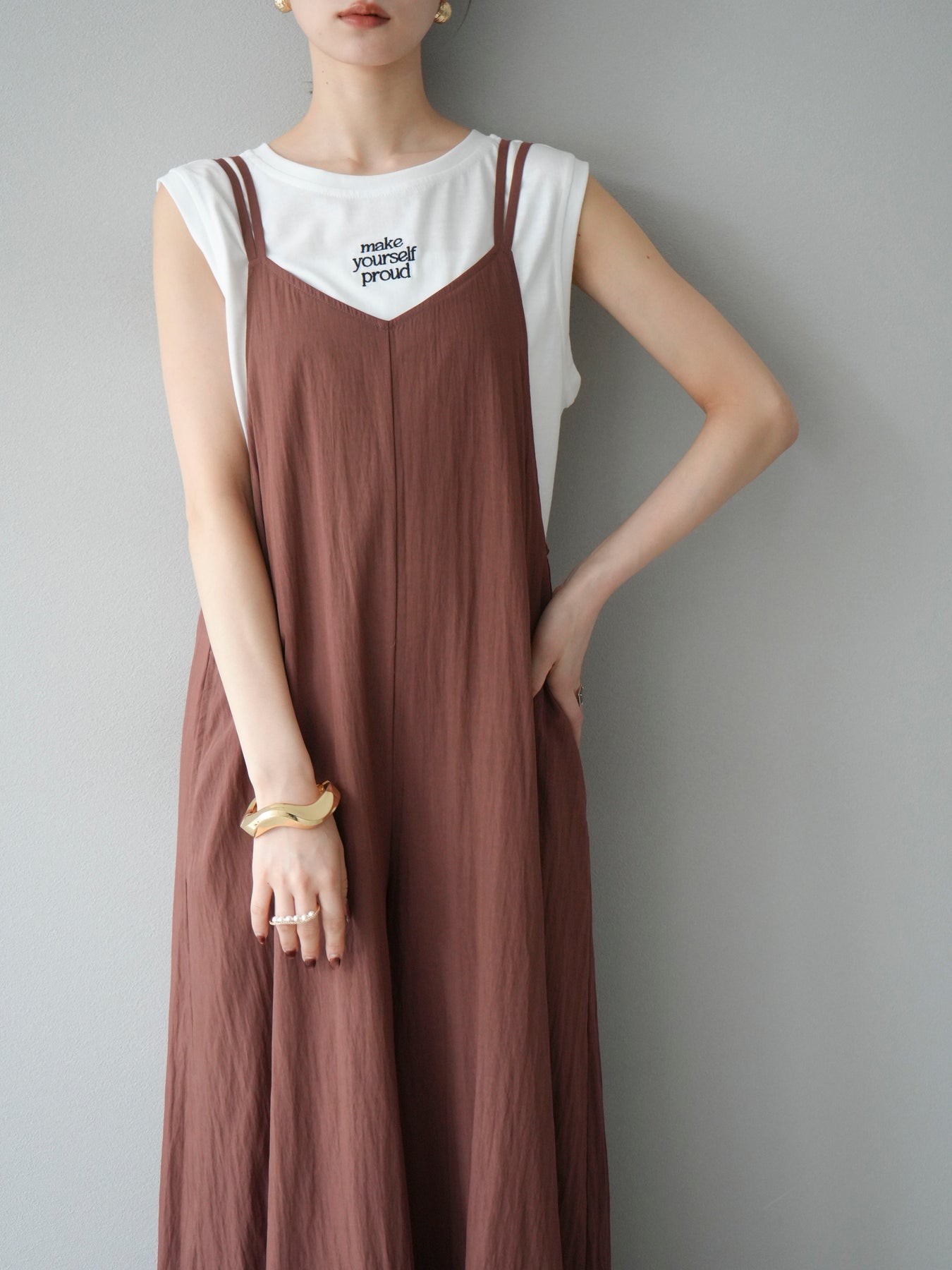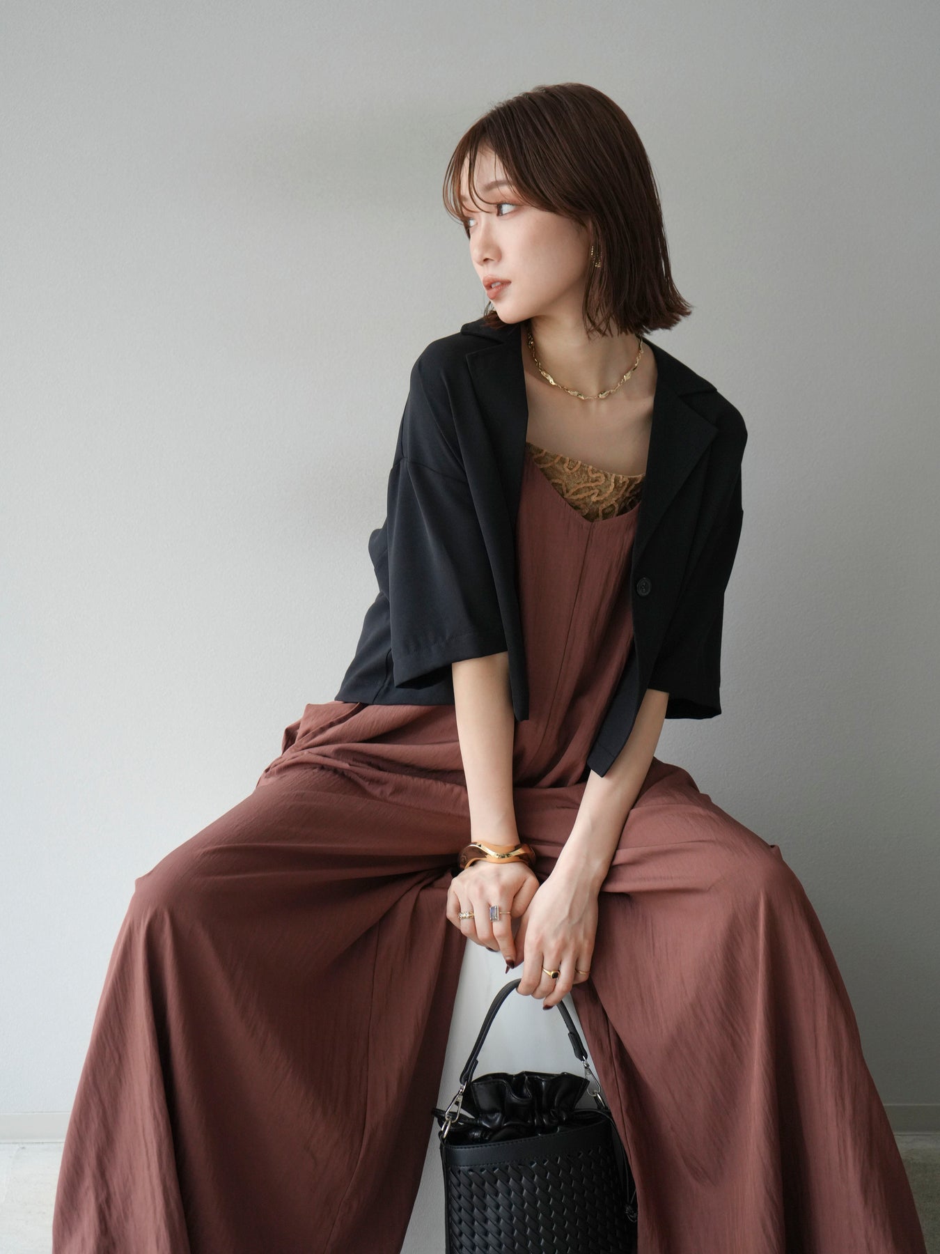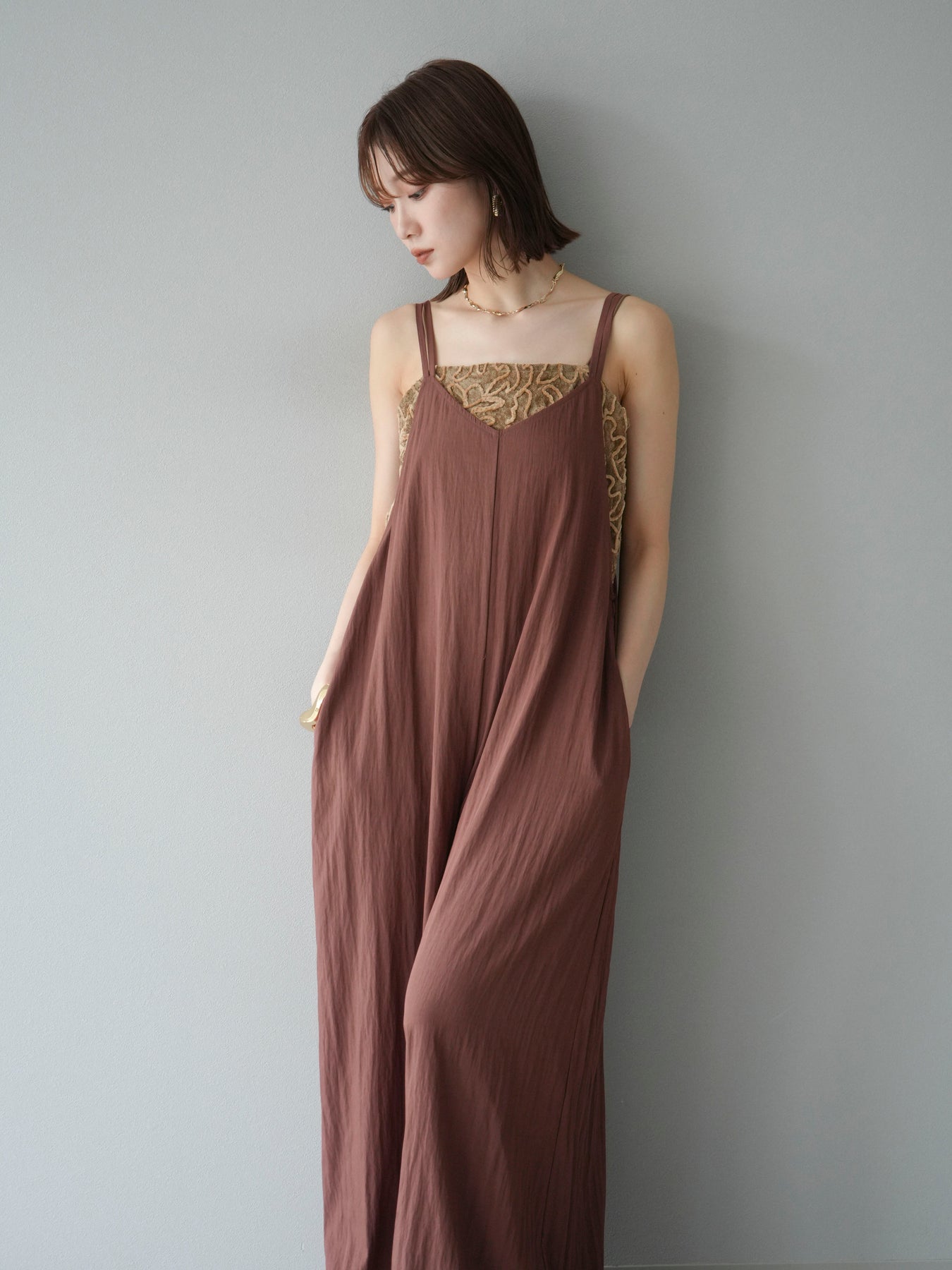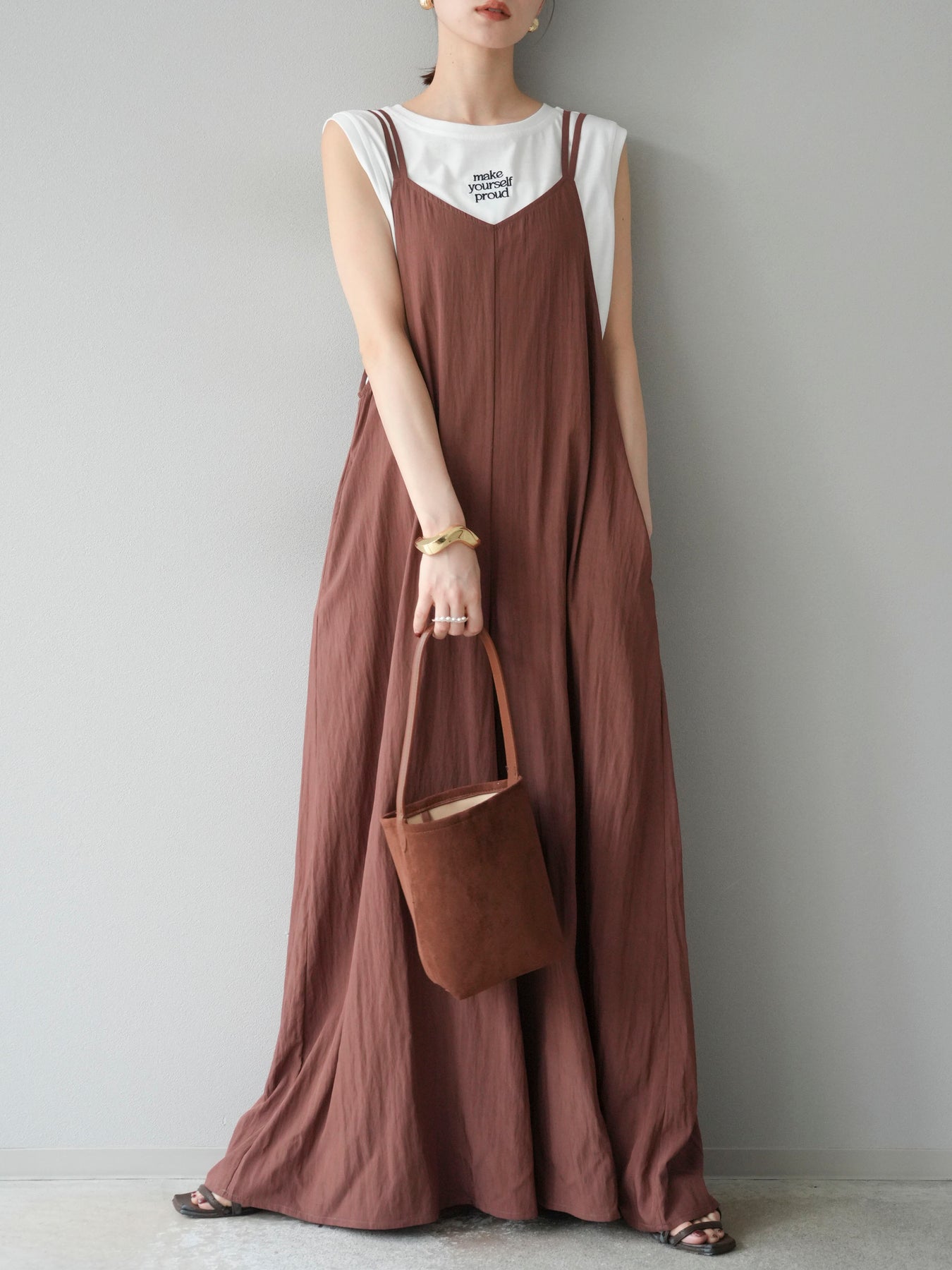落ち感のあるレーヨン混素材が、リラクシーかつ上品な印象を与えるVネックサロペット。 深めのVネックと肩紐デザインが顔まわりをすっきり見せ、レイヤードスタイルにもぴったり。ゆとりあるワイドシルエットが体型を自然にカバーしつつ、こなれ感を演出してくれます。 柔らかな素材で肌あたりも優しく、長時間の着用でも快適。インナー次第でカジュアルからキレイめまで幅広く活躍する、着回し力の高い1着です。 ポケット付きで実用性も◎。シーズンレスに楽しめる、大人のデイリーサロペットです。