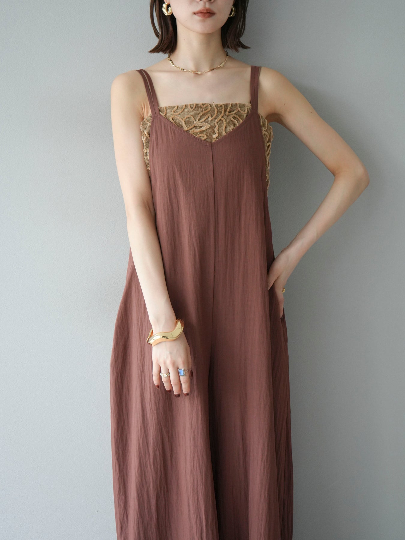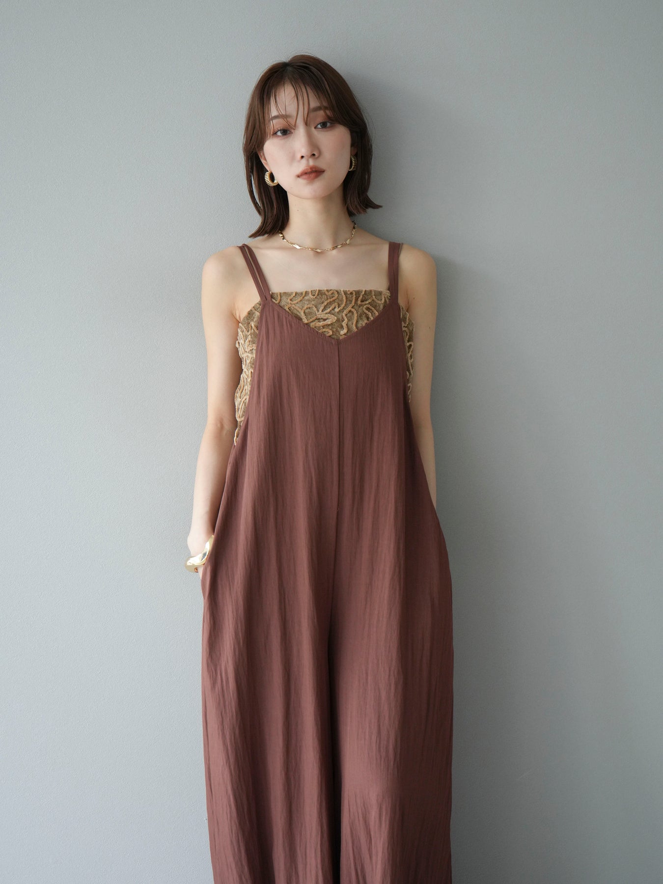 【M】バスト94cm ウエスト118cm 股上66cm(肩紐除く) 股下65cm わたり39cm 肩紐27cm~47cm(調節可能) 裏地なし 透け感なし 伸縮性なし サイドポケットあり