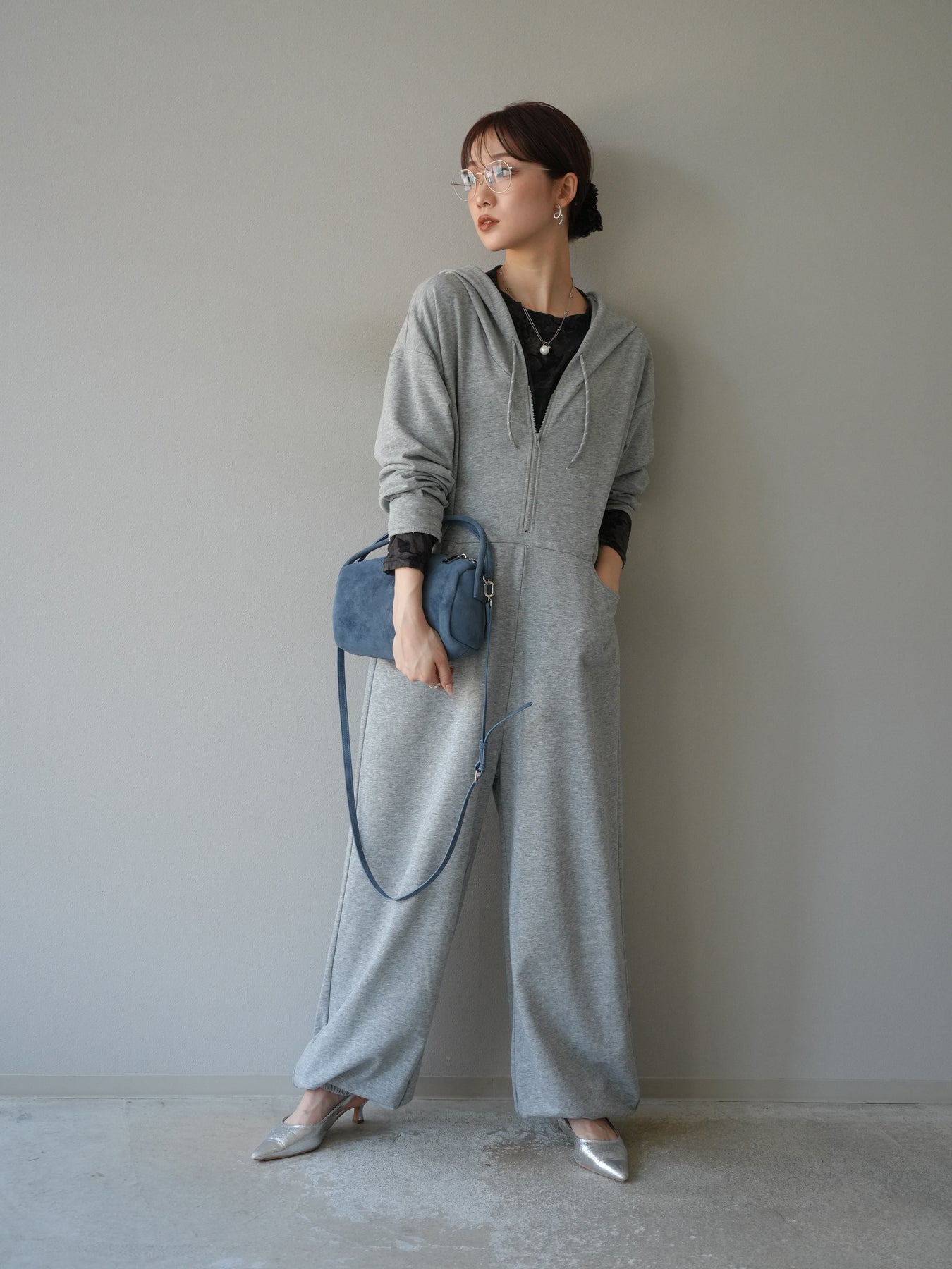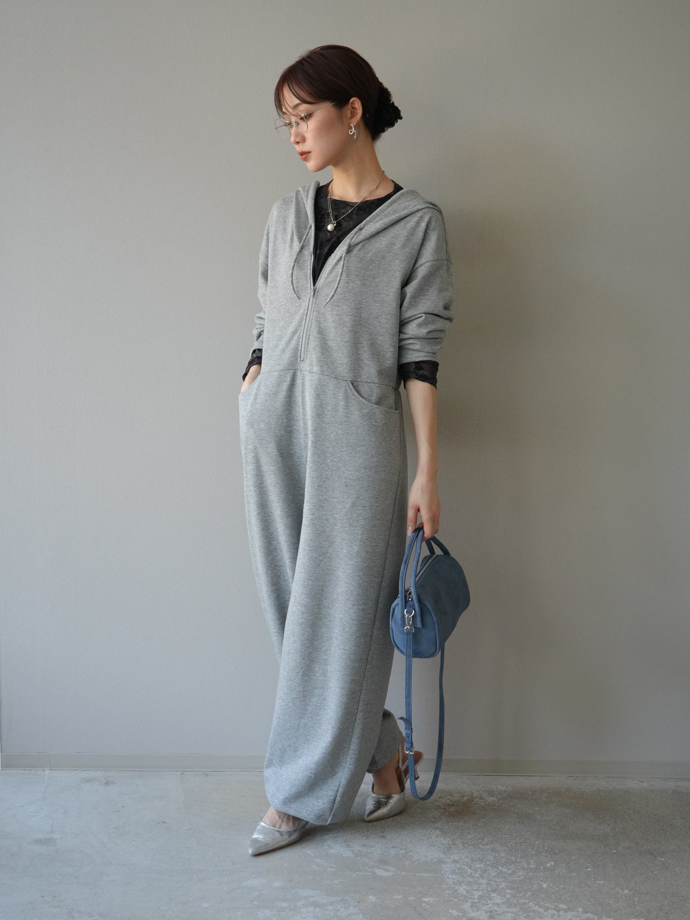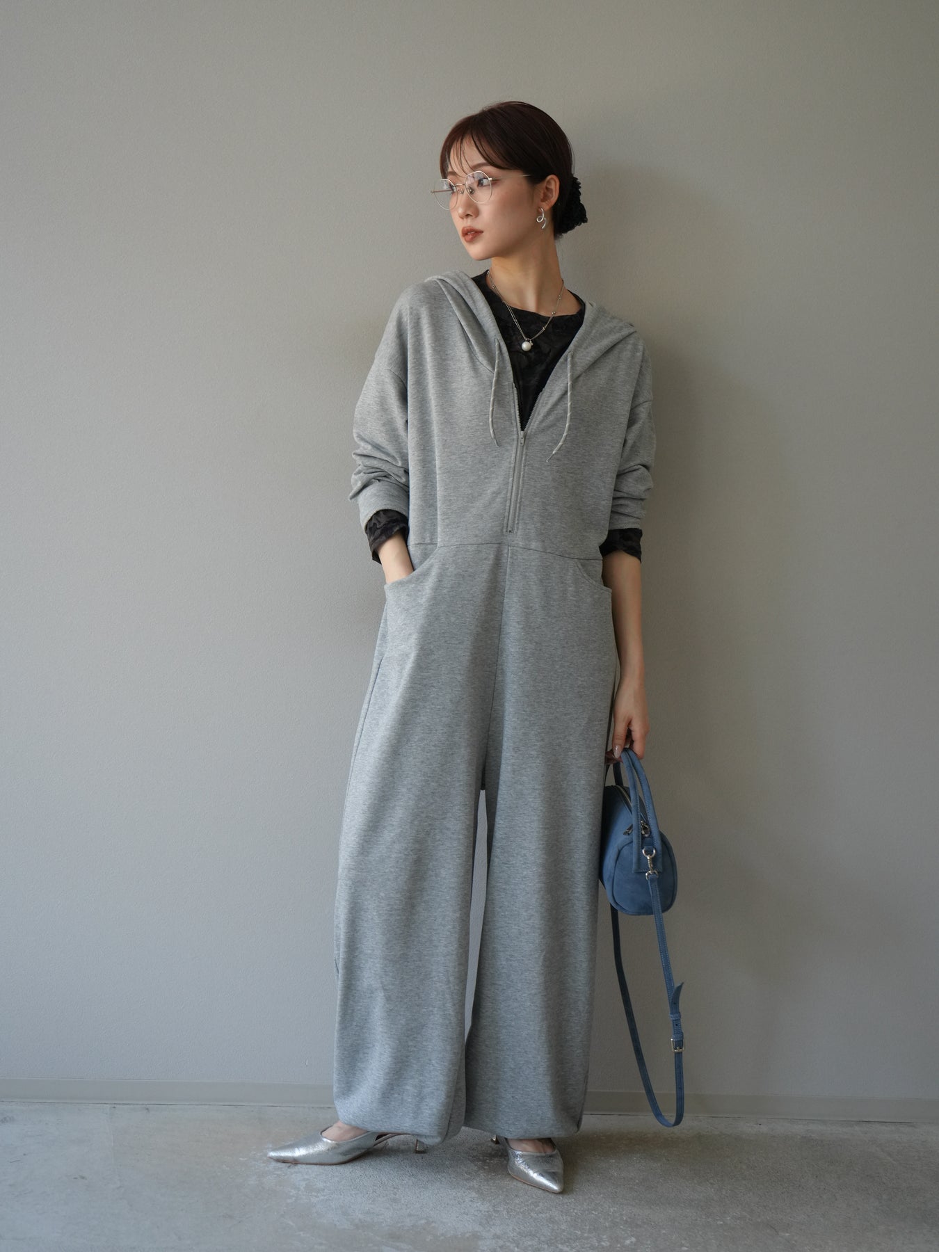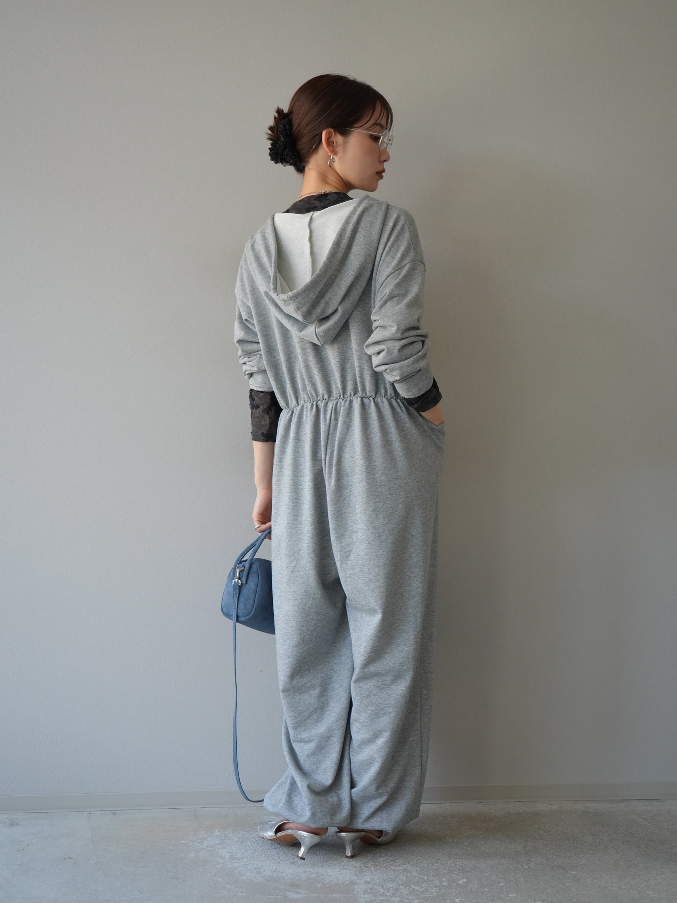 [予約]ミニ裏毛フーディージャンプスーツ/チャコールグレー