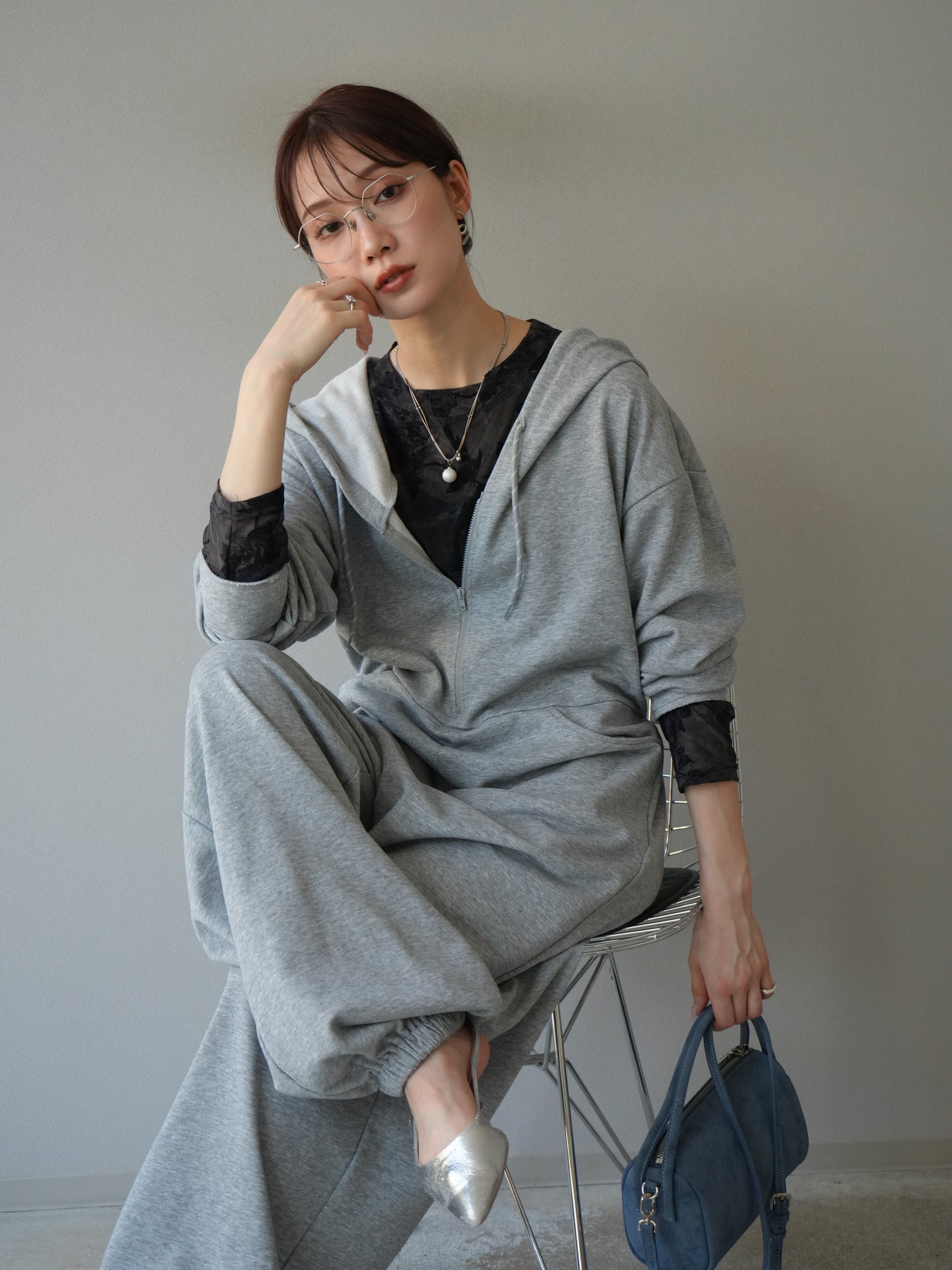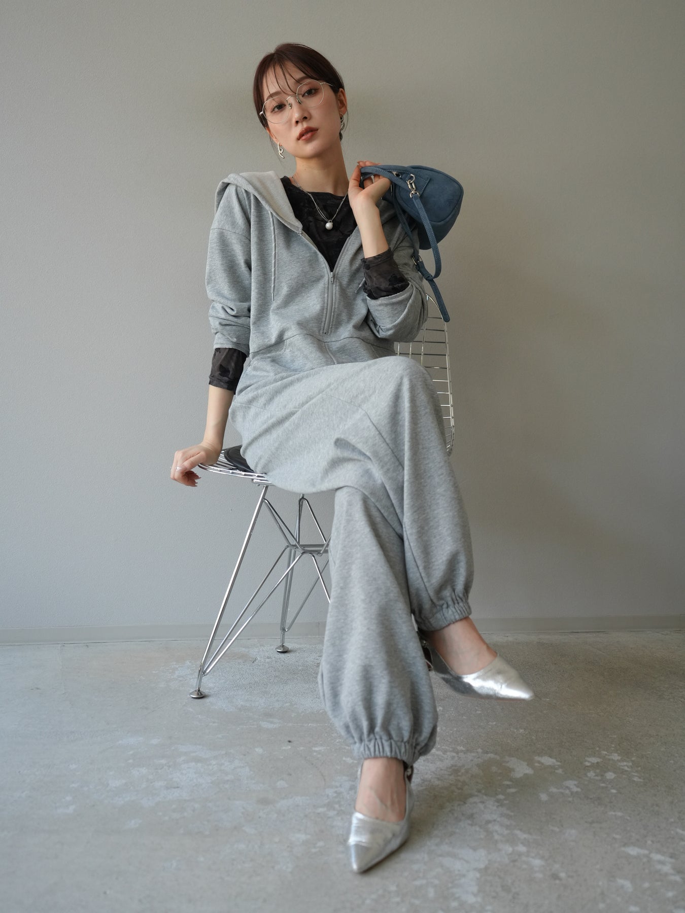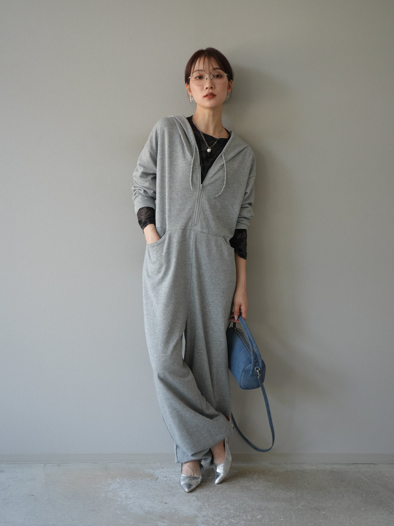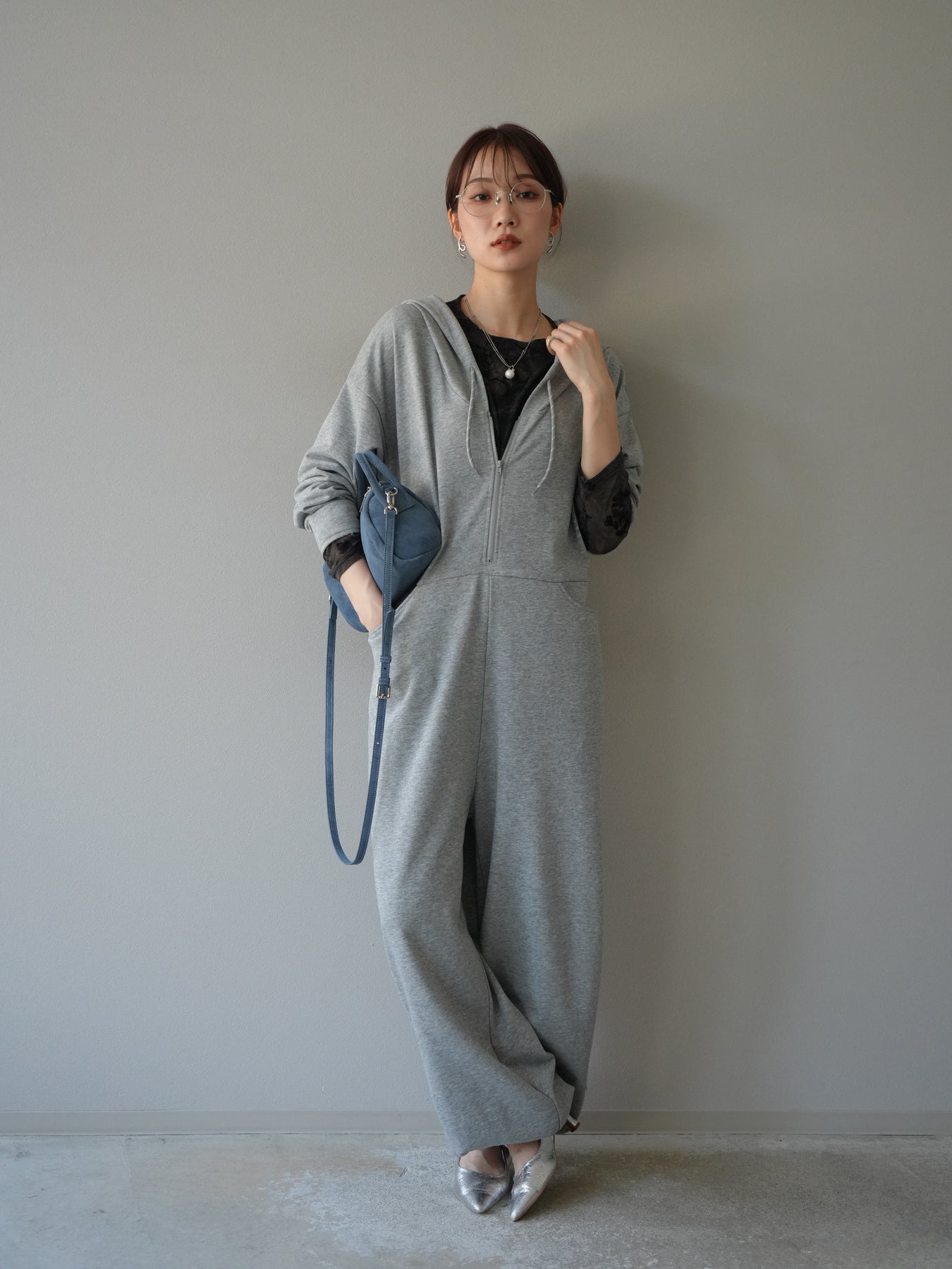 [予約]ミニ裏毛フーディージャンプスーツ/チャコールグレー