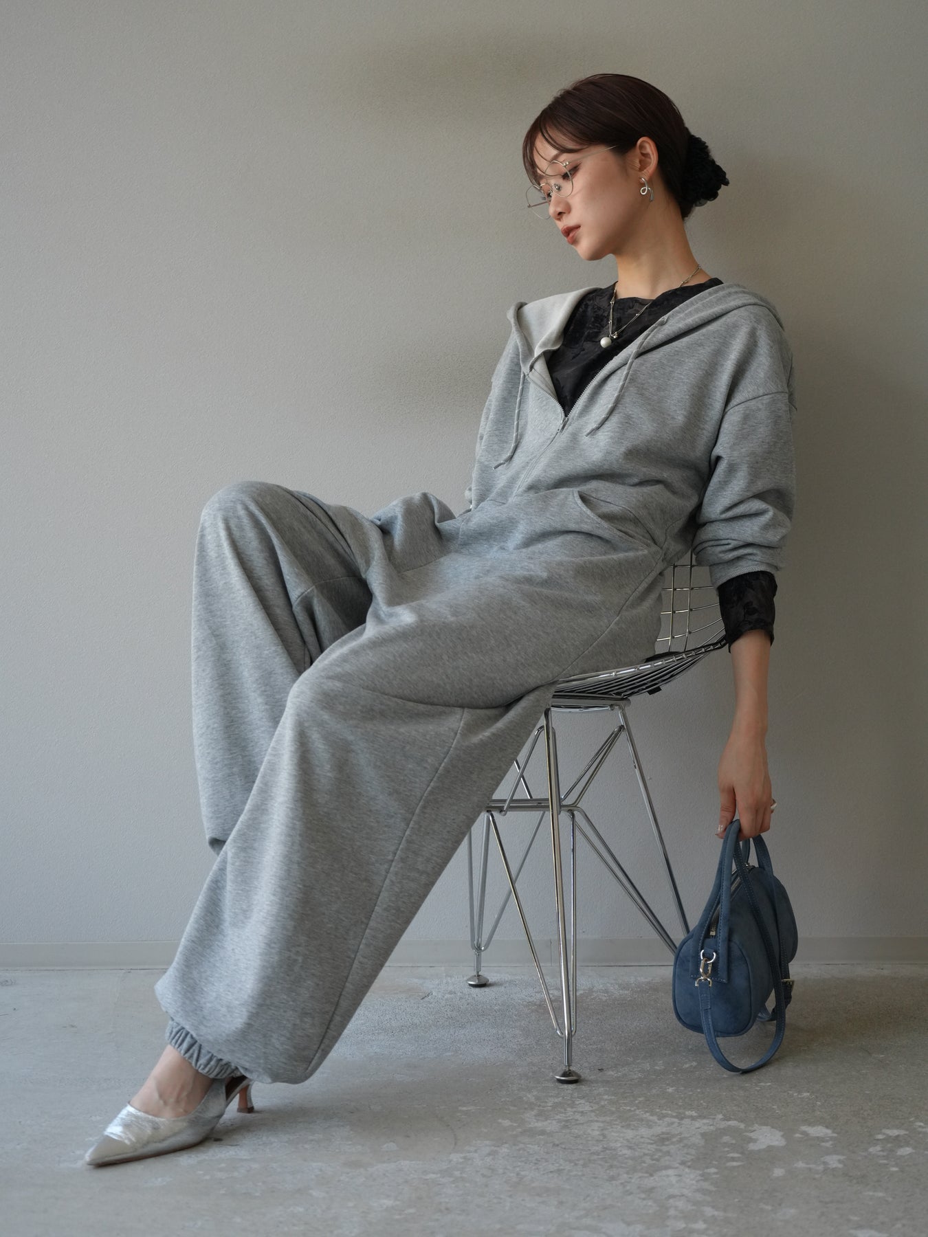 柔らかなミニ裏毛素材を使用したフーディージャンプスーツ。リラクシーな着心地ながらも、フードやウエスト切り替え、裾のゴム仕様などディテールにこだわり、シルエットをすっきりと見せてくれます。カジュアルながら存在感があり、1枚でコーディネートが完成する万能アイテム。ちょっとしたお出かけからリラックスタイムまで幅広く活躍し、シーズンを問わず取り入れやすい一着です。