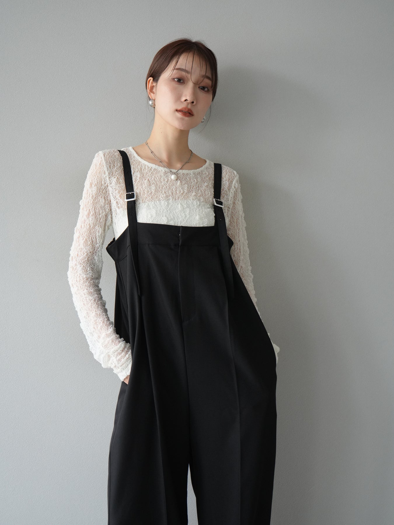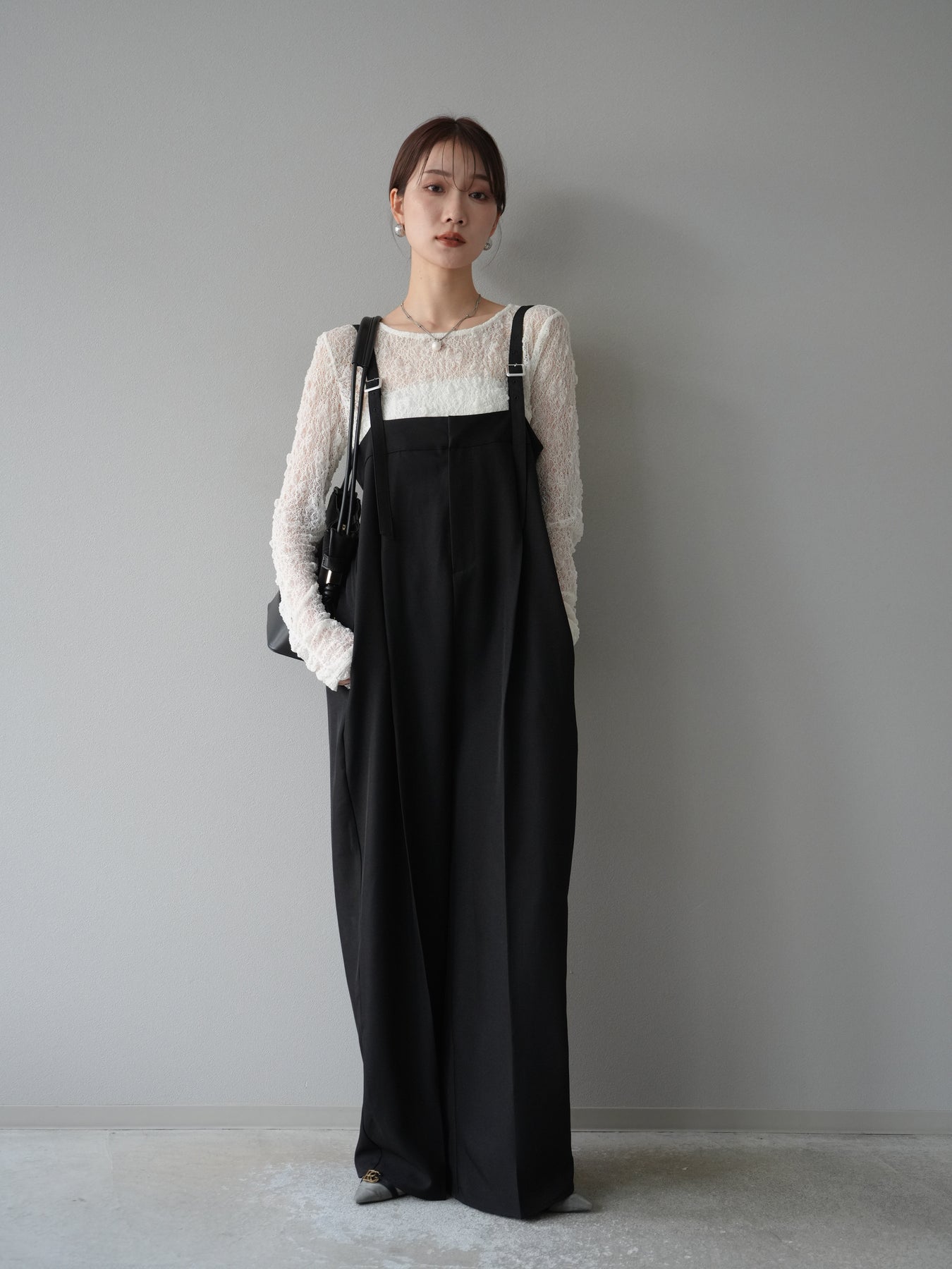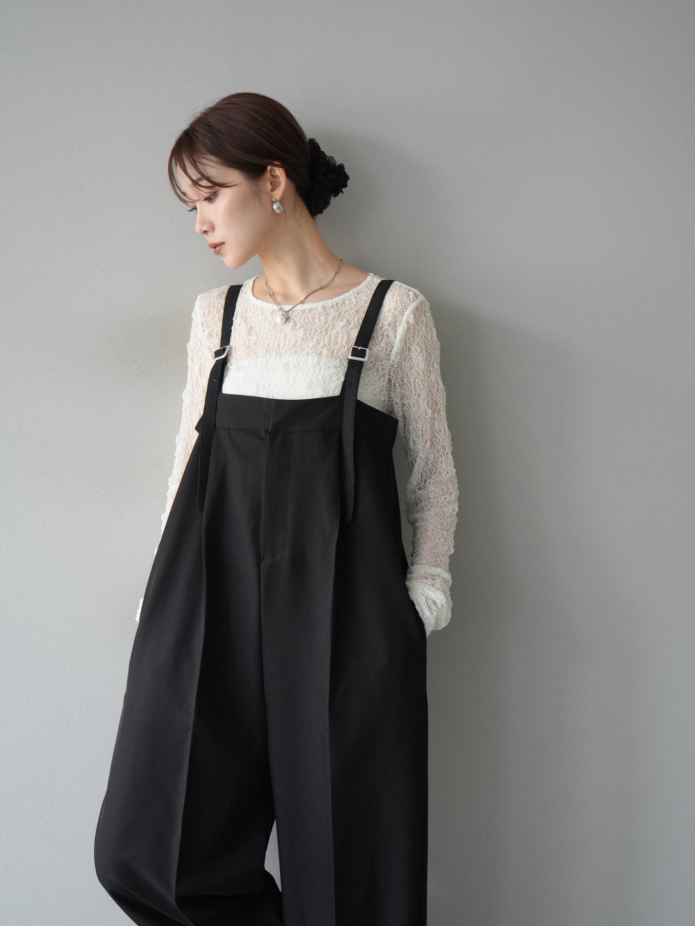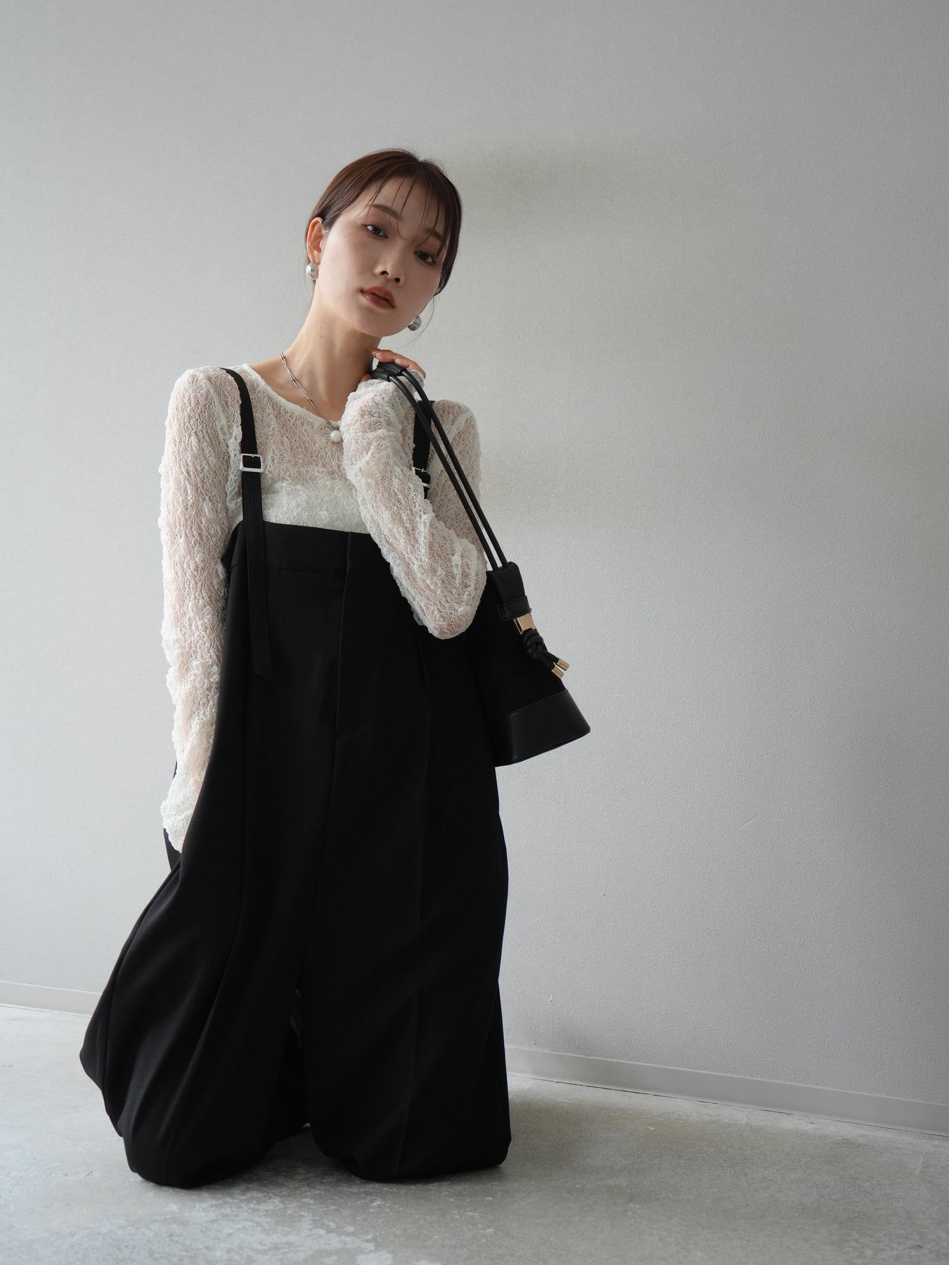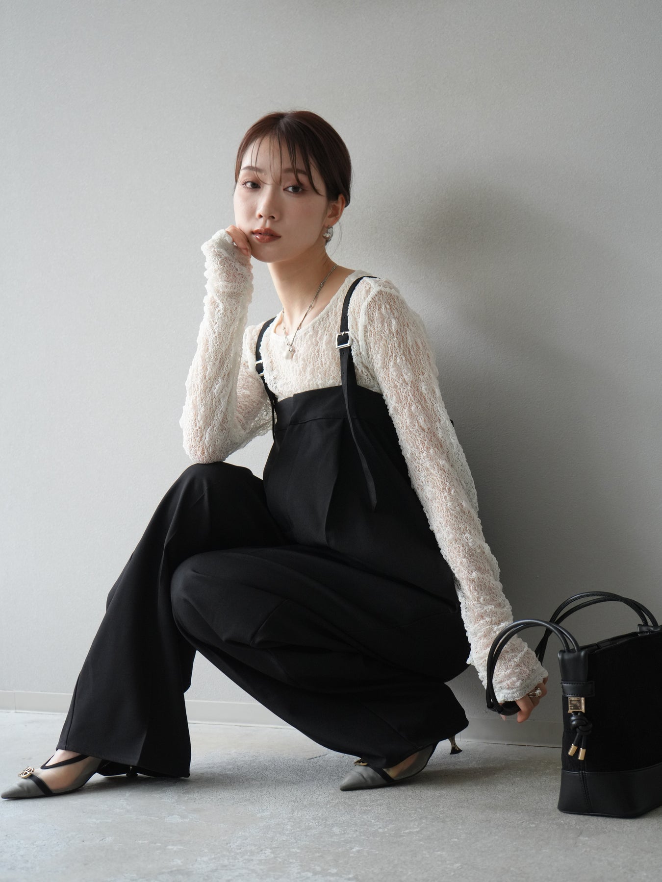 一件由優雅的斜紋材料製成的時尚熊工作服。它配有可拆卸的錶帶,其精美的設計使您可以以兩種方式享受它。高腰設計使你的腿看起來更長,並提升你的風格。根據您所穿的內衣,您可以將其設計成休閒或別緻的風格。該材料可全年使用,適用於從日常使用到外出等各種場合。這是一件簡單的作品,但卻注重細節。 ※除下裝、吊帶背心(內衣)以外的所有商品均不包含內衣。