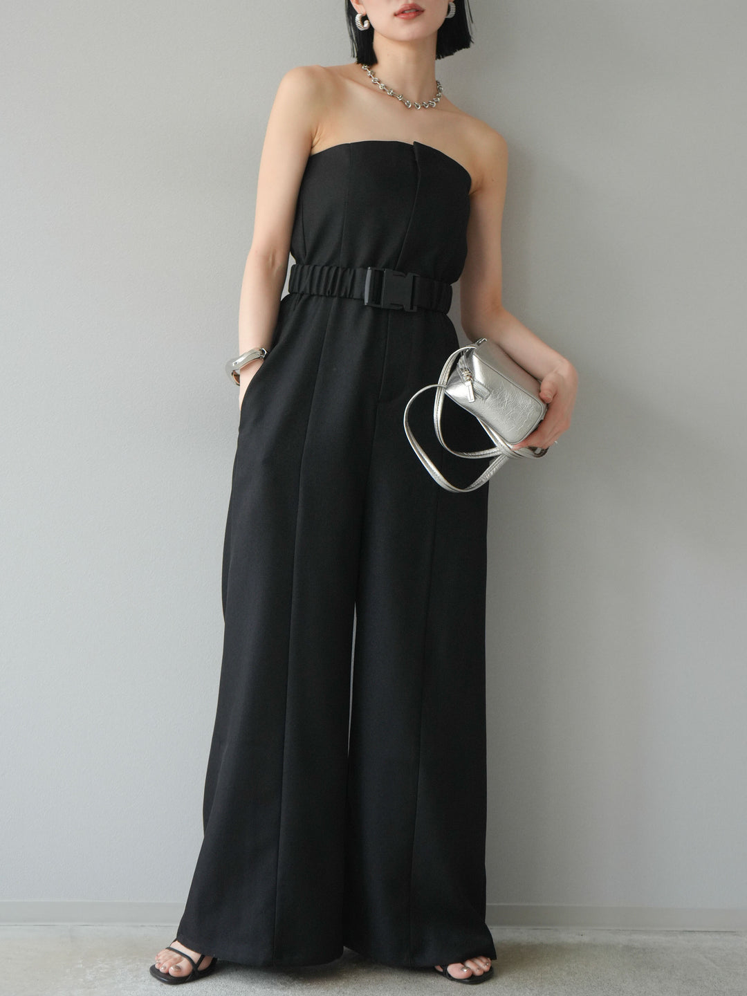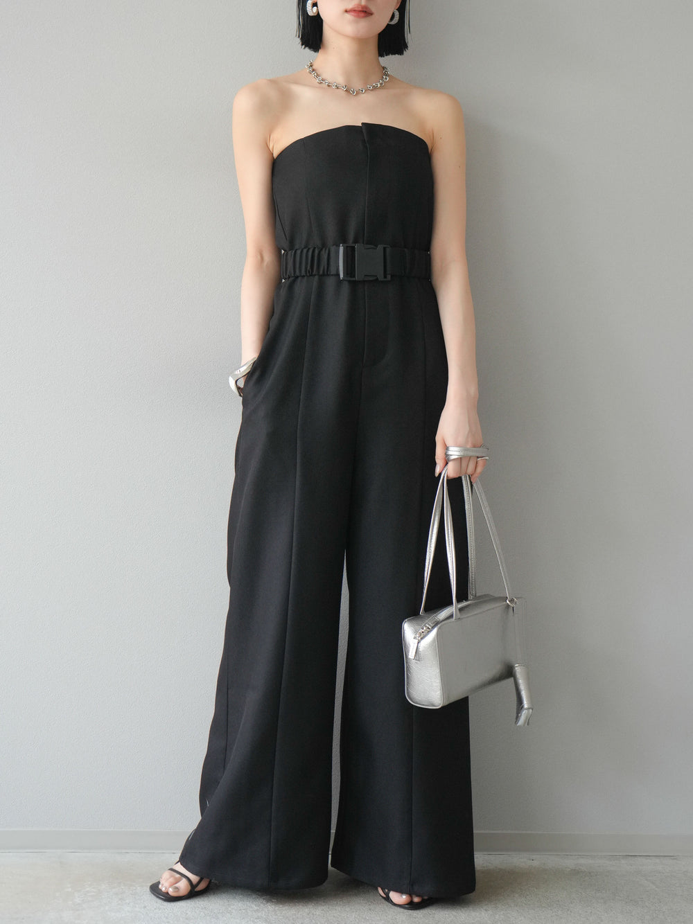 [預購] 亞麻觸感多層吊帶連身衣/黑色