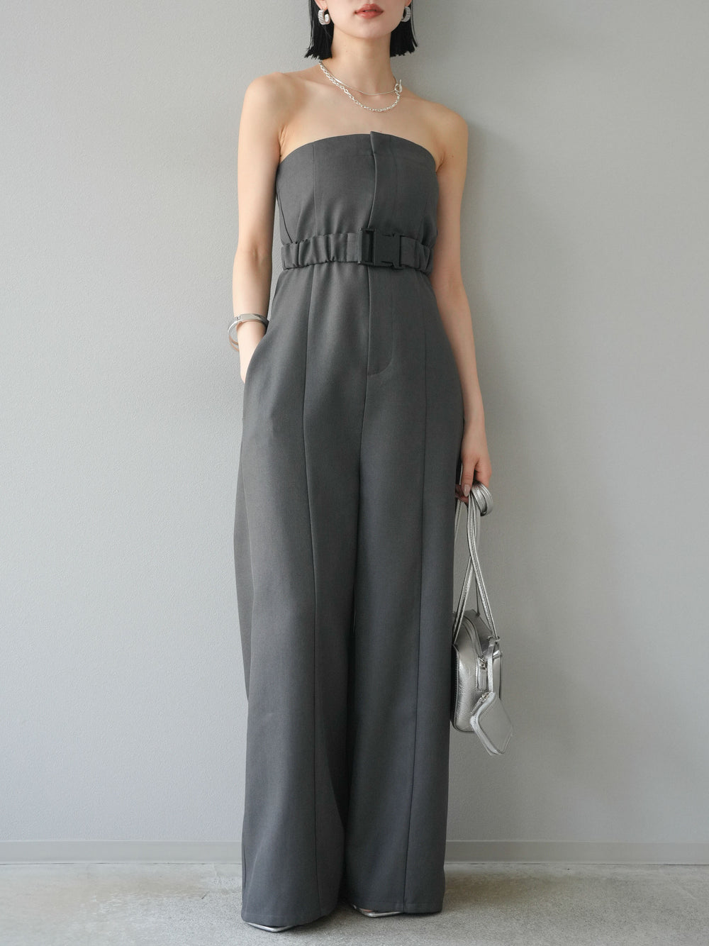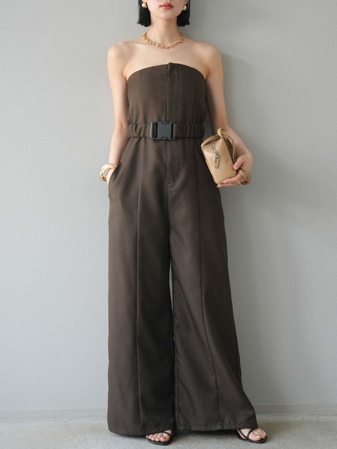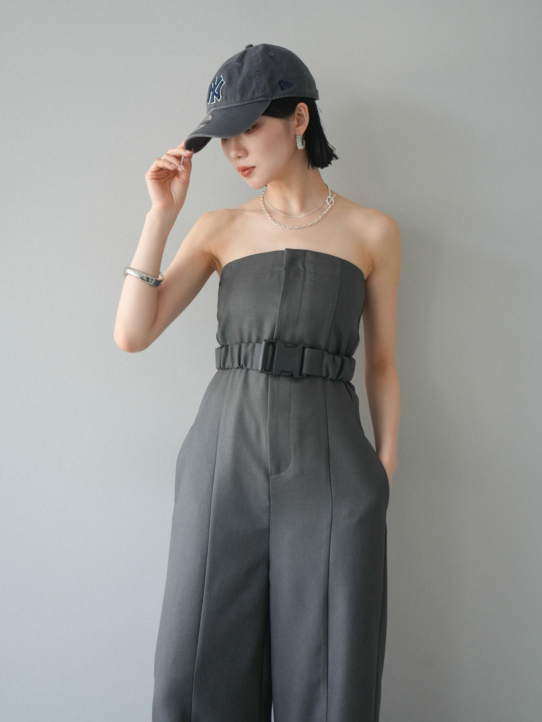 [預訂] 亞麻質感多層吊帶連身衣/灰褐色