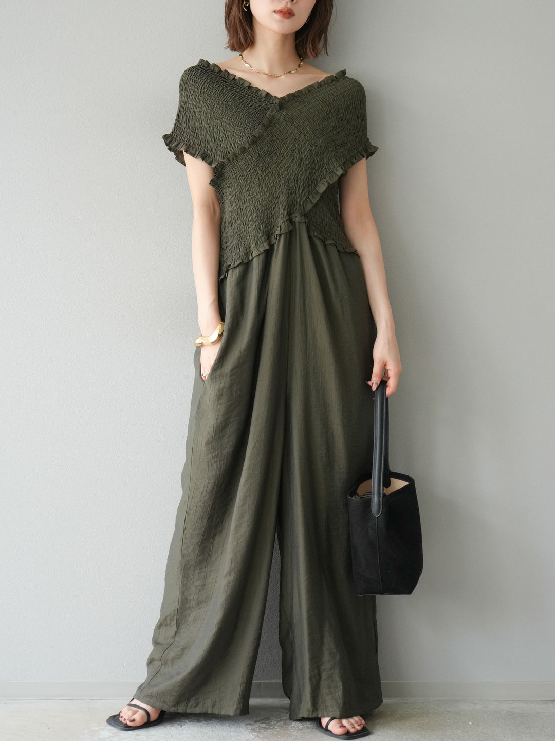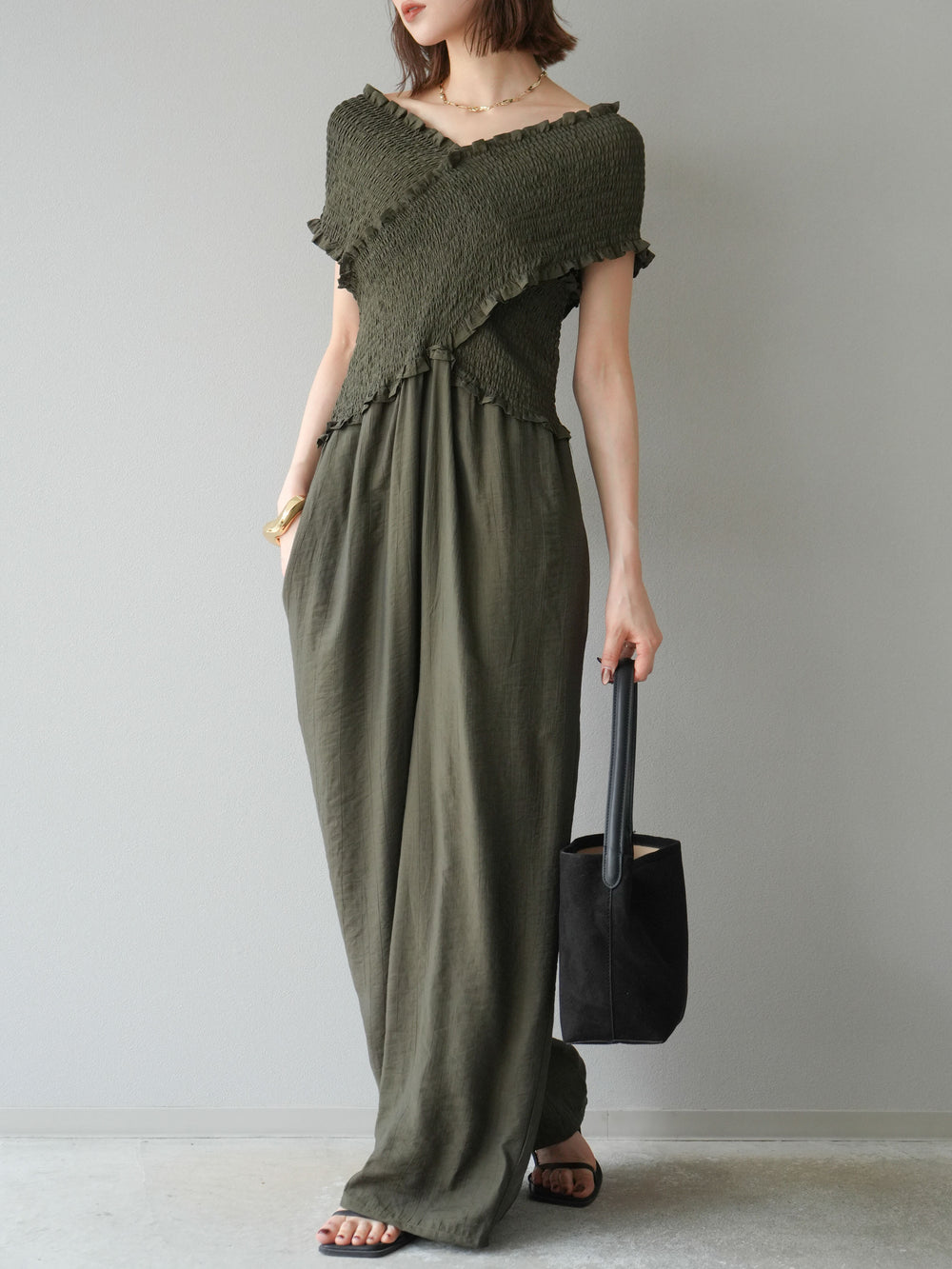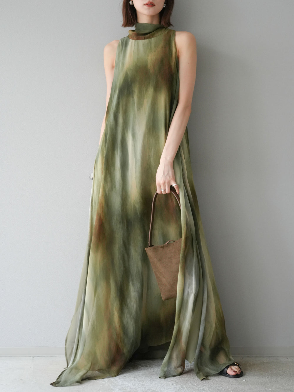 [予約]ニュアンスシアーレイヤードスリットワンピース/グリーン