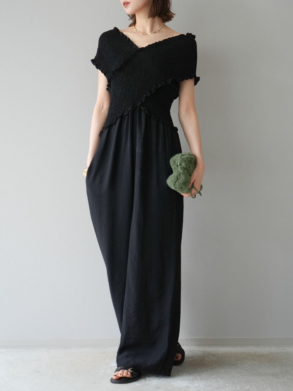 [予約]シアーホルターバックオープンワンピース/ブラック
