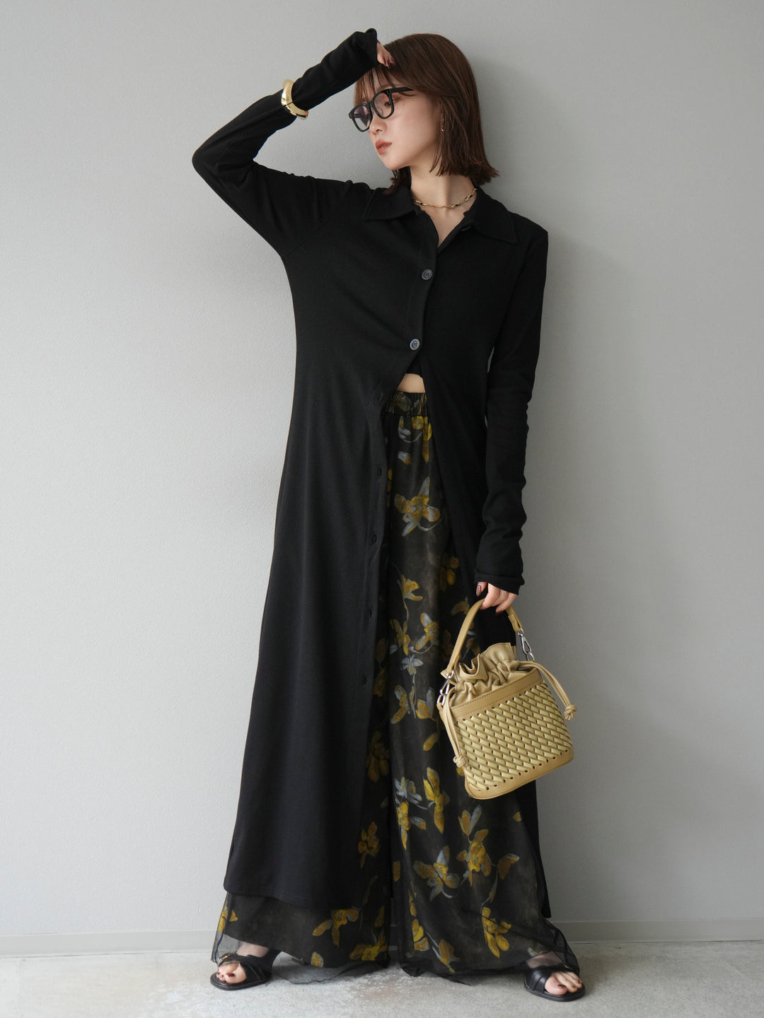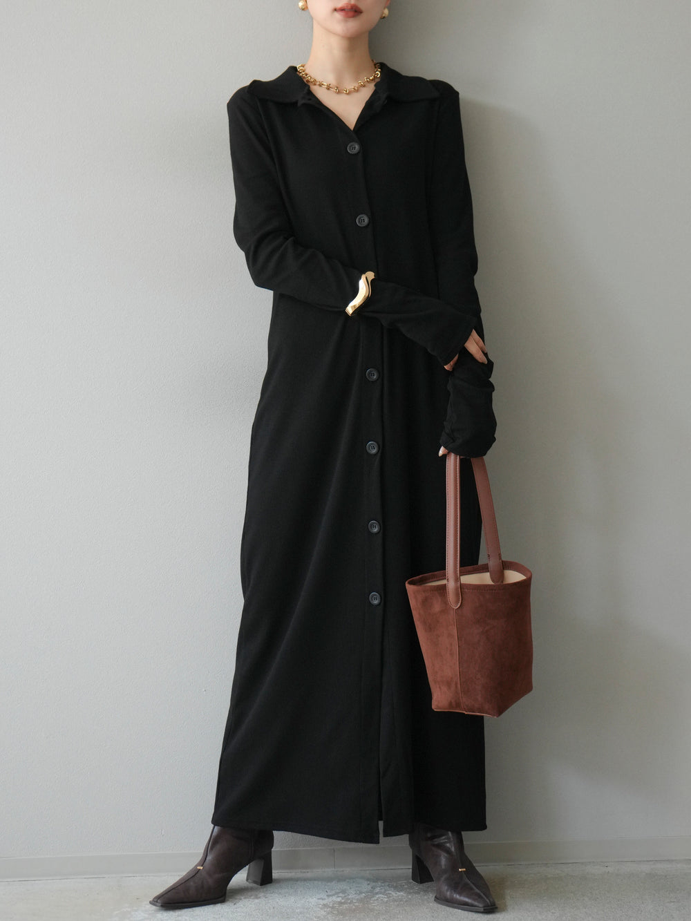 [予約]襟付きカットリブボタンワンピース/ブラック