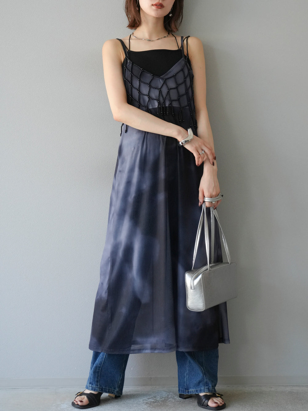 [予約タイダイ柄シアーキャミワンピース/モノトーン