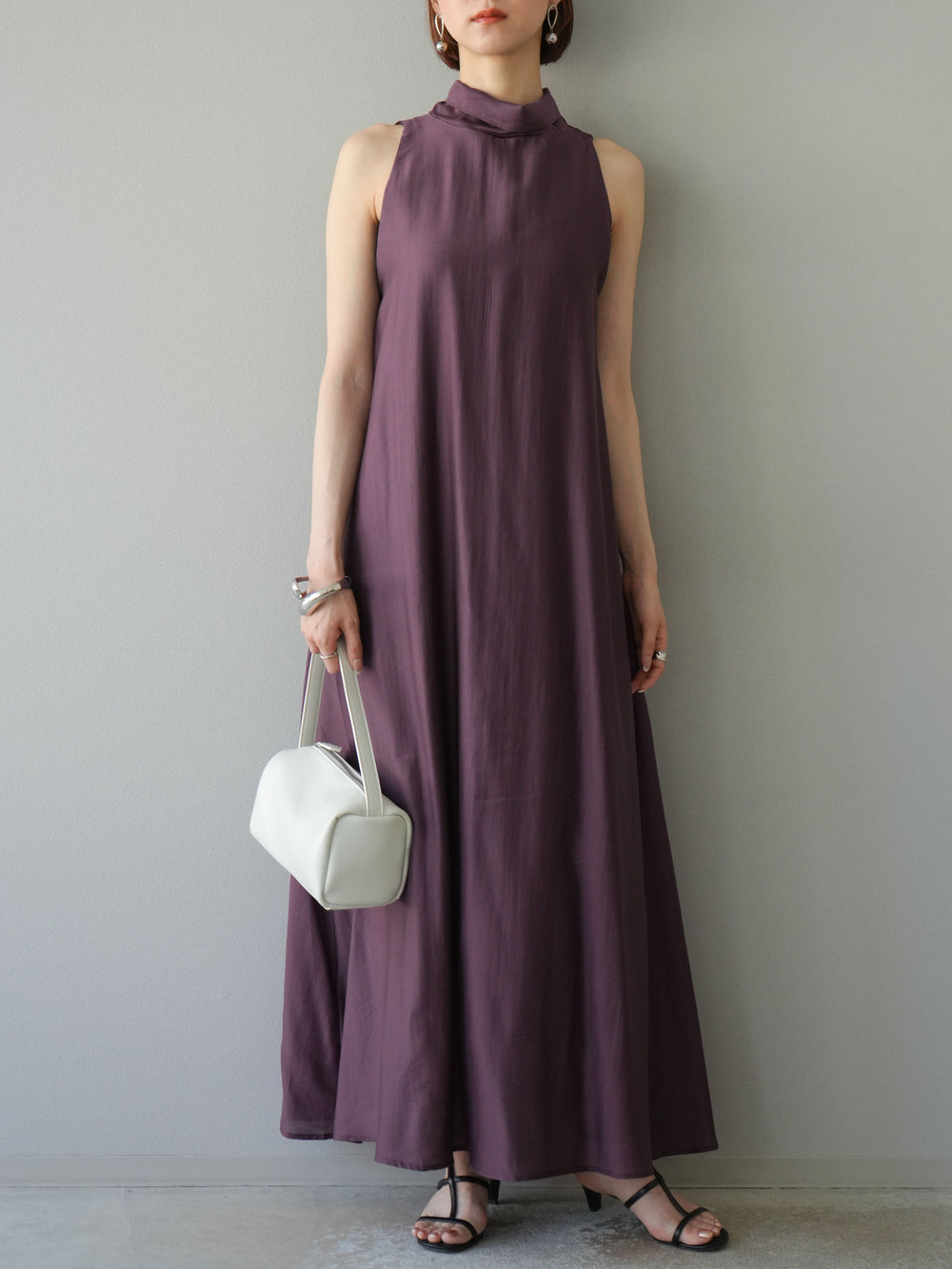 [予約]シアーホルターバックオープンワンピース/ボルドー