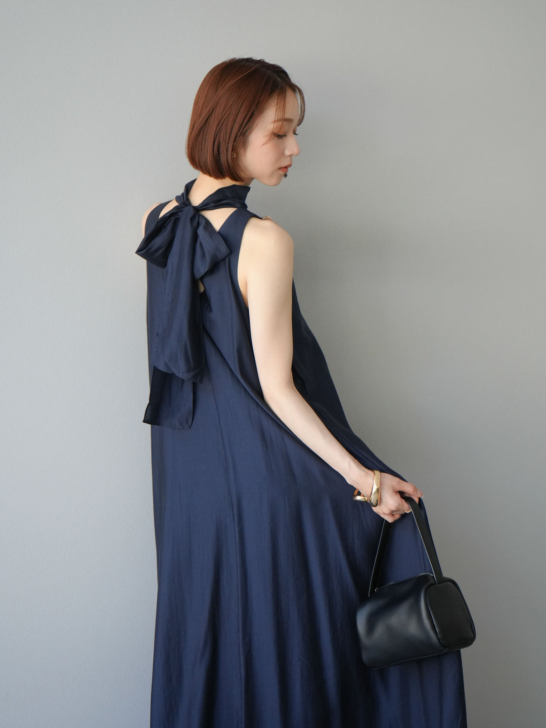 [予約]シアーホルターバックオープンワンピース/ネイビー