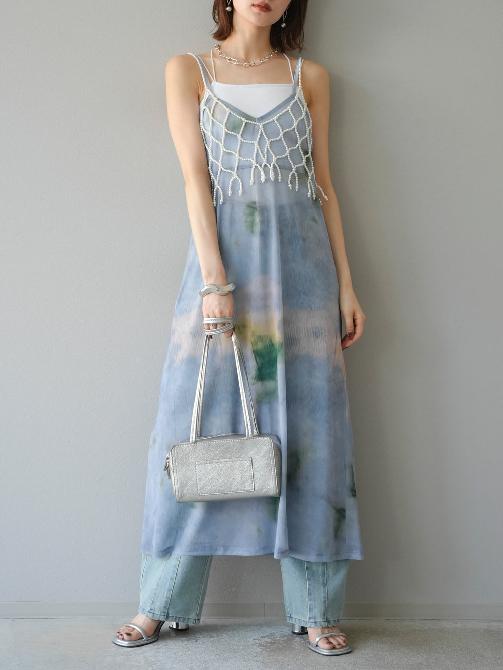[予約タイダイ柄シアーキャミワンピース/サックス