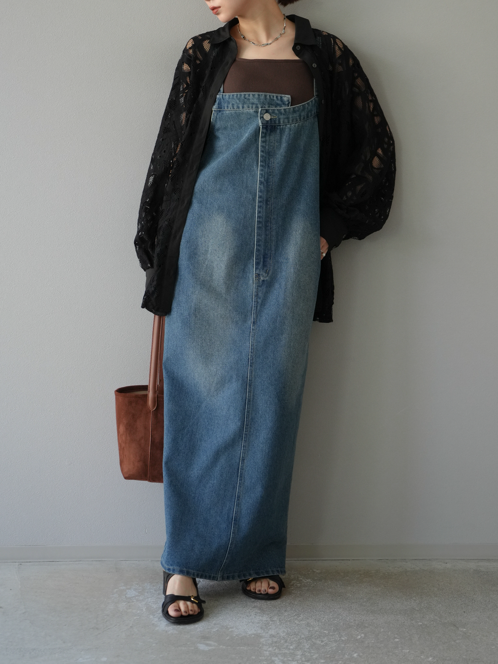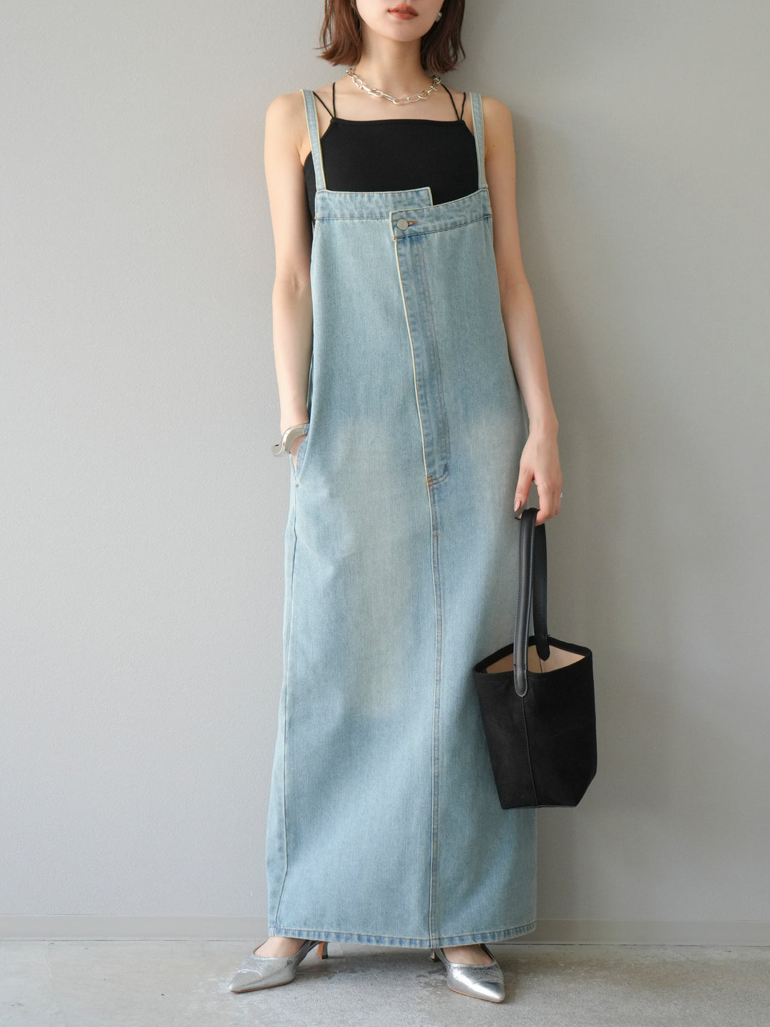 [予約]デニムオーバーハイウエストサロペット/ブルー