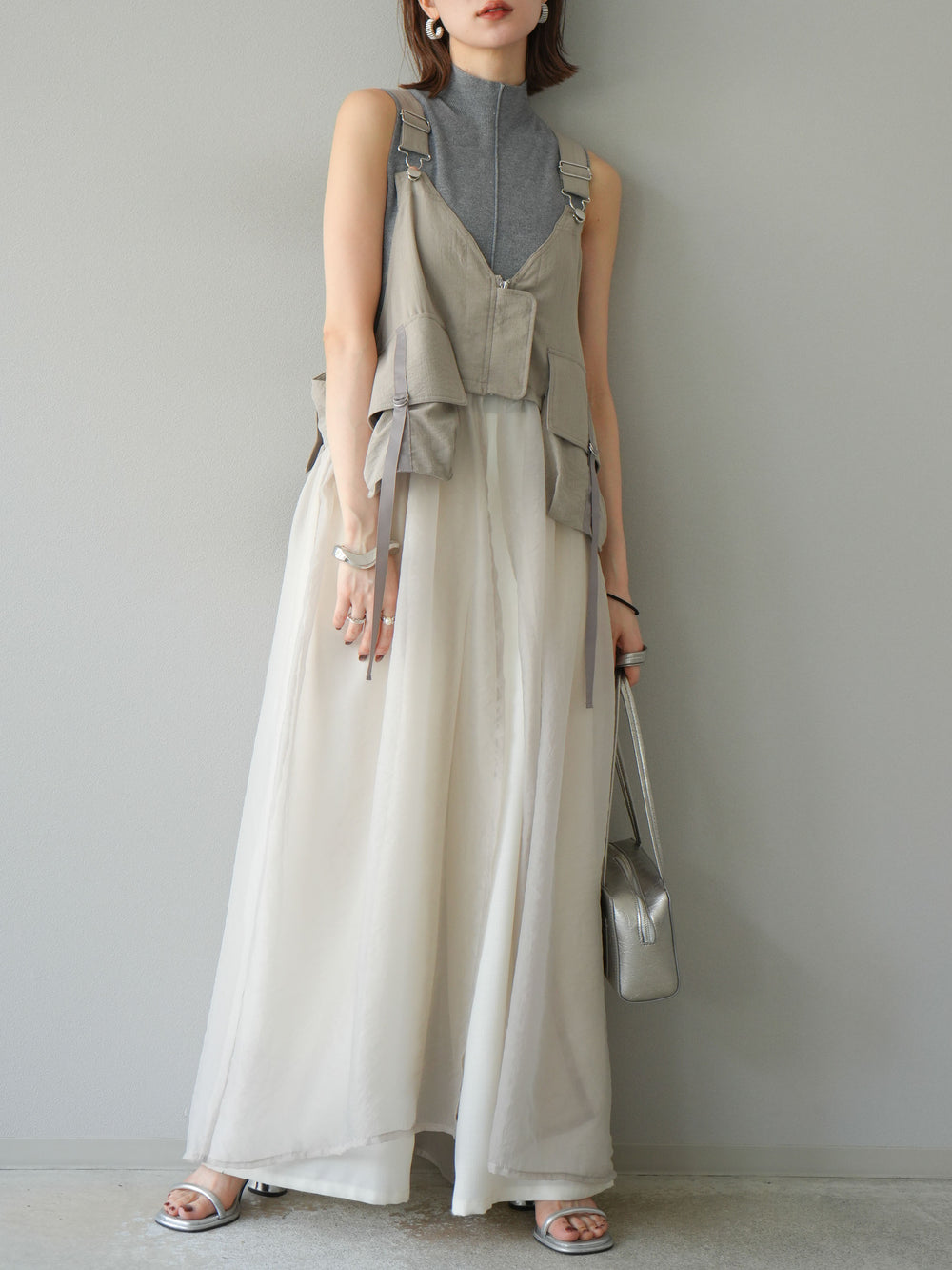 [予約]タクティカルベストオーガンザワンピース/グレージュ