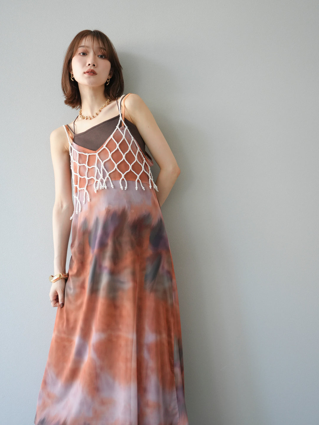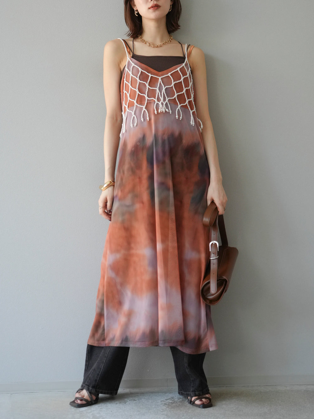 [予約タイダイ柄シアーキャミワンピース/オレンジ
