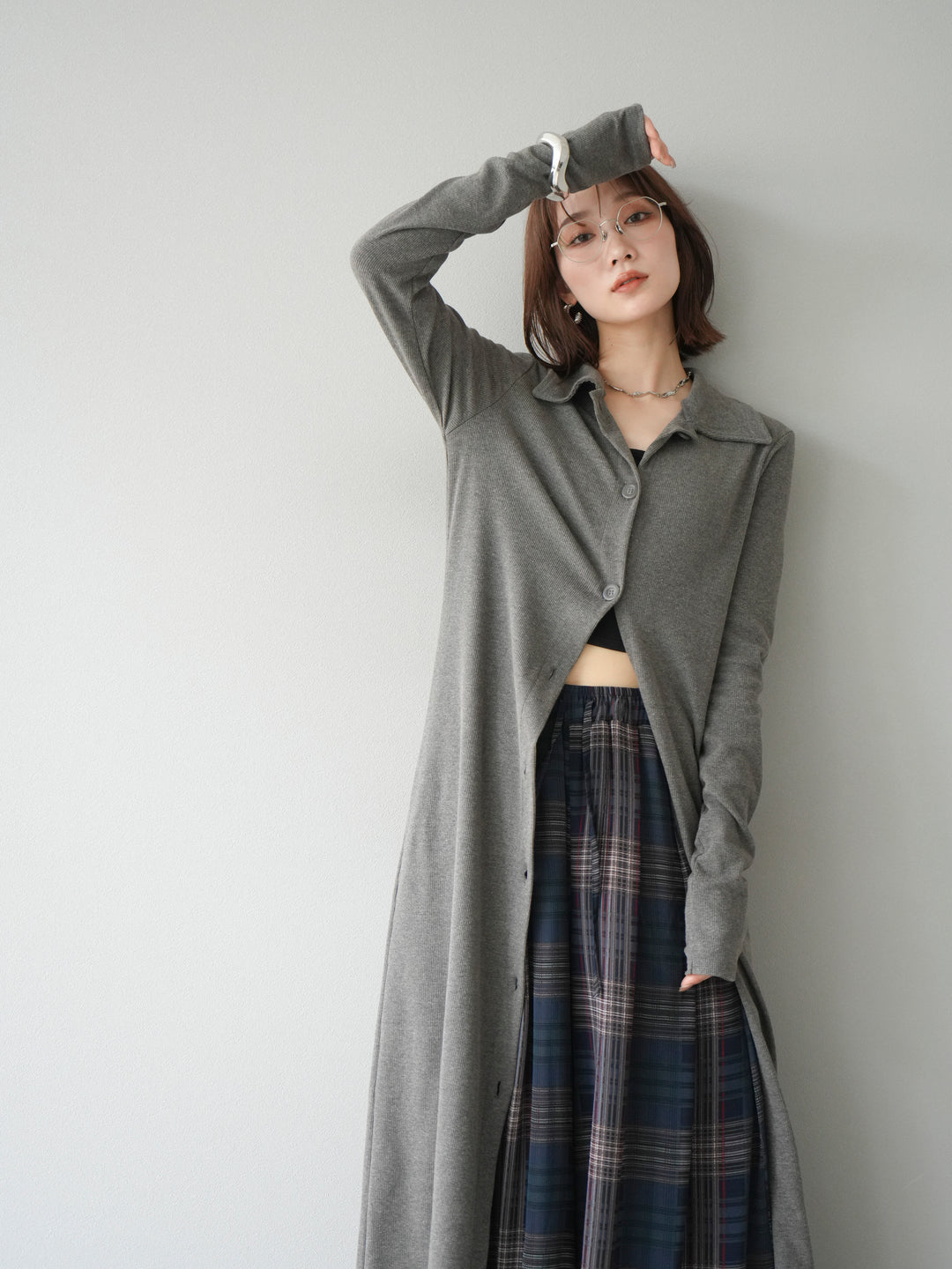 [予約]襟付きカットリブボタンワンピース/チャコール