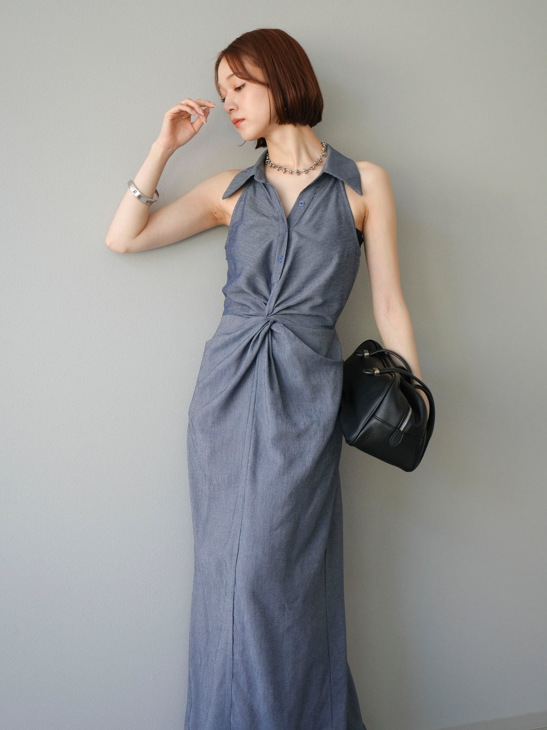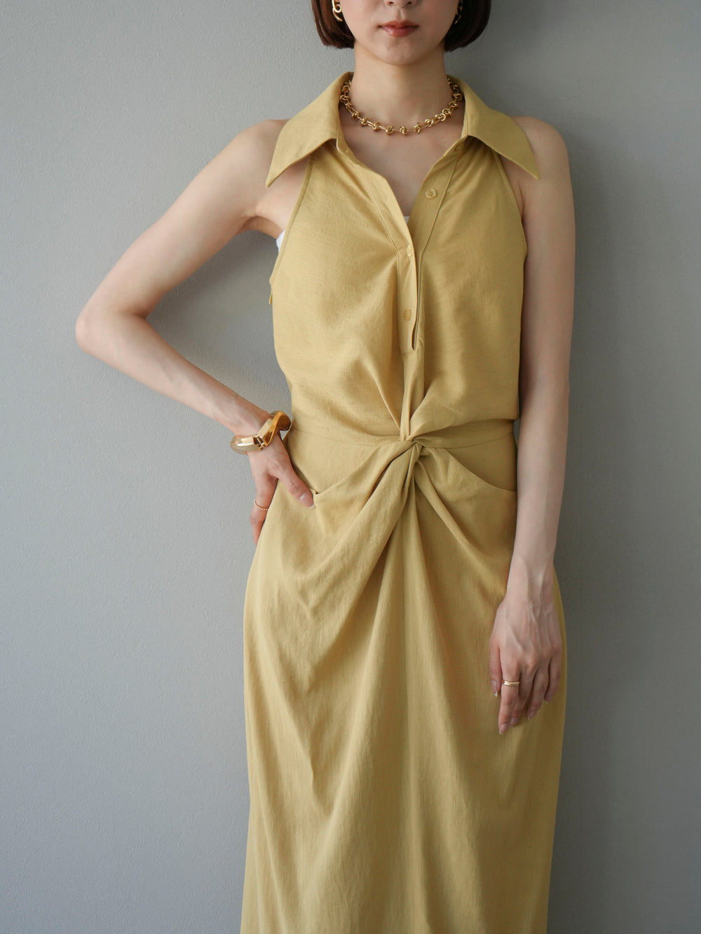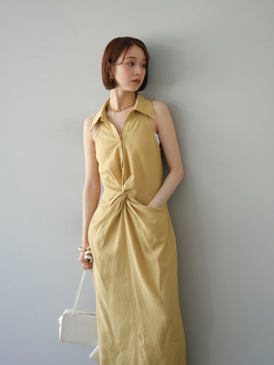 [予約]ツイストリネンタッチワンピース/ネイビー