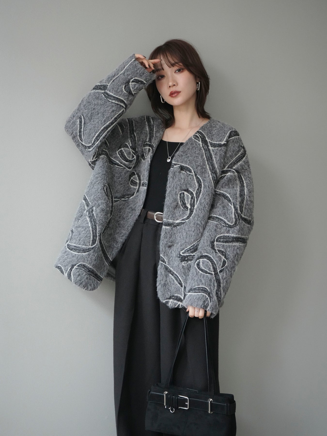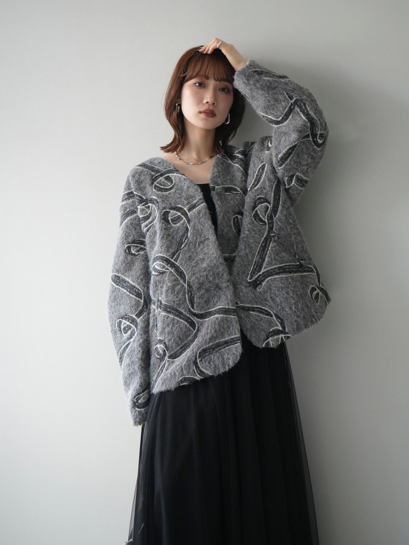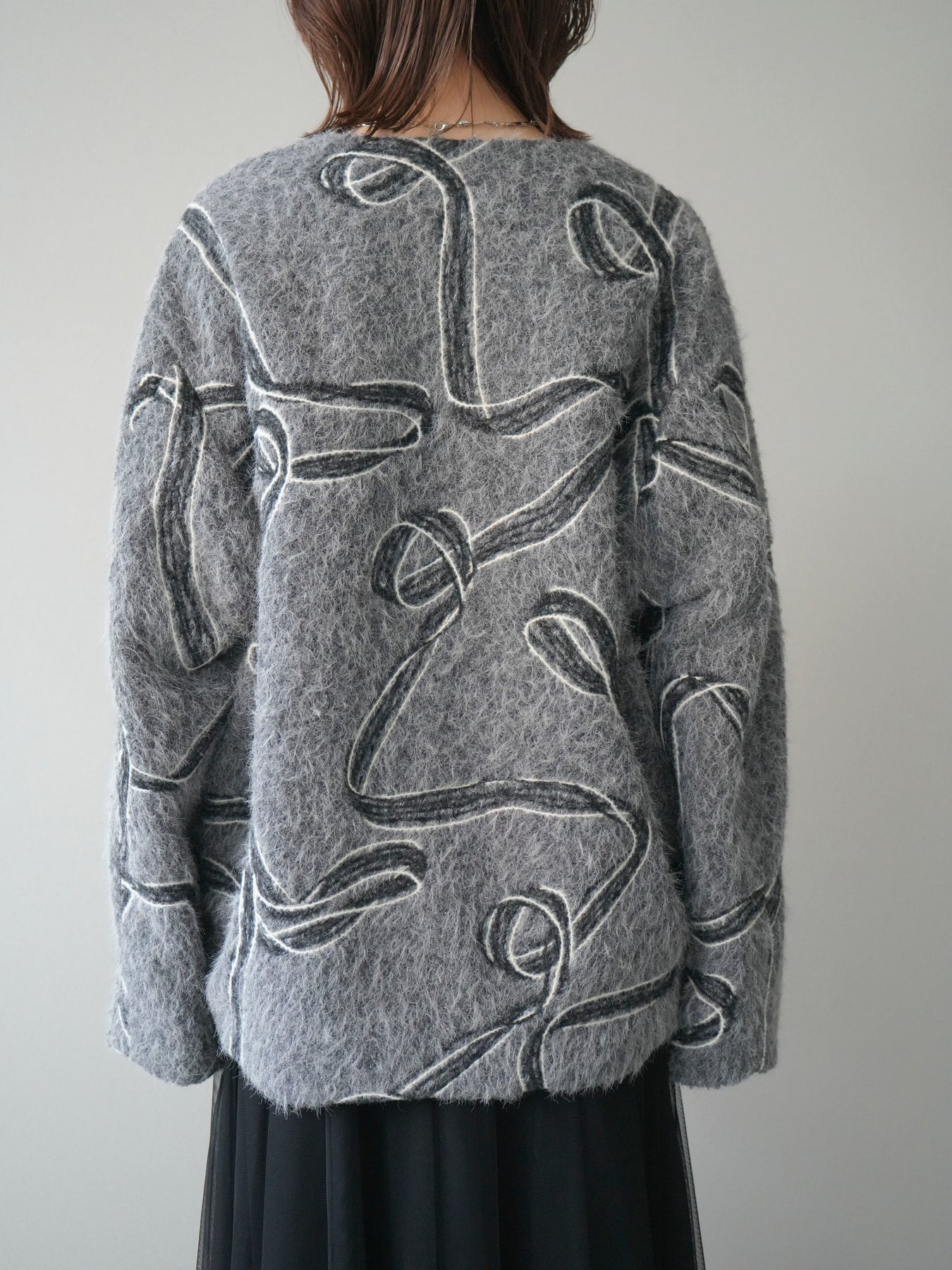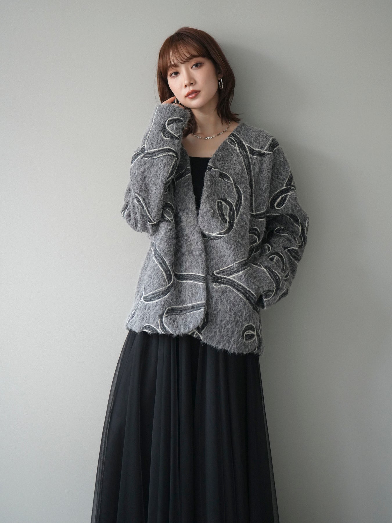 [予約]ニュアンス刺繍ブークレニットジャケット/gray