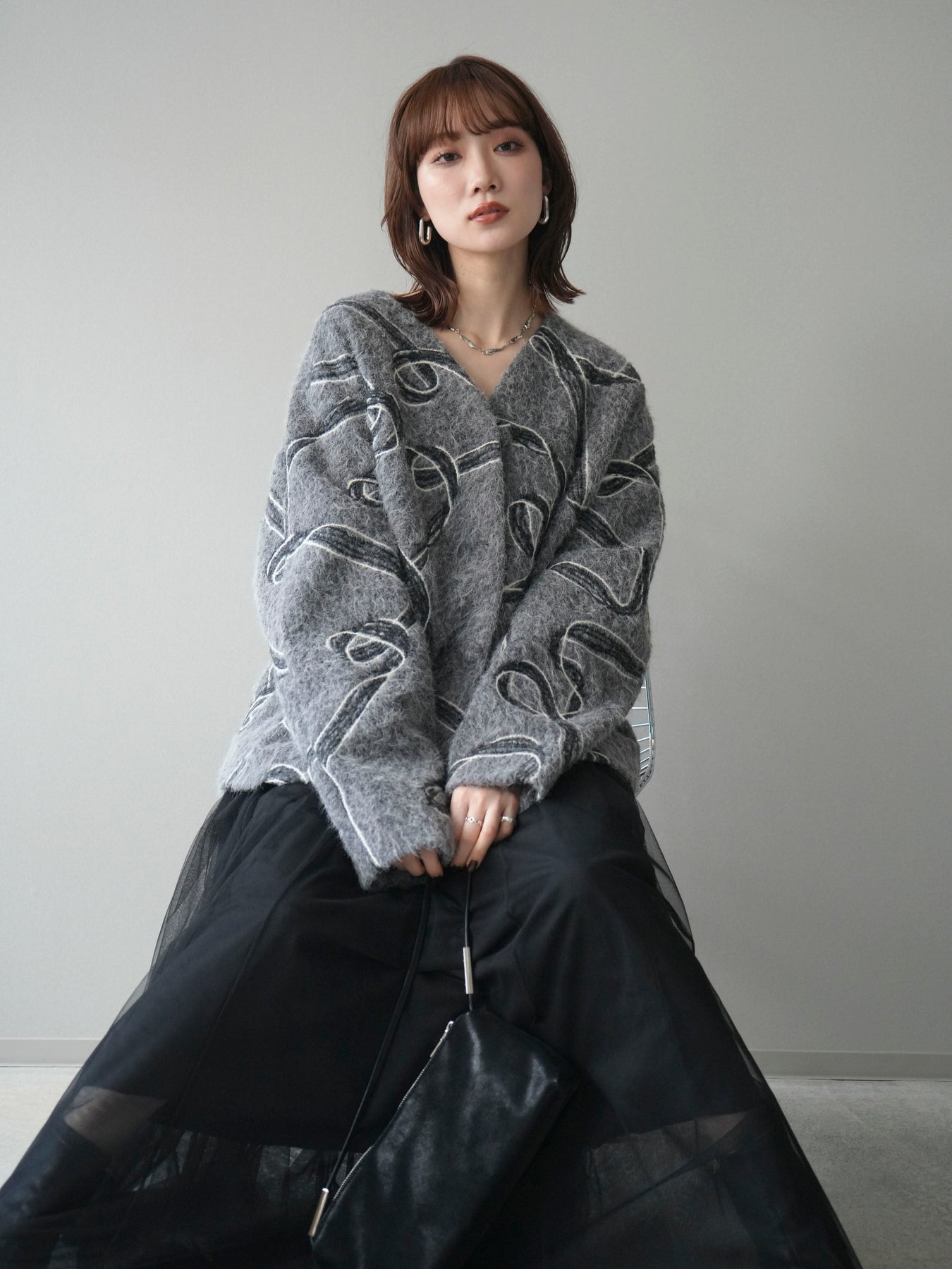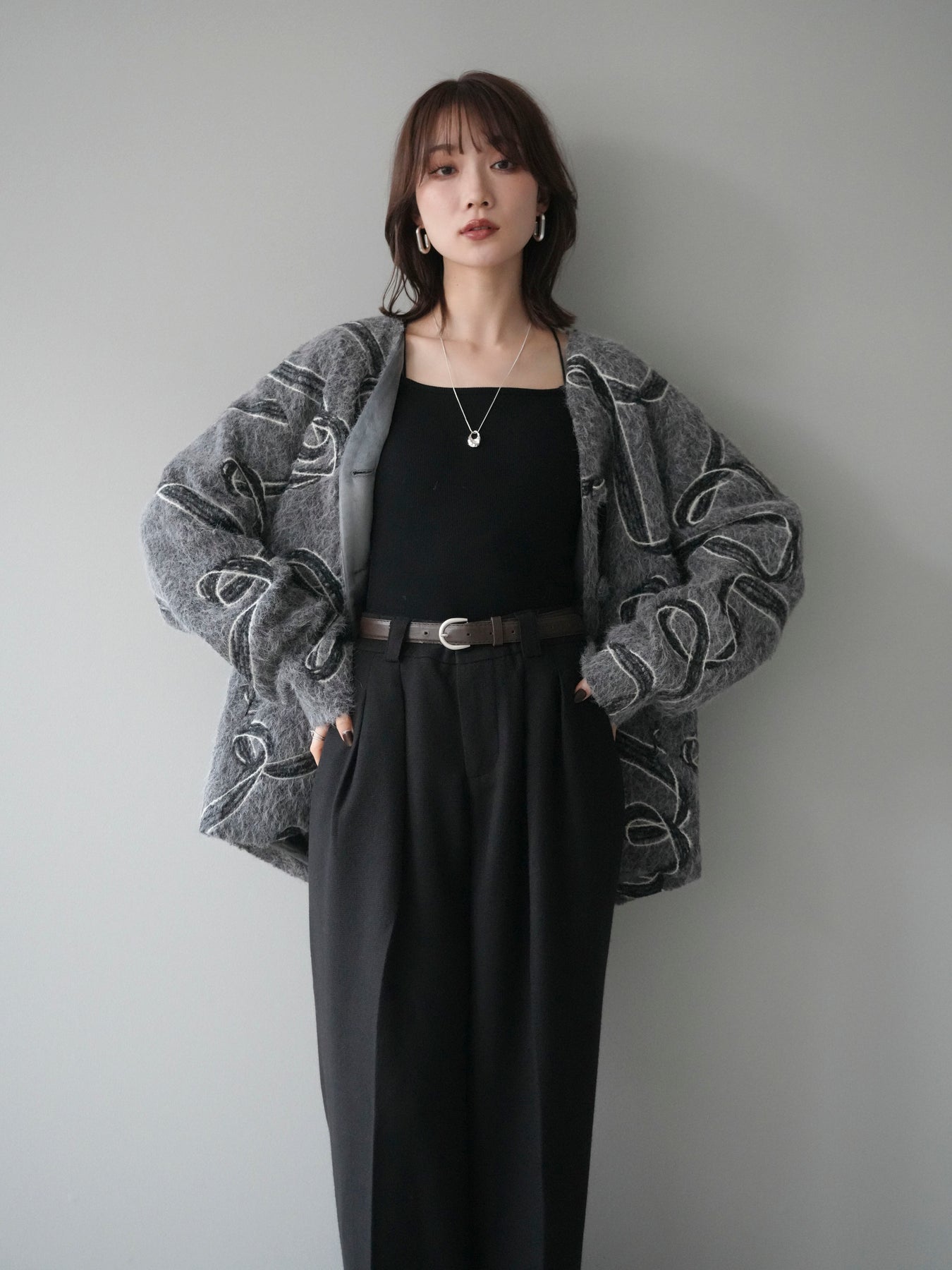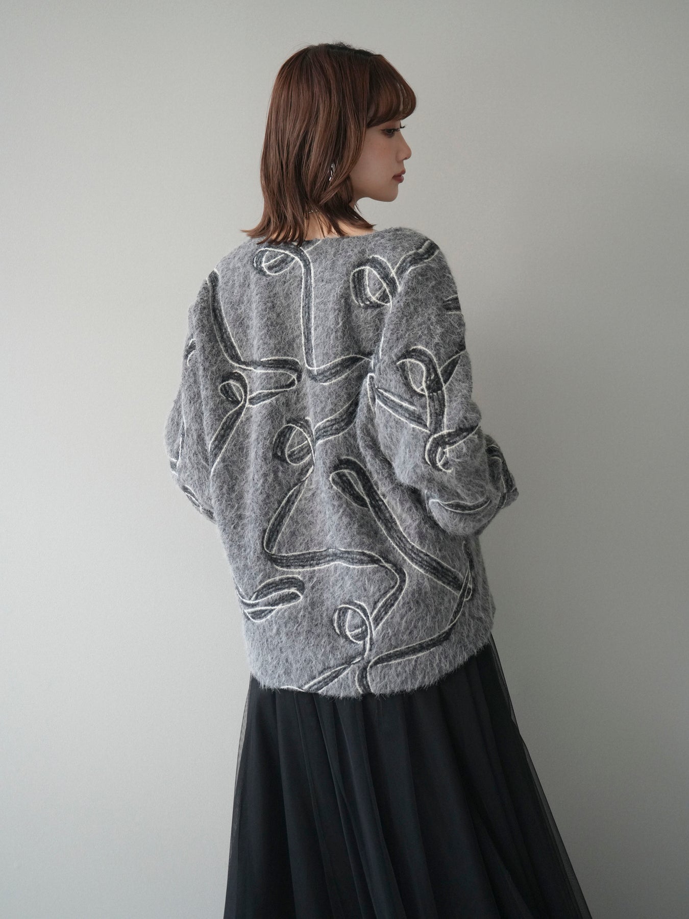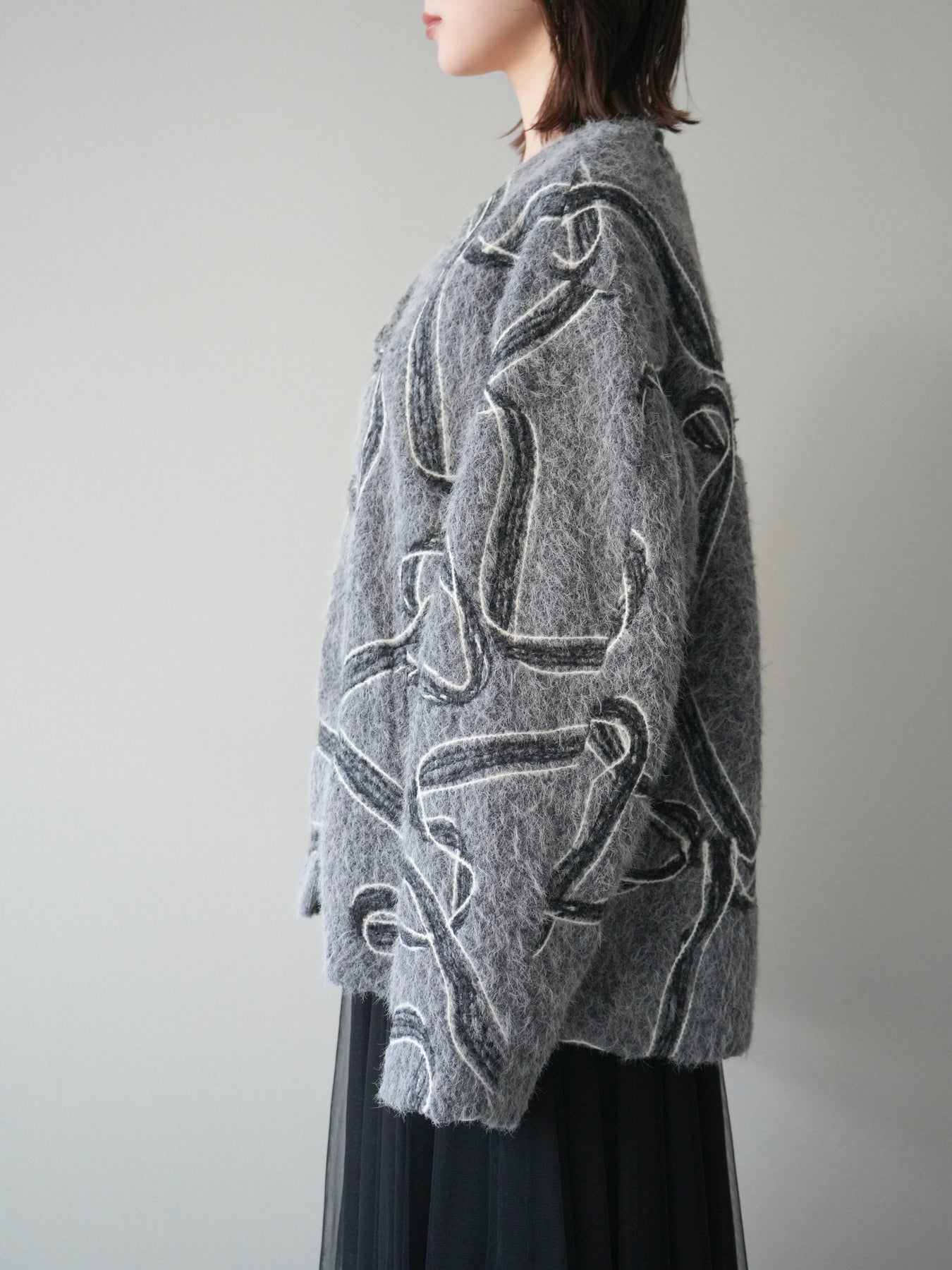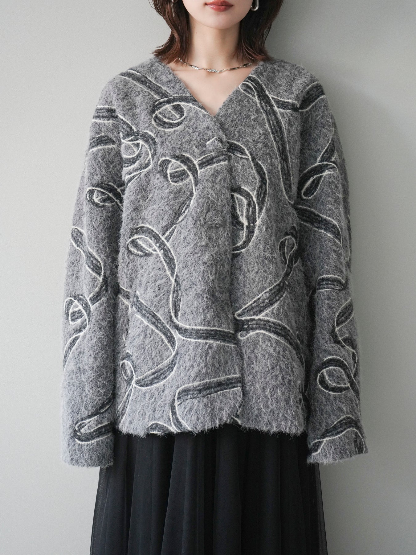 [予約]ニュアンス刺繍ブークレニットジャケット/gray