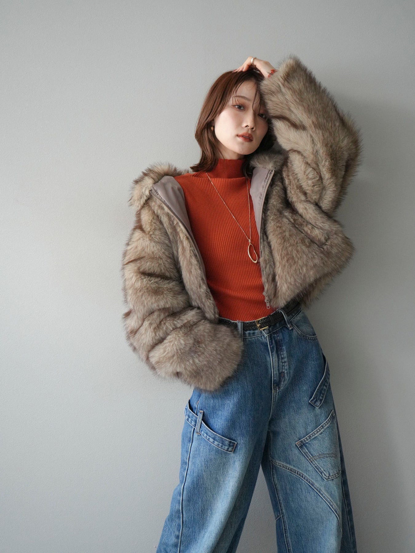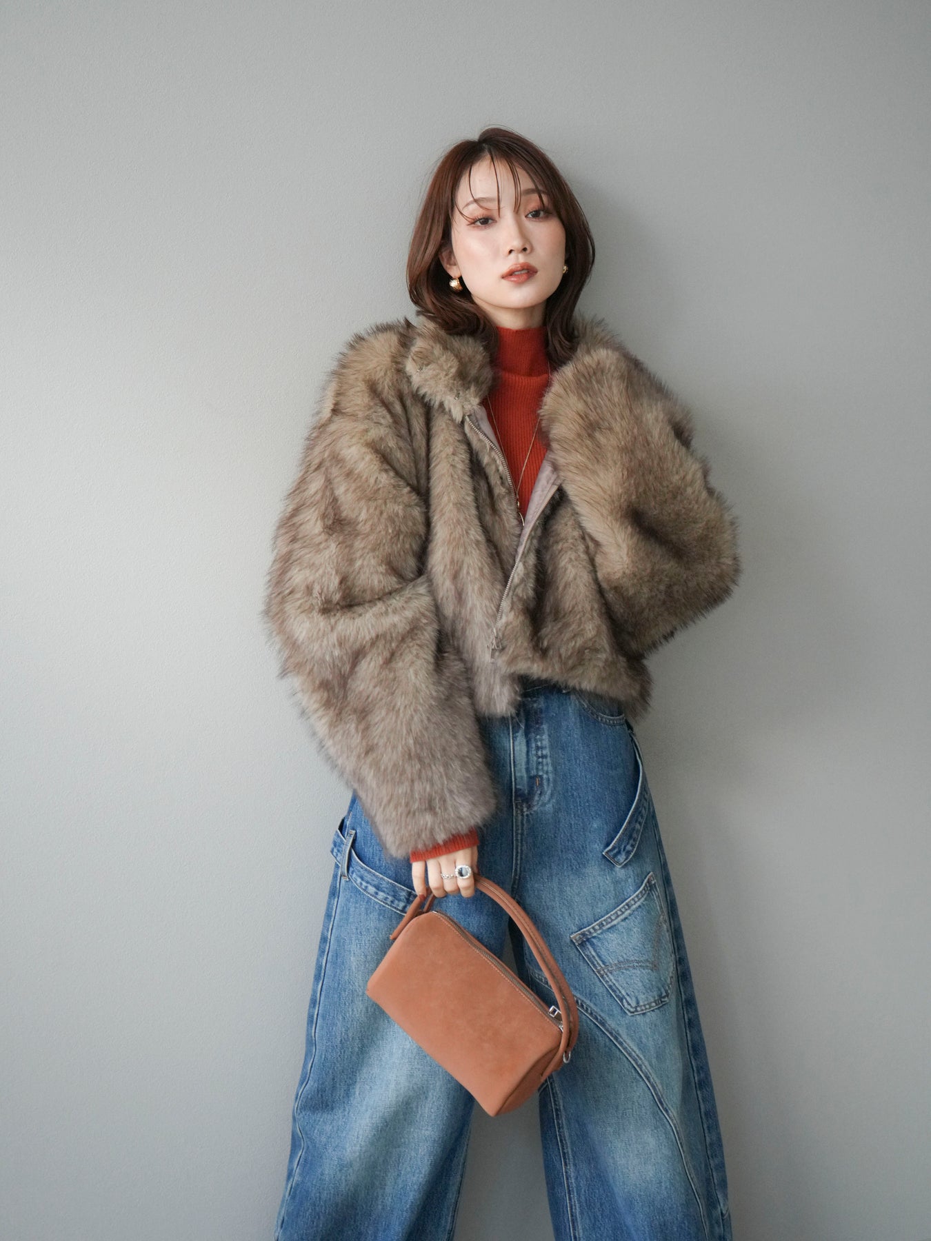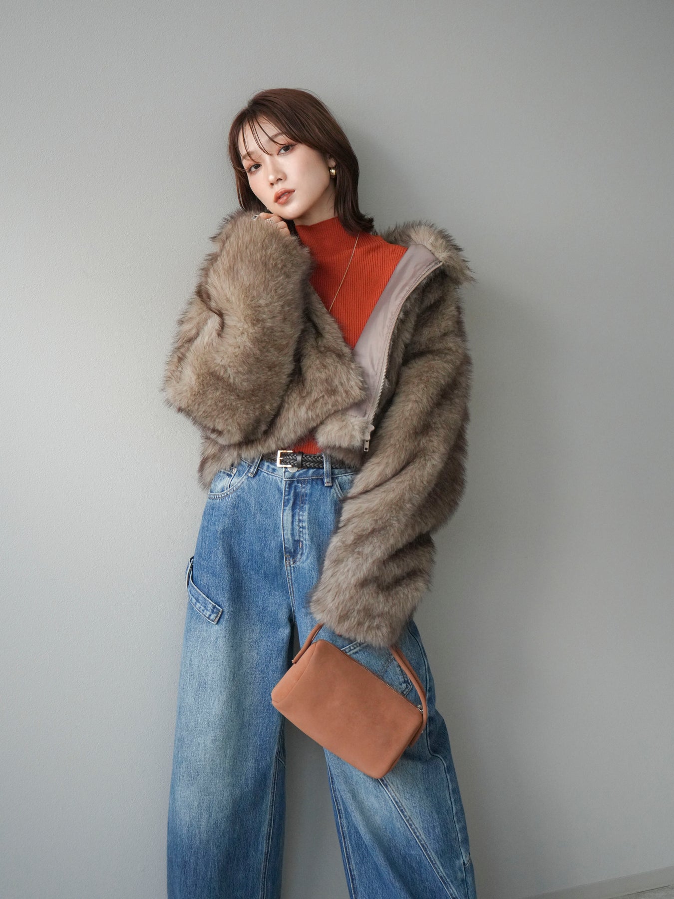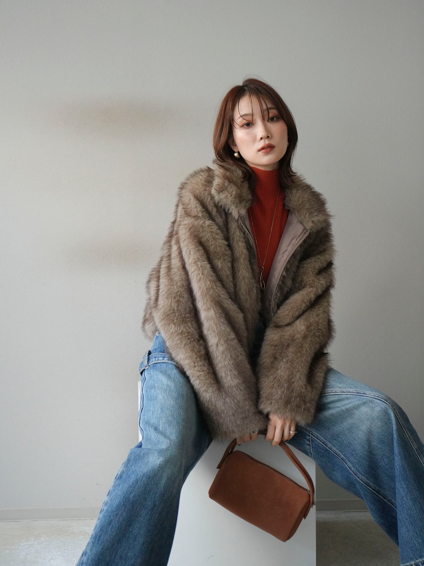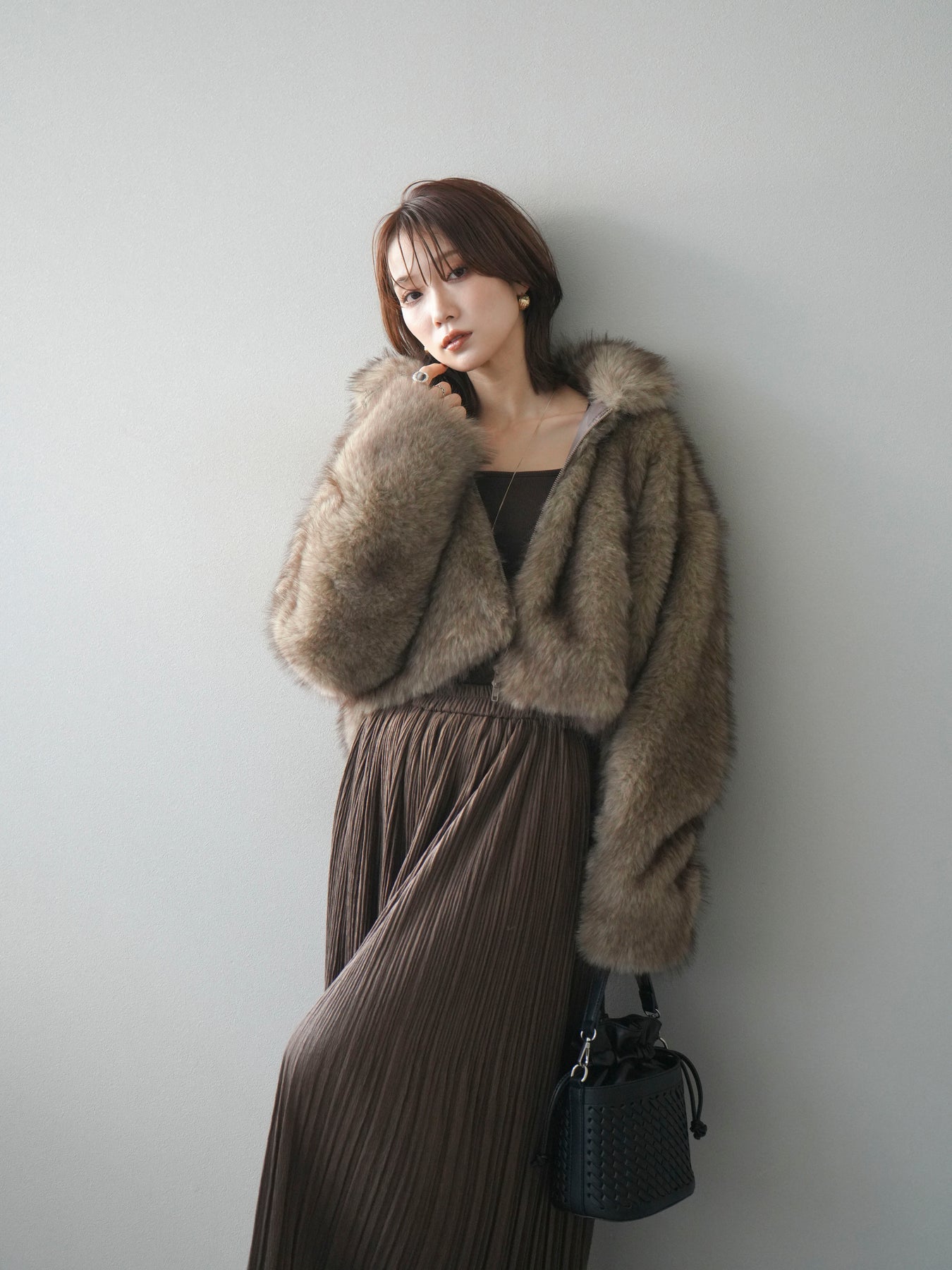 毛足の長いフェイクファーが贅沢な印象を与えるショートZIPジャケット。 ふんわりとした質感でボリューム感がありながらも、軽やかな着心地が魅力です。 コンパクトな丈感がバランスよく、ワンピースやワイドパンツなどとの相性も抜群。 フロントジップ仕様で着脱しやすく、開けて羽織るとこなれたスタイリングに仕上がります。 デイリーから特別なシーンまで、冬のコーディネートを華やかに彩る1着です。 ※ボトムス、キャミソール(インナー)以外の商品は一律でインナーは付属していません。