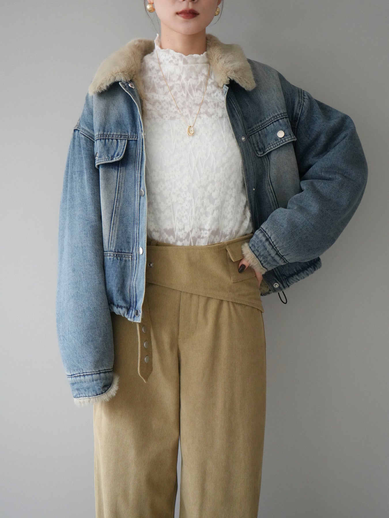 [予約]デニム×ファーステンカラーショートジャケット/lightblue