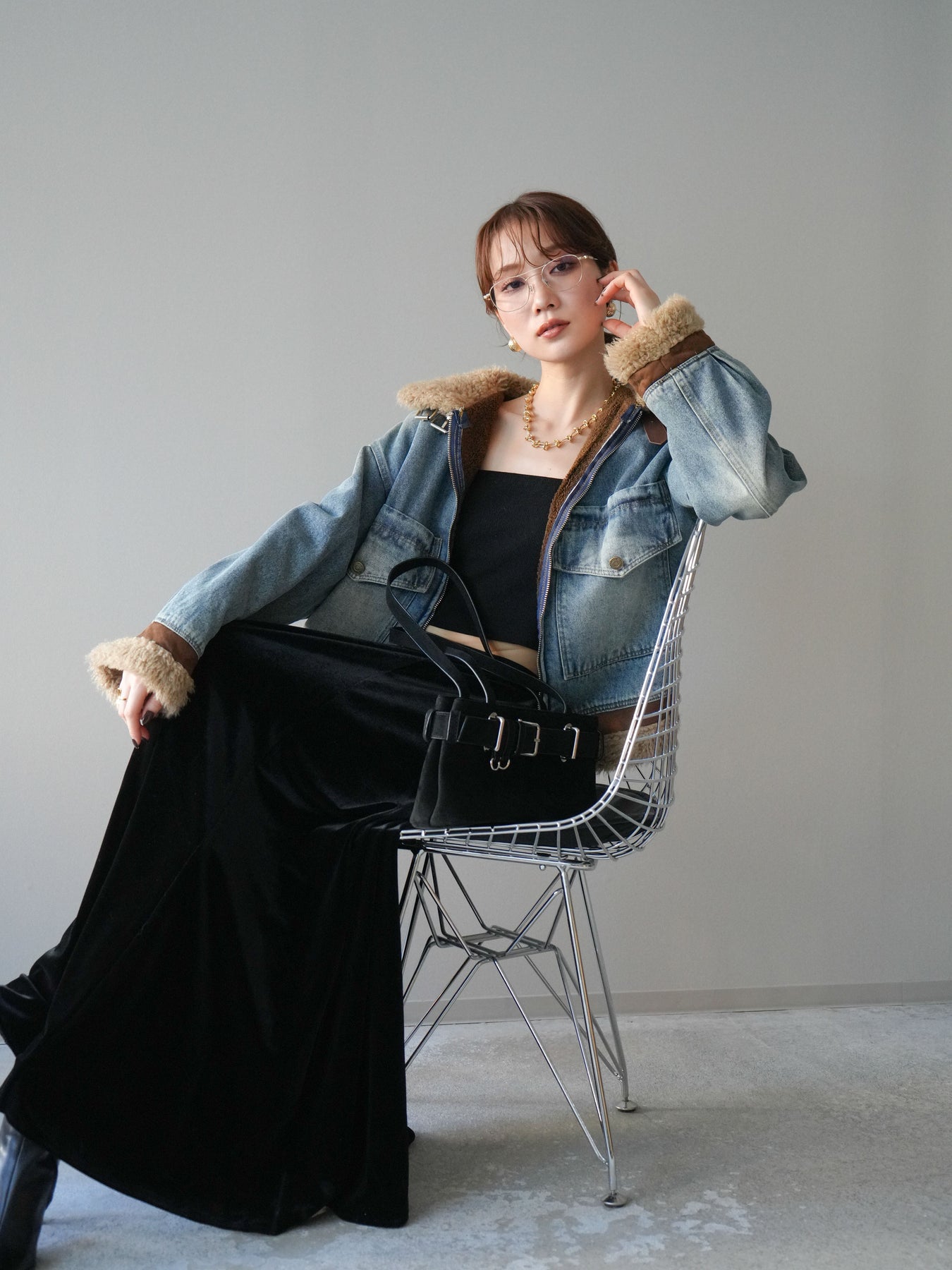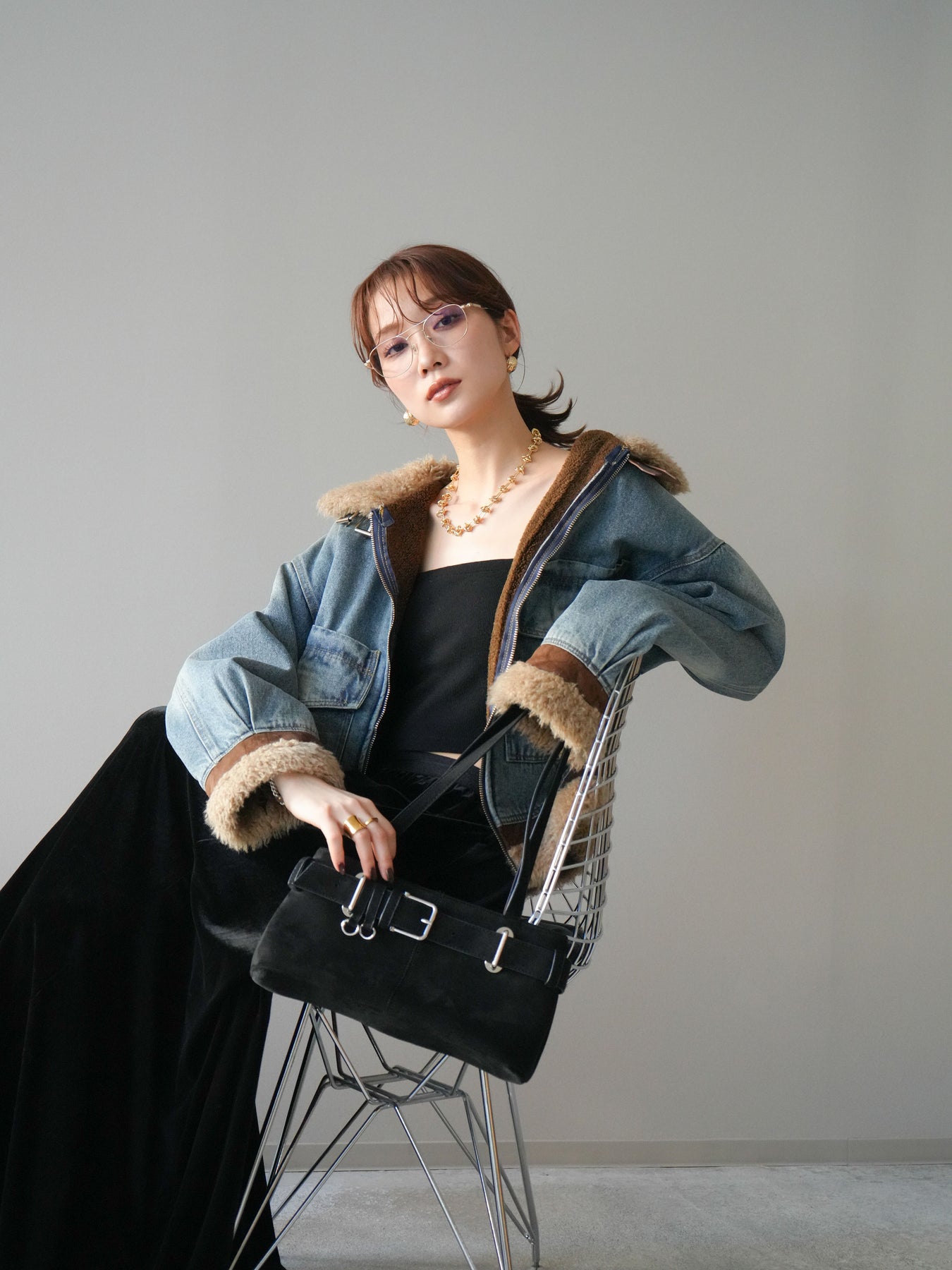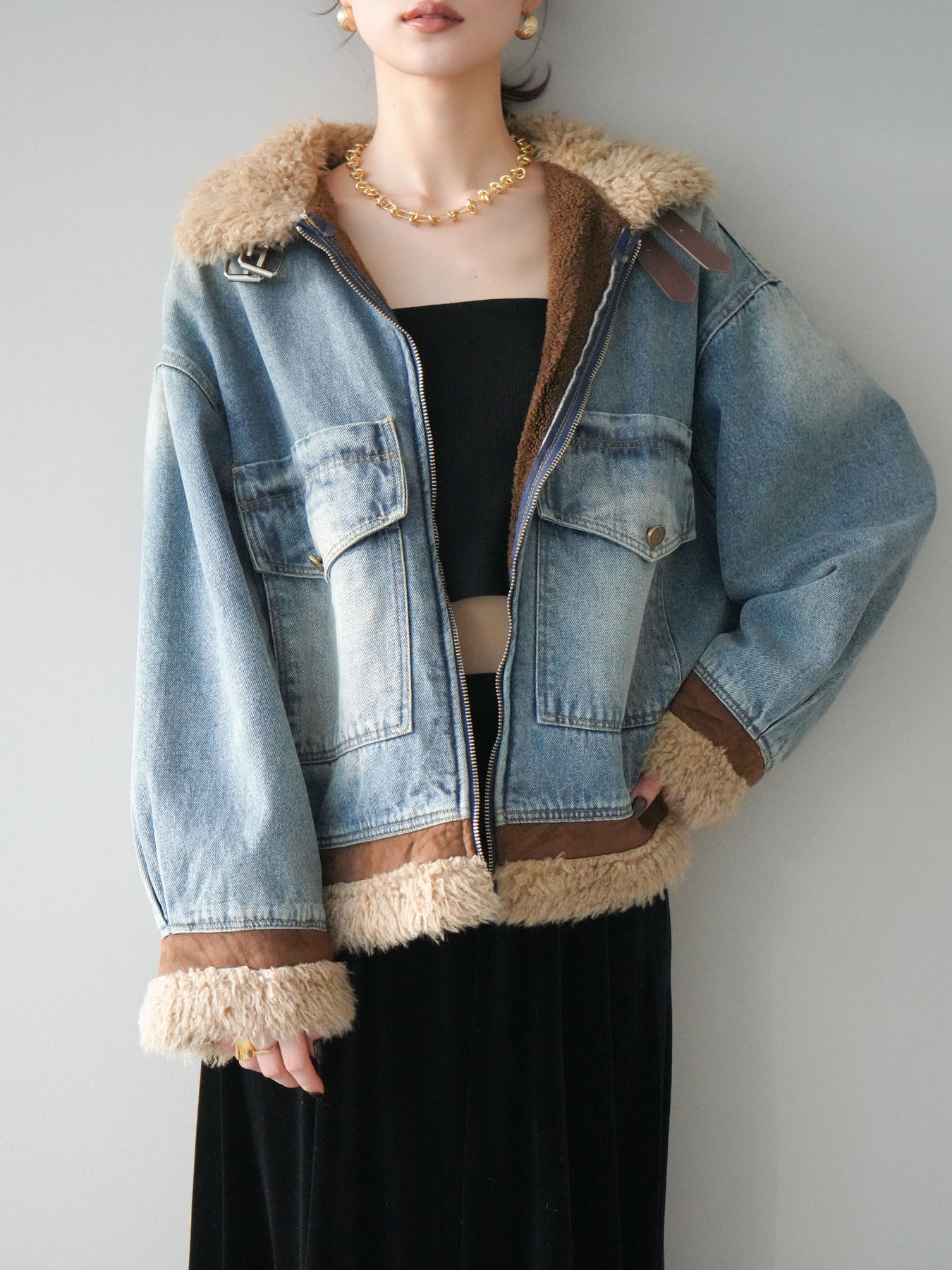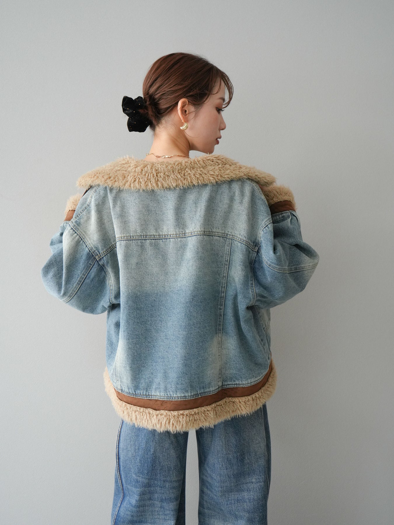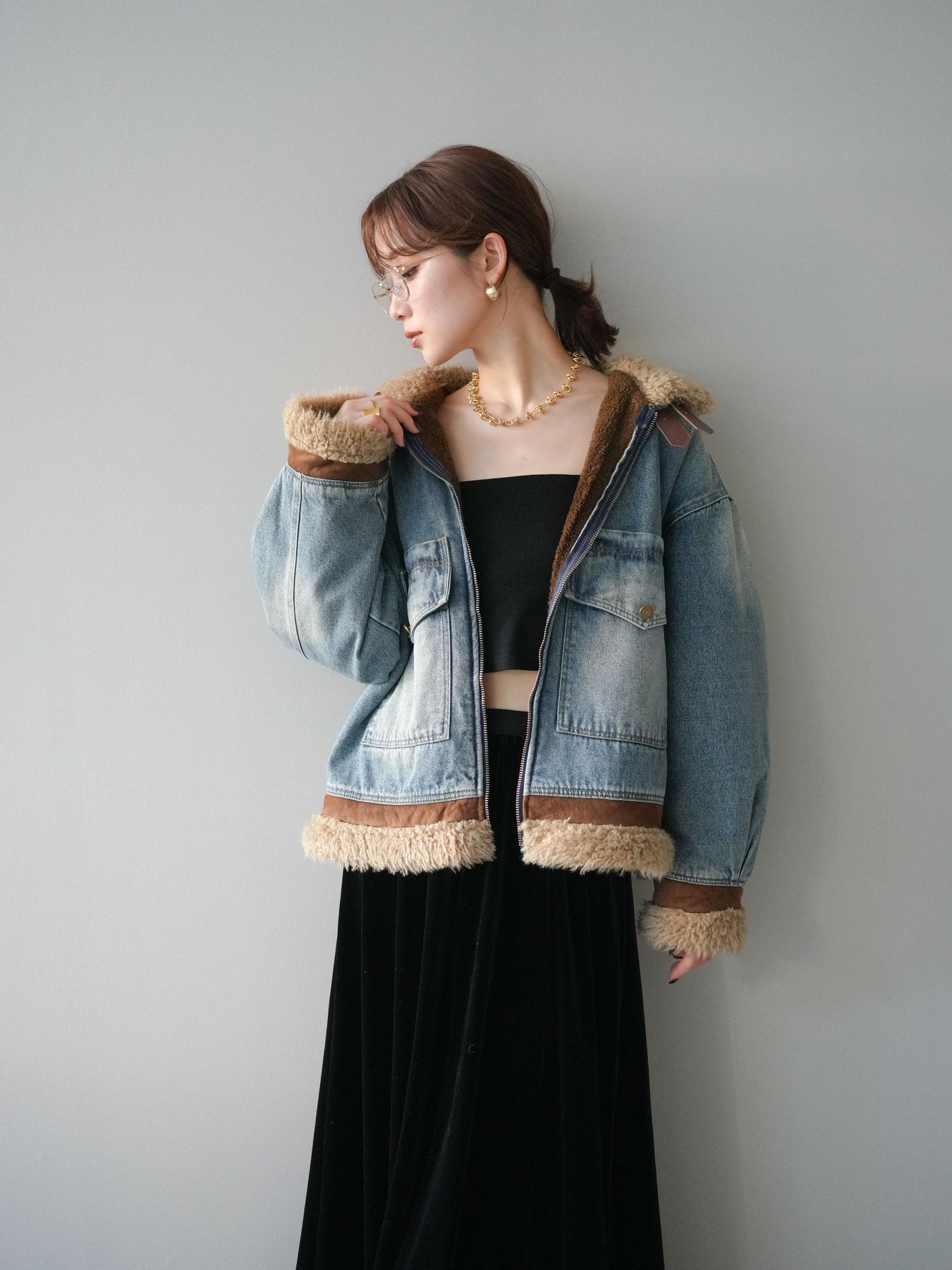ボアファーとデニムを組み合わせた異素材ミックスが魅力のスタンドカラージャケット。 ヴィンテージライクな色落ちデニムに、ふんわりとしたファーがシーズンムードを高めます。 程よくゆとりのあるシルエットで、インナーを重ねてももたつかず快適な着心地。 首元まで暖かいスタンドカラー仕様で、デザイン性と防寒性を兼ね備えています。 カジュアルからフェミニンまで、どんなコーデにもマッチする万能アウターです。 ※ボトムス、キャミソール(インナー)以外の商品は一律でインナーは付属していません。