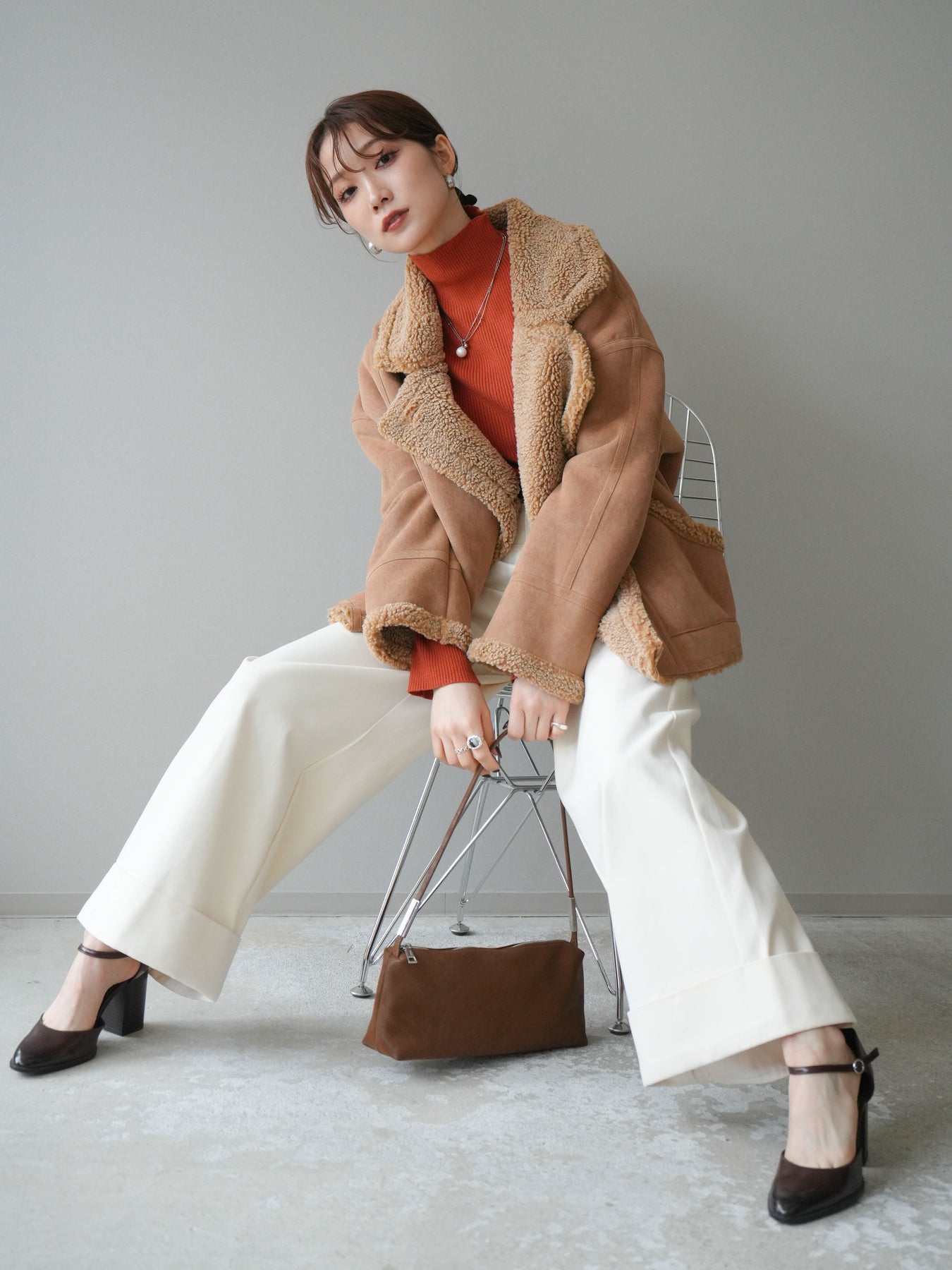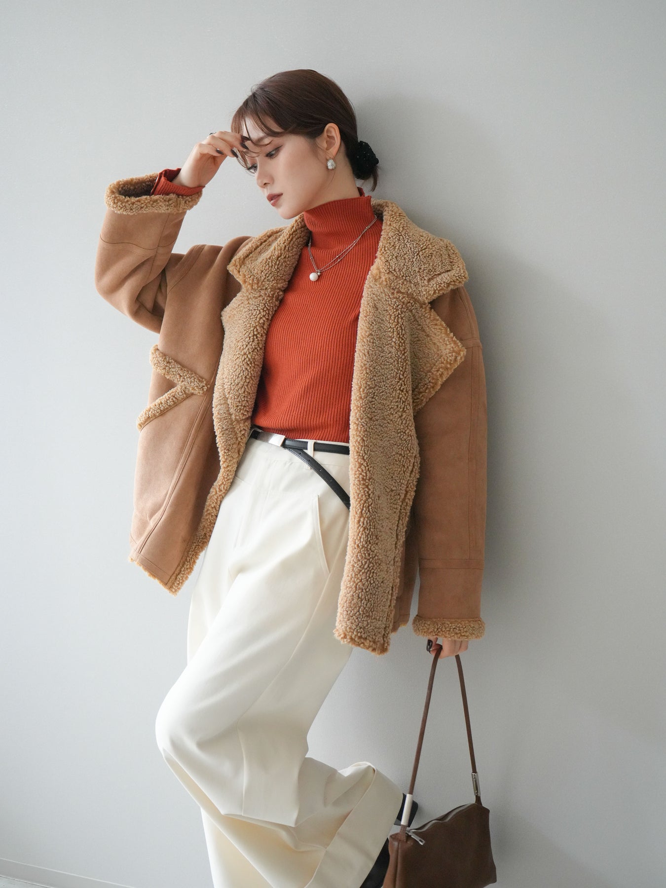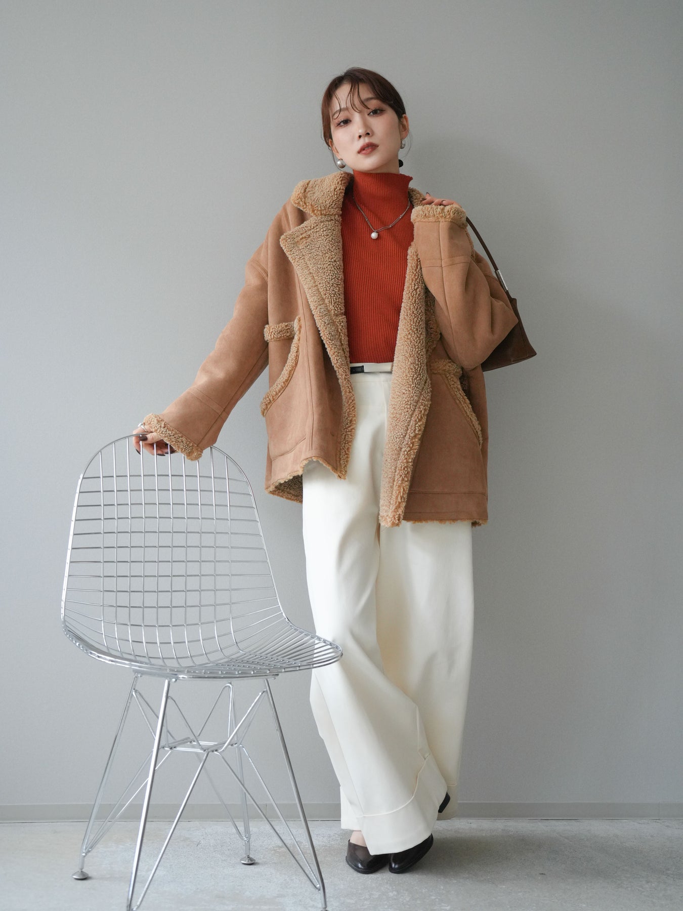 ふんわりとしたボアとスエード調素材の異素材コンビが魅力のムートンジャケット。 程よい厚みと軽さを両立した素材感で、暖かく快適な着心地を叶えます。 オーバーシルエットながらも計算されたラインで、羽織るだけでこなれた印象に。 カジュアルにもきれいめにも合わせやすく、シーズンムードを高める主役アウターです。 ディテールまでこだわったデザインで、デイリーからお出かけまで幅広く活躍します。 ※ボトムス、キャミソール(インナー)以外の商品は一律でインナーは付属していません。