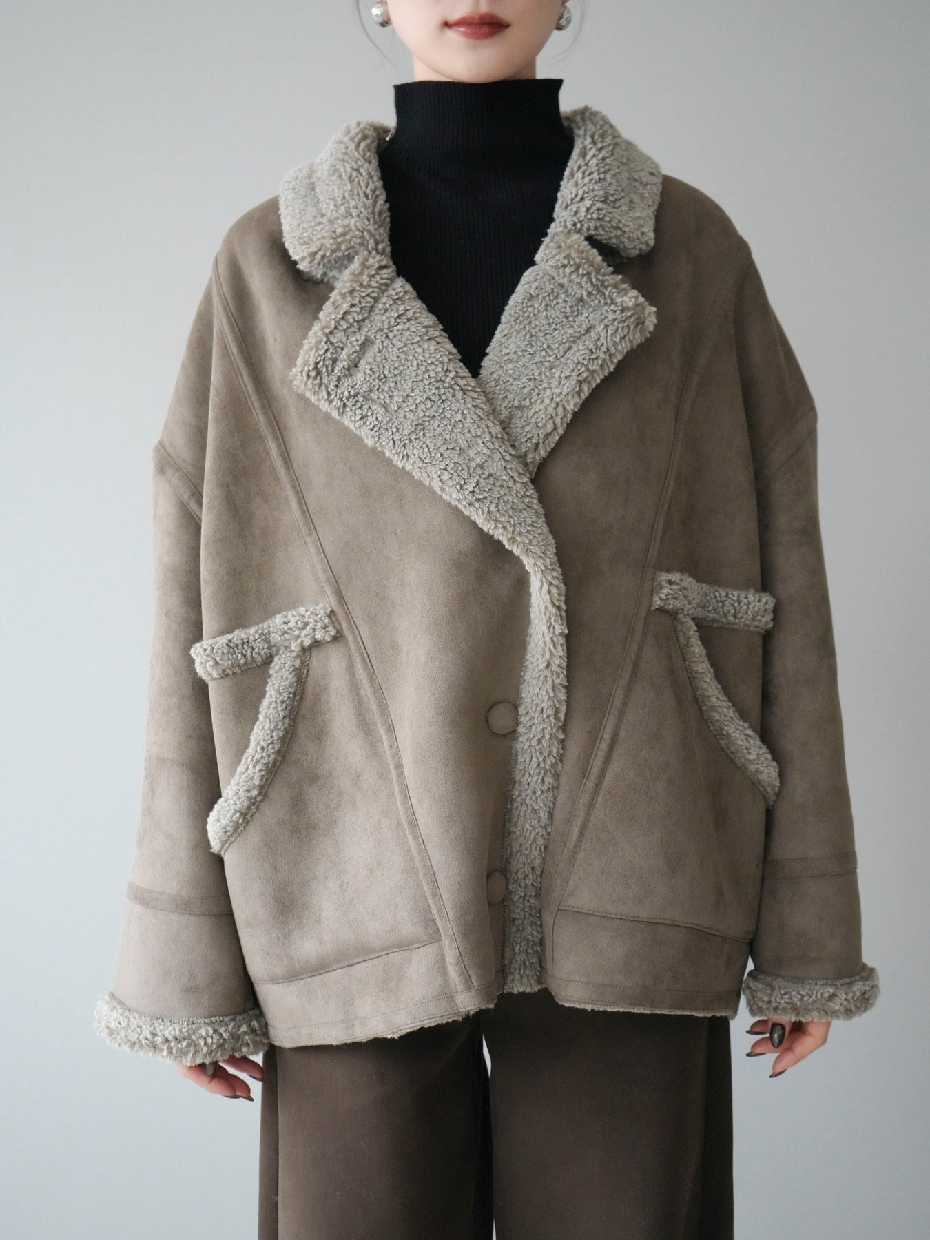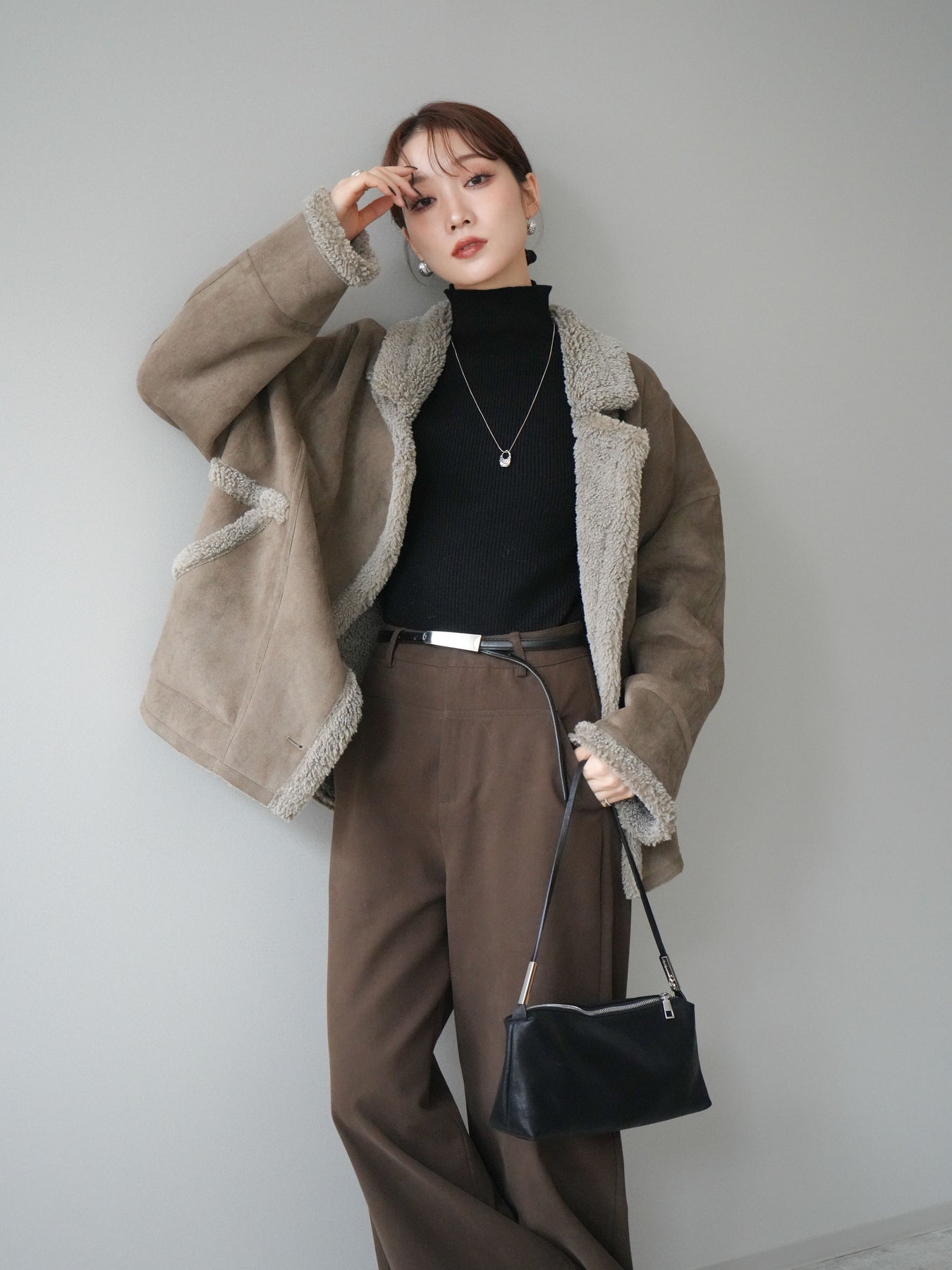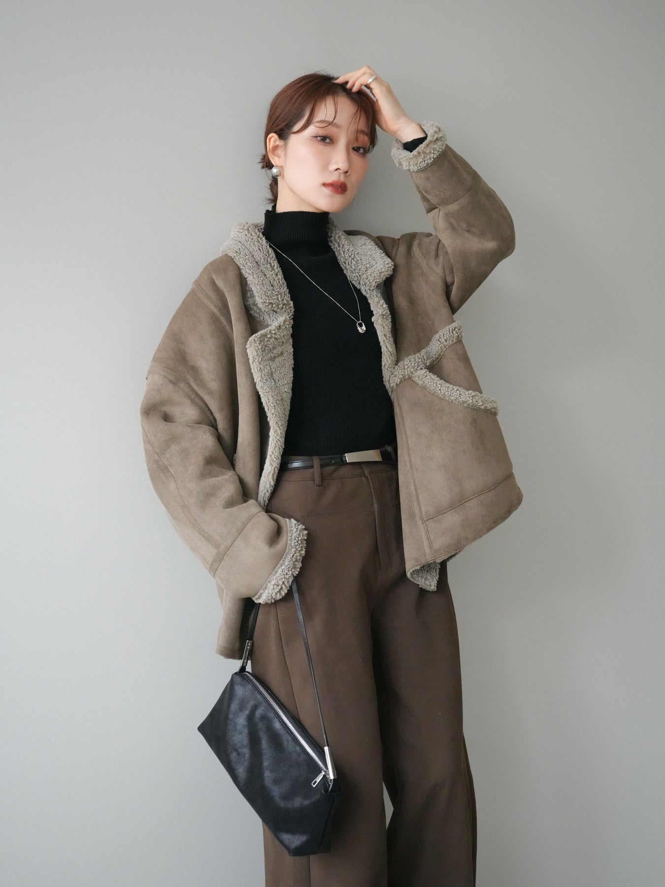 ふんわりとしたボアとスエード調素材の異素材コンビが魅力のムートンジャケット。 程よい厚みと軽さを両立した素材感で、暖かく快適な着心地を叶えます。 オーバーシルエットながらも計算されたラインで、羽織るだけでこなれた印象に。 カジュアルにもきれいめにも合わせやすく、シーズンムードを高める主役アウターです。 ディテールまでこだわったデザインで、デイリーからお出かけまで幅広く活躍します。 ※ボトムス、キャミソール(インナー)以外の商品は一律でインナーは付属していません。