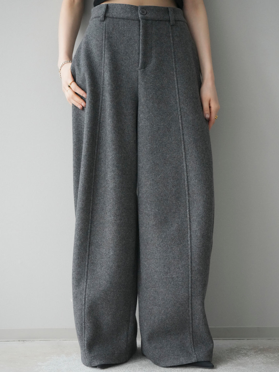[予約]ベルトデザインループウールワイドパンツ(ベルト付)/gray