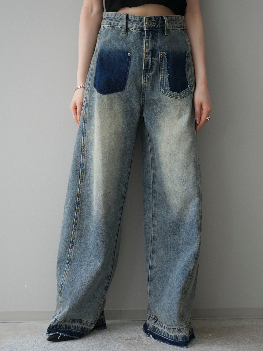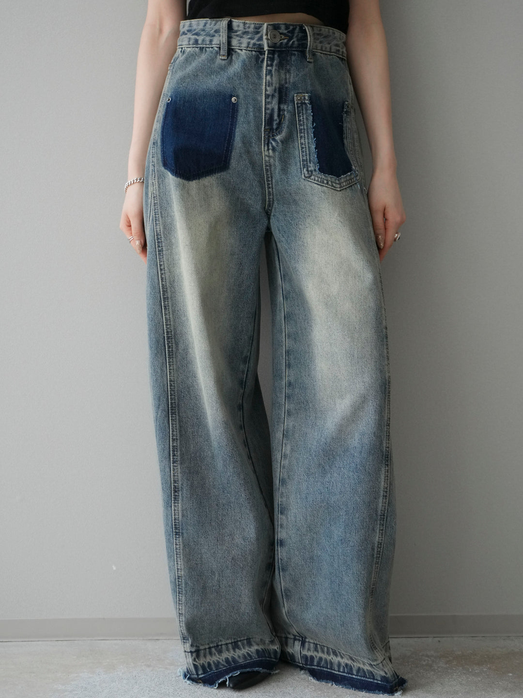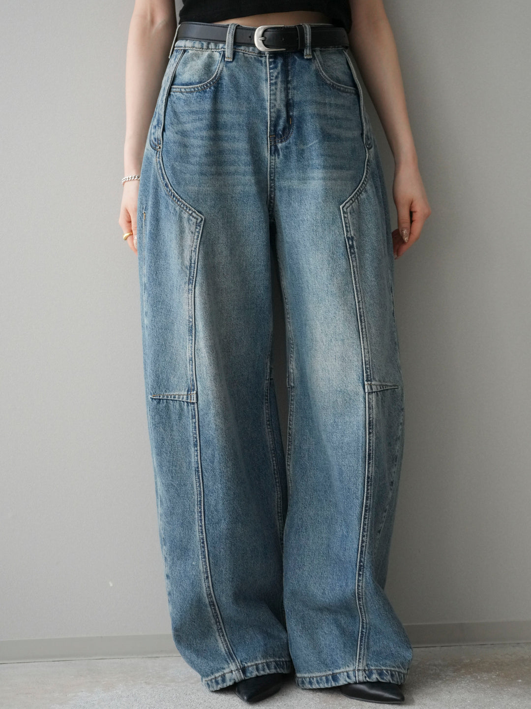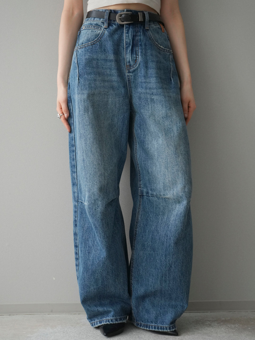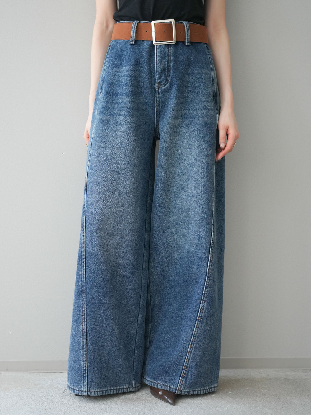 [予約]ベルト付3Dカーブワイドデニムパンツ/blue