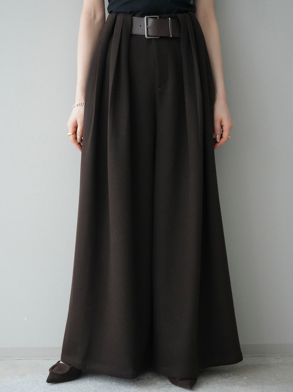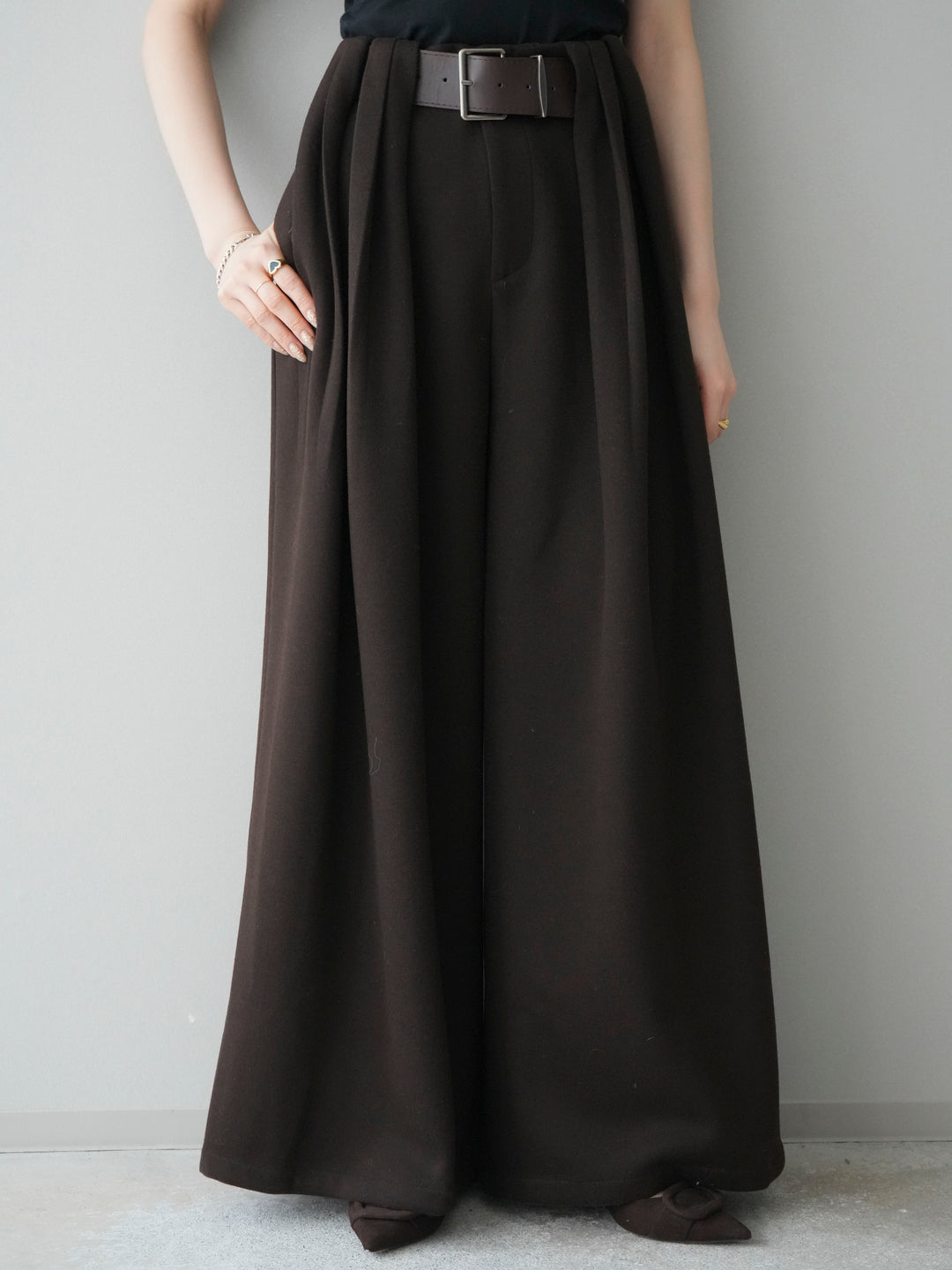 [予約]ベルト付きフロントタックワイドパンツ/brown