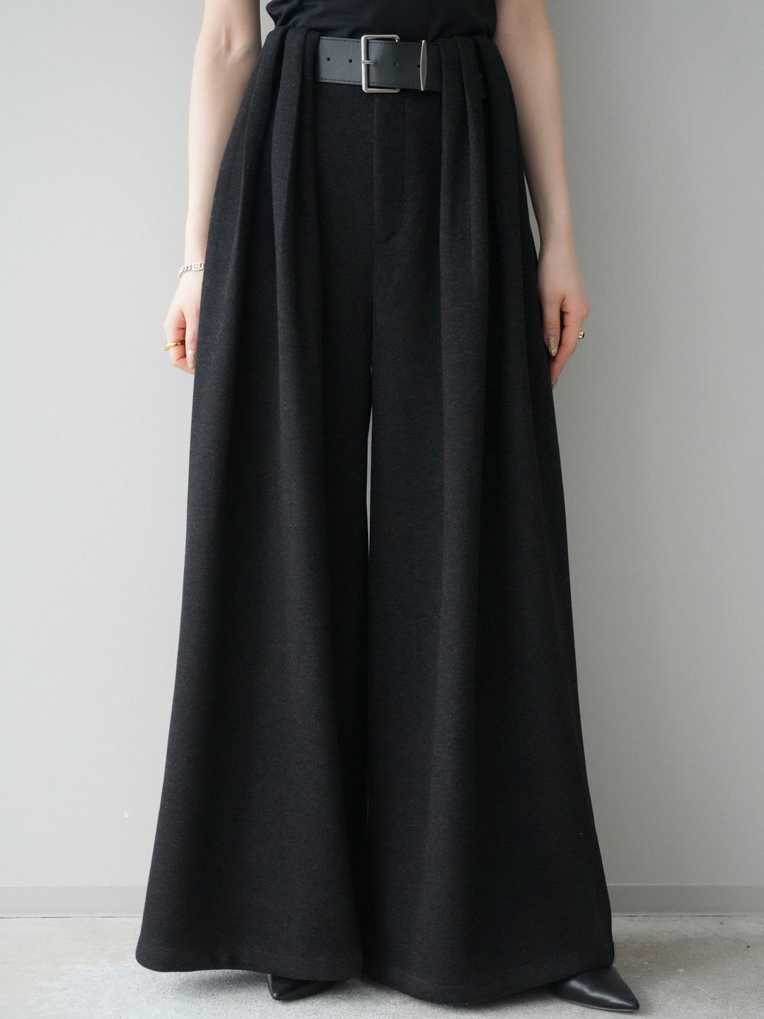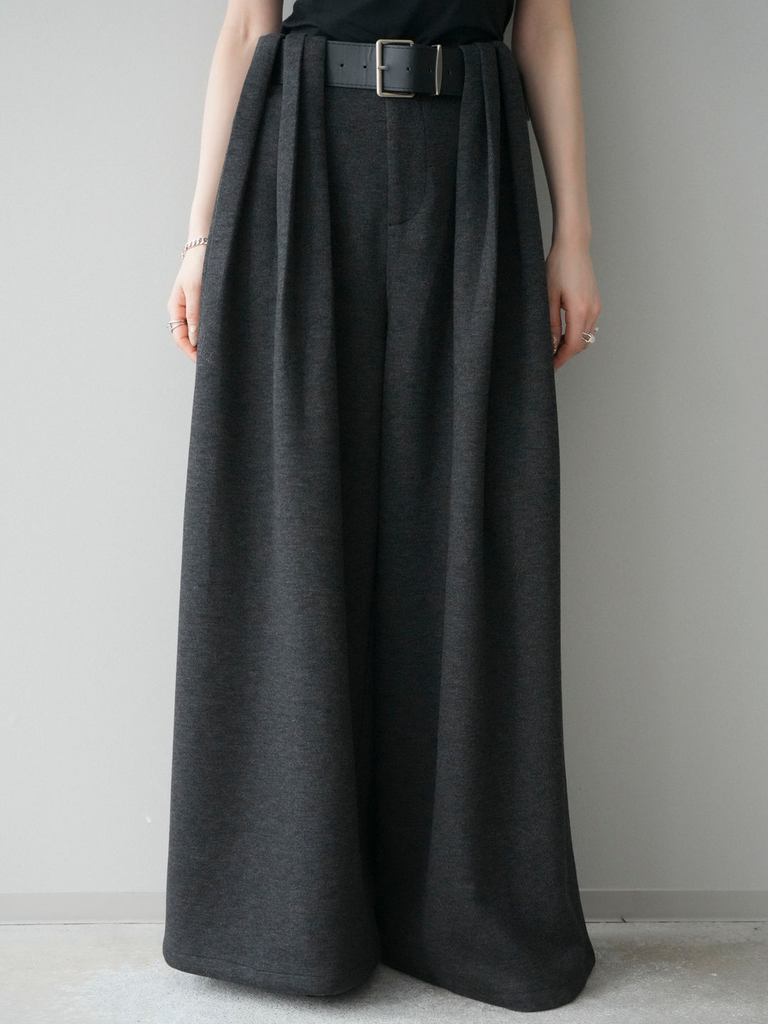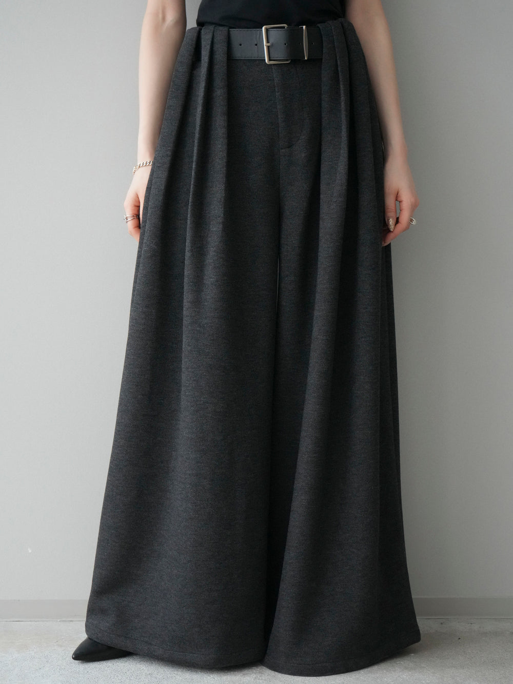 [予約]ベルト付きフロントタックワイドパンツ/charcoal