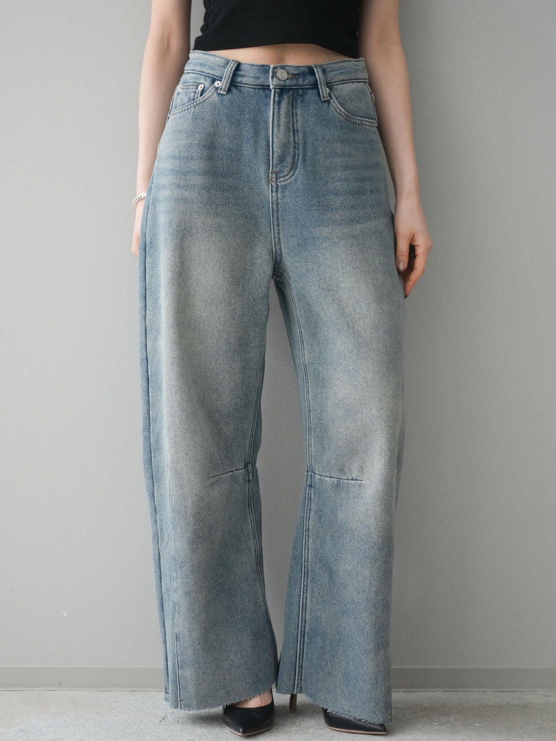 [予約]裏起毛カットオフカーブデニムパンツ/blue