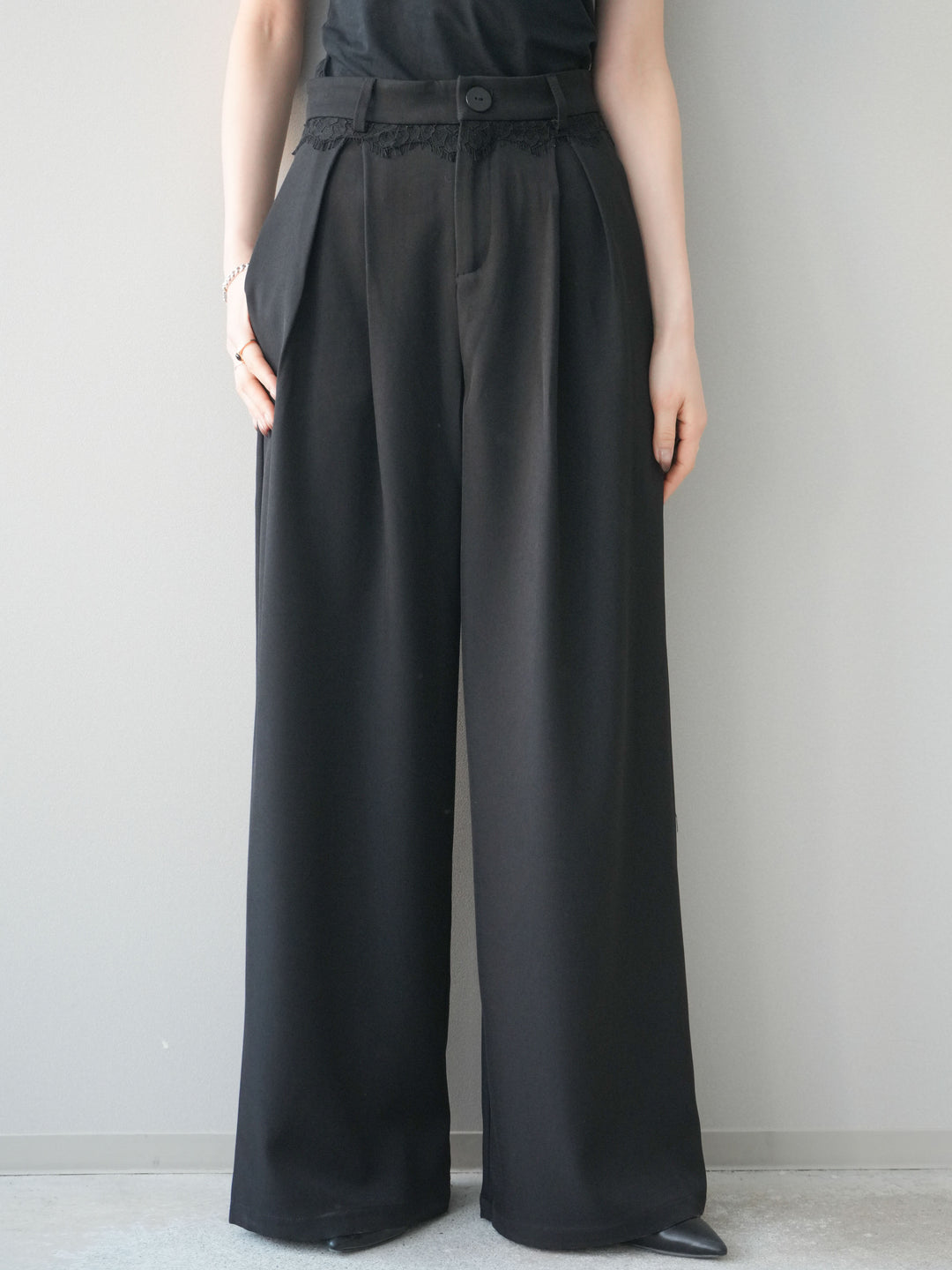 [予約]ベルト付きフロントタックワイドパンツ/black
