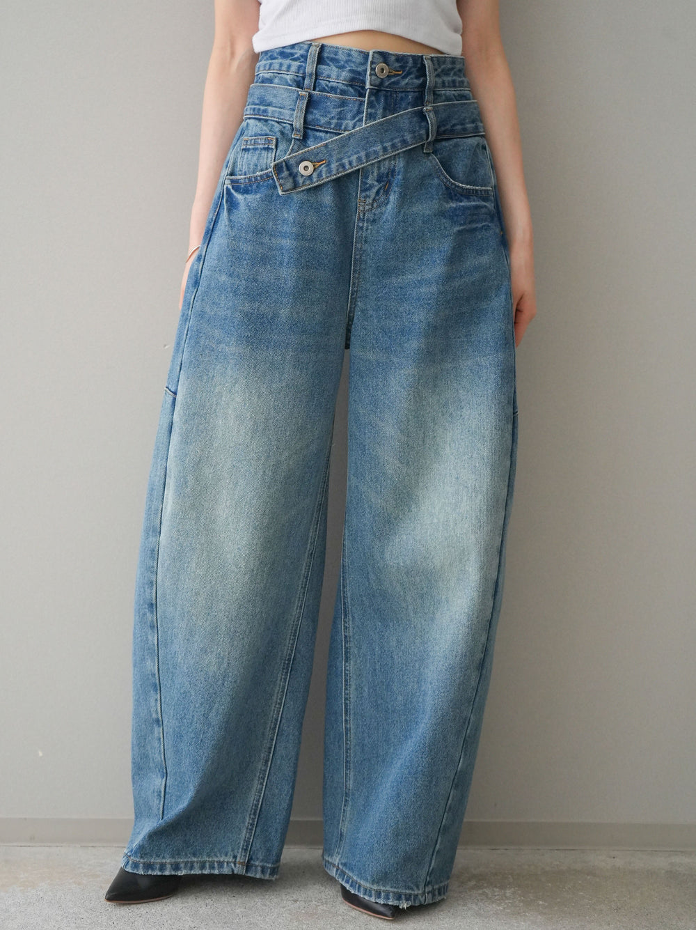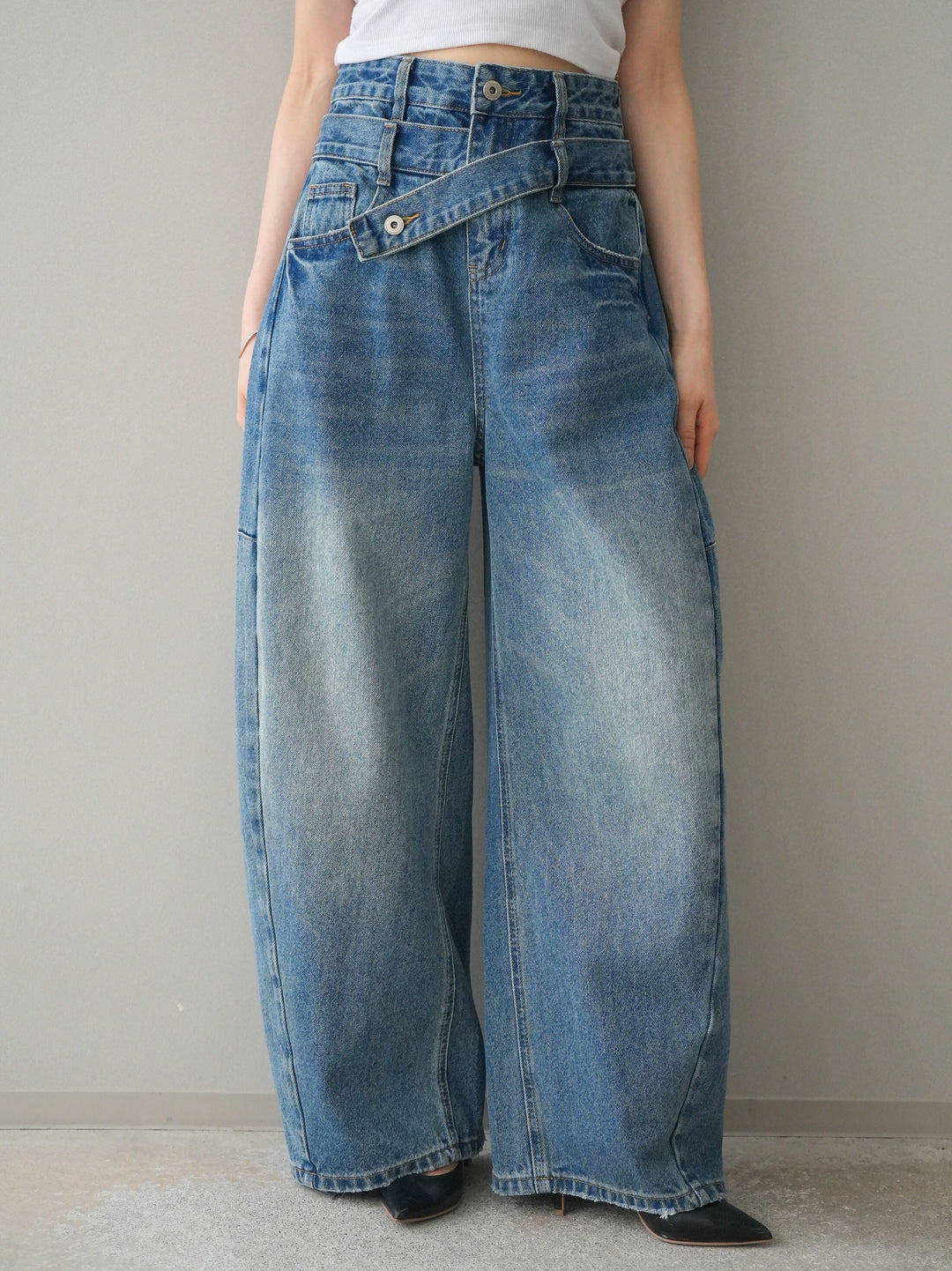 [予約]アシメデザインワイドデニムパンツ/blue