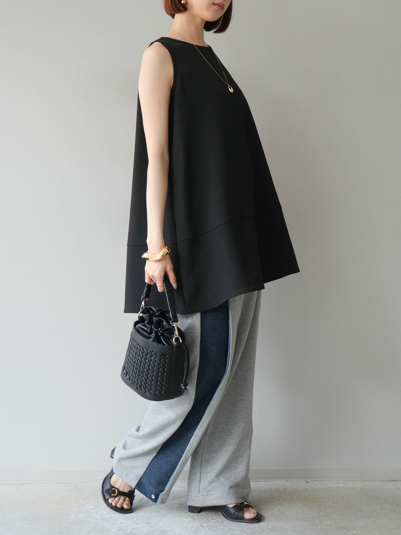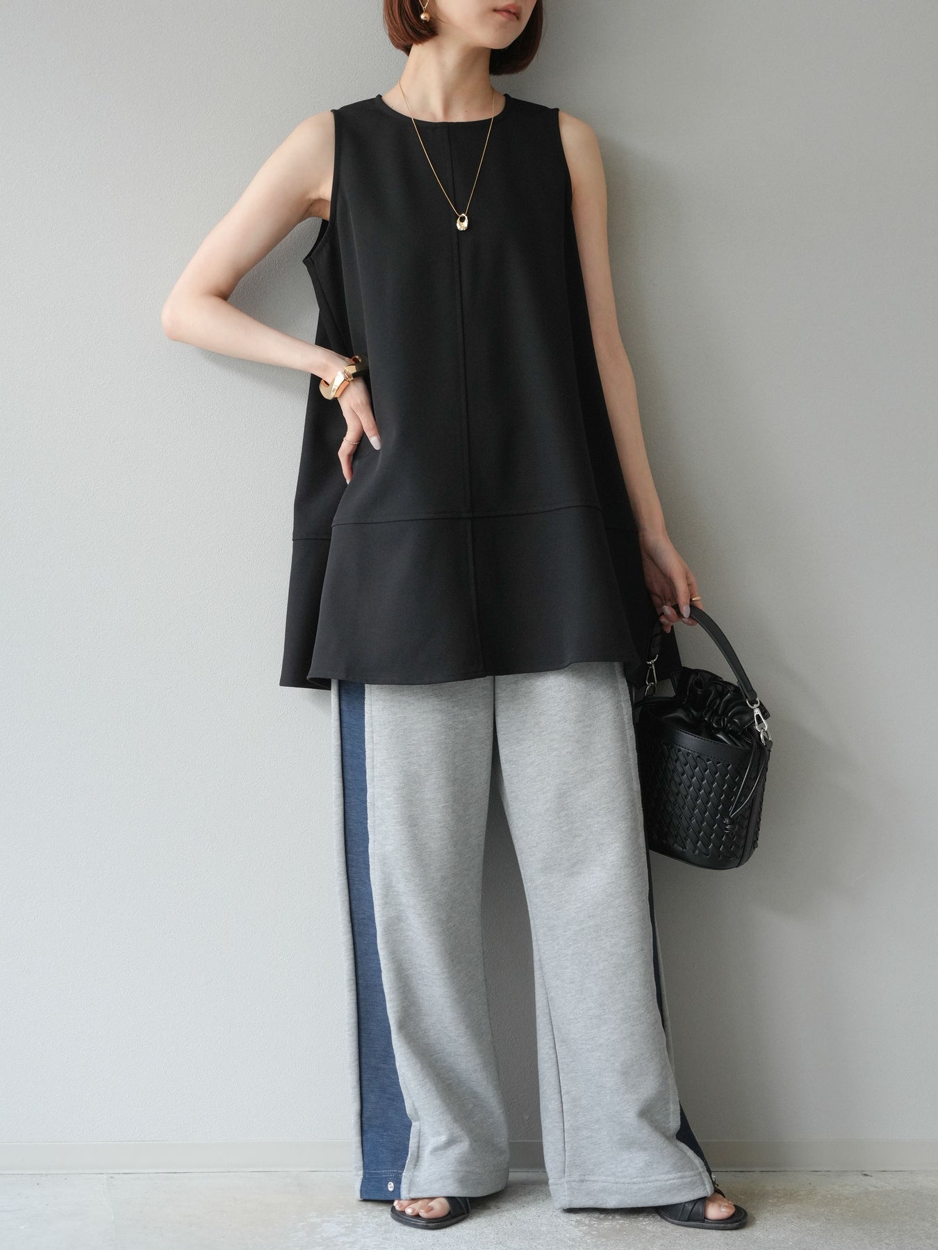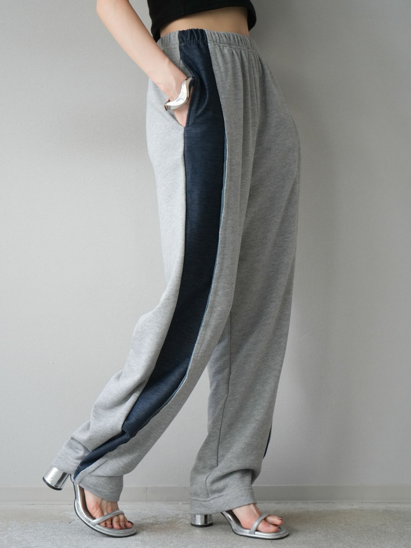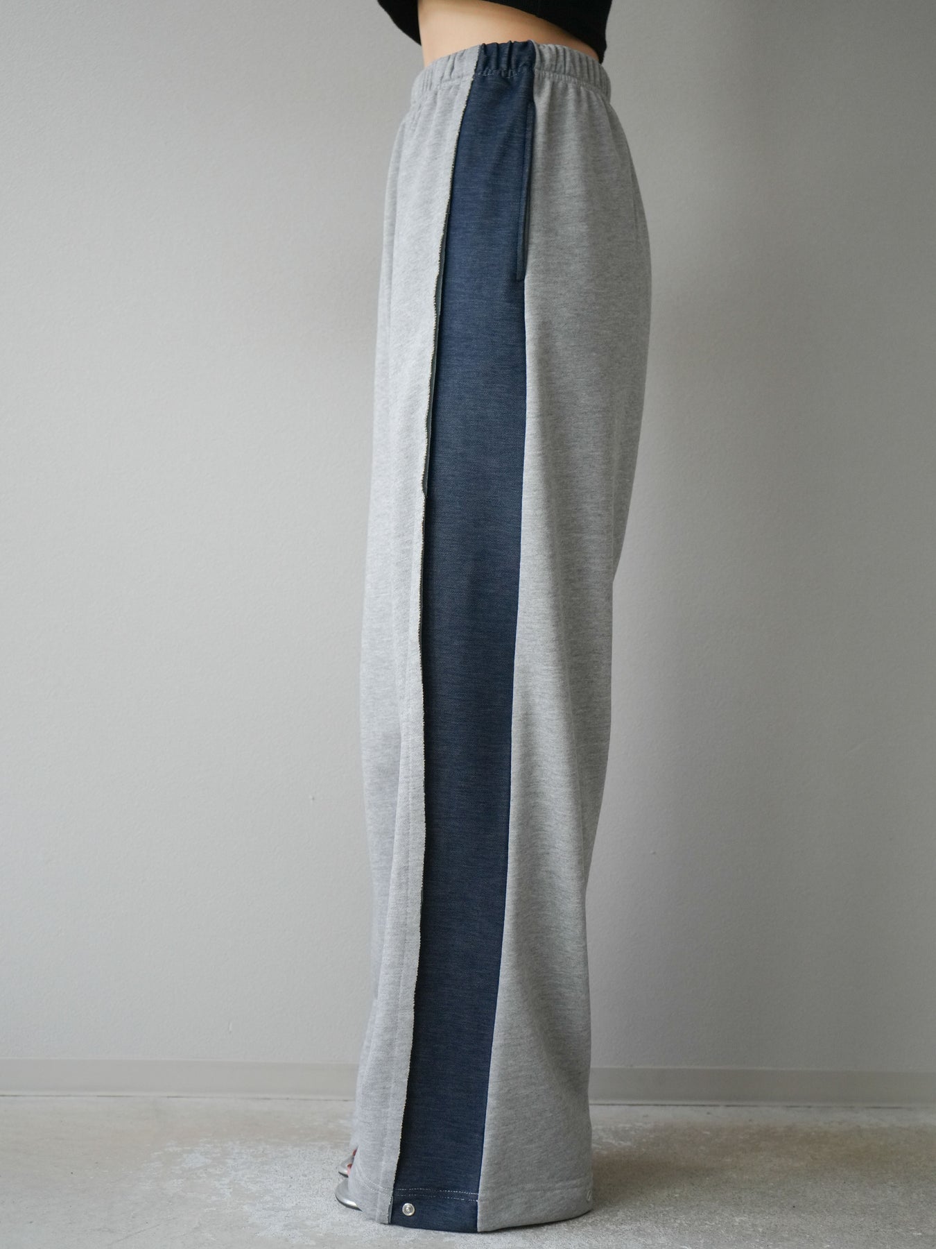 サイドにデニム生地を切り替えたデザインが特徴的なスウェットパンツ。程よい厚みと柔らかさのある素材感で、快適な穿き心地を叶えます。ウエストは総ゴム仕様でドローストリング付きのため、フィット感の調整が可能。シルエットはストレートラインで、カジュアルな中にもすっきりとした印象を与えます。デイリーユースはもちろん、ワンマイルウェアとしても活躍する1本です。